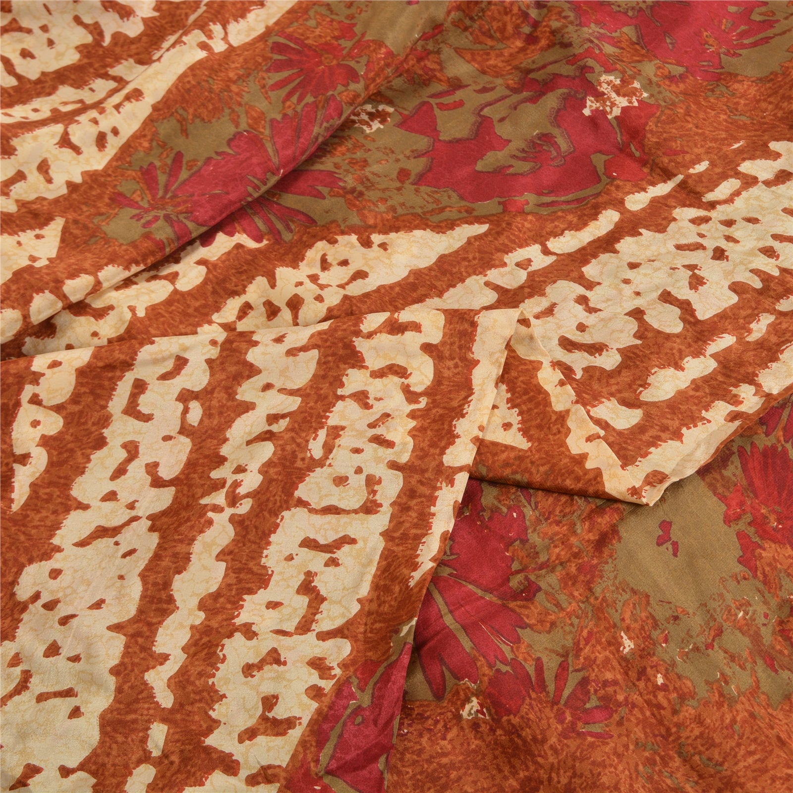 Sanskriti Vintage Sarees Indian Brown Pure Crepe Silk Printed Sari Craft Sustainable Fabric