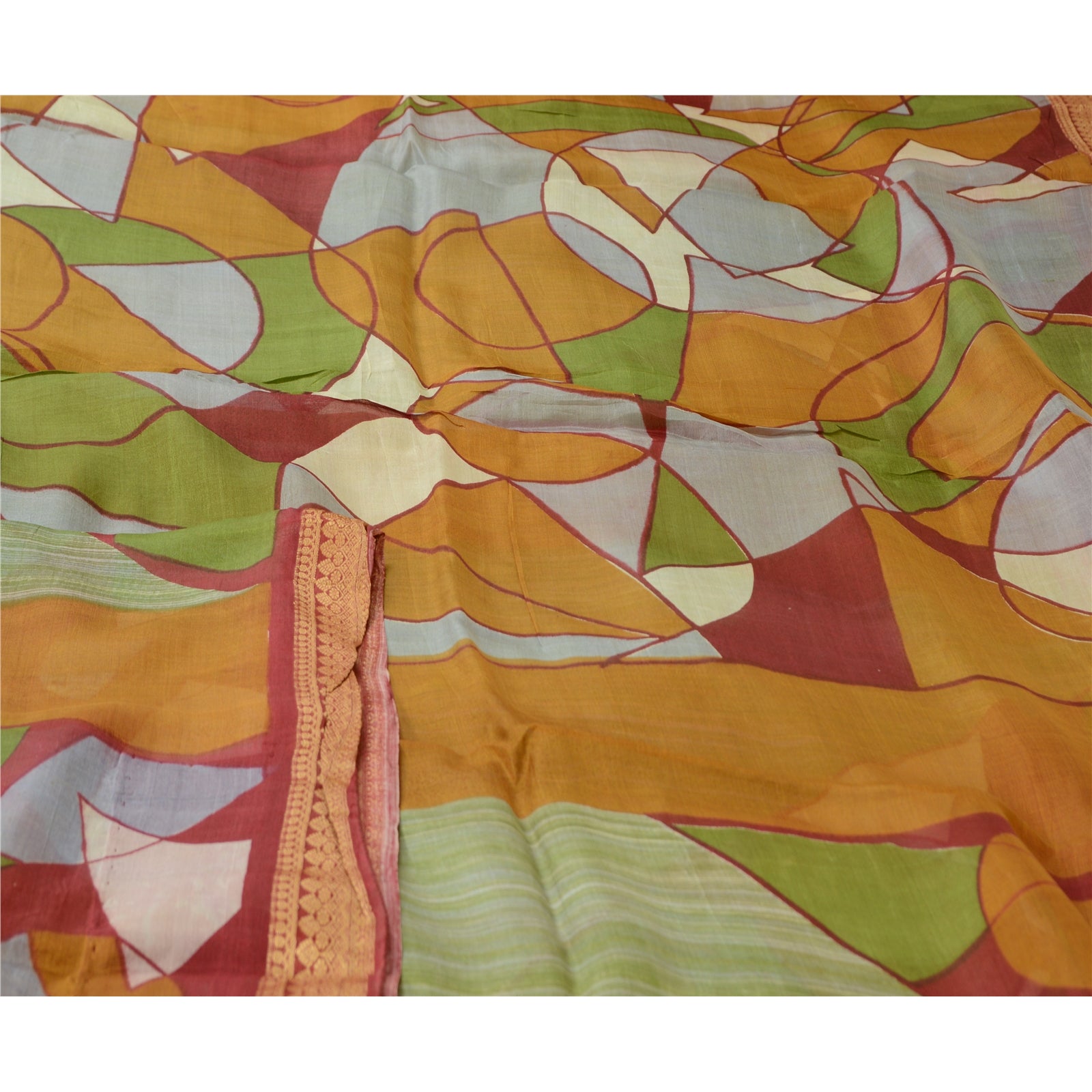Sanskriti Vintage Sarees Indian Green Pure Silk Printed Sari 5 YD Craft Sustainable Fabric