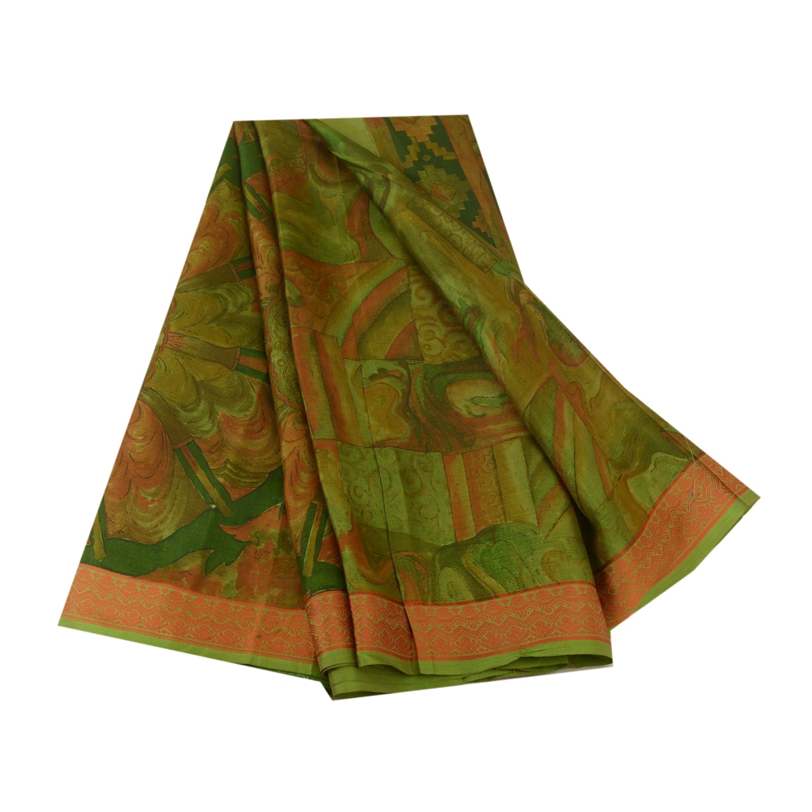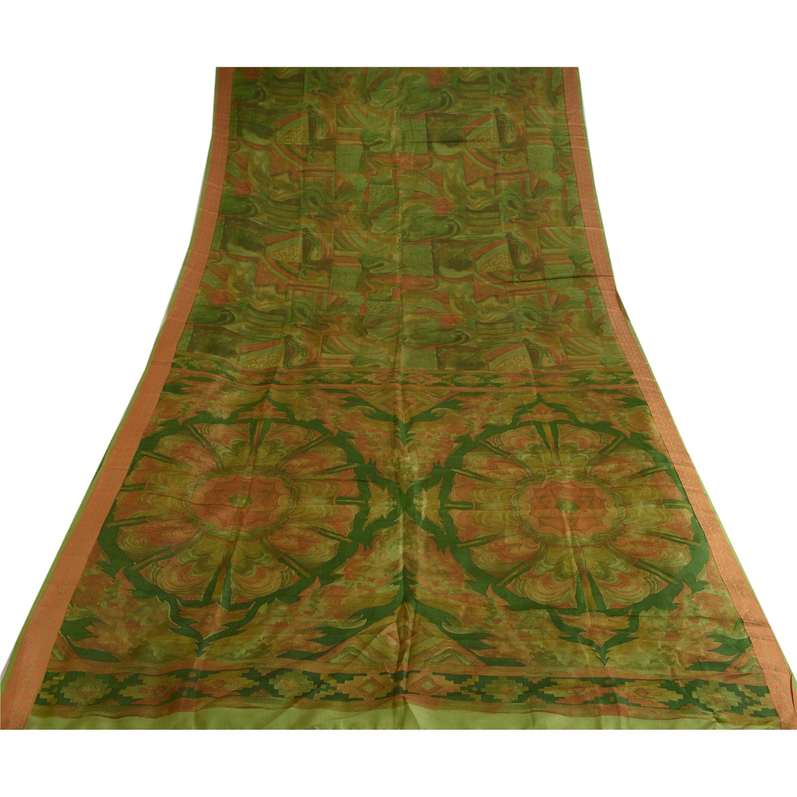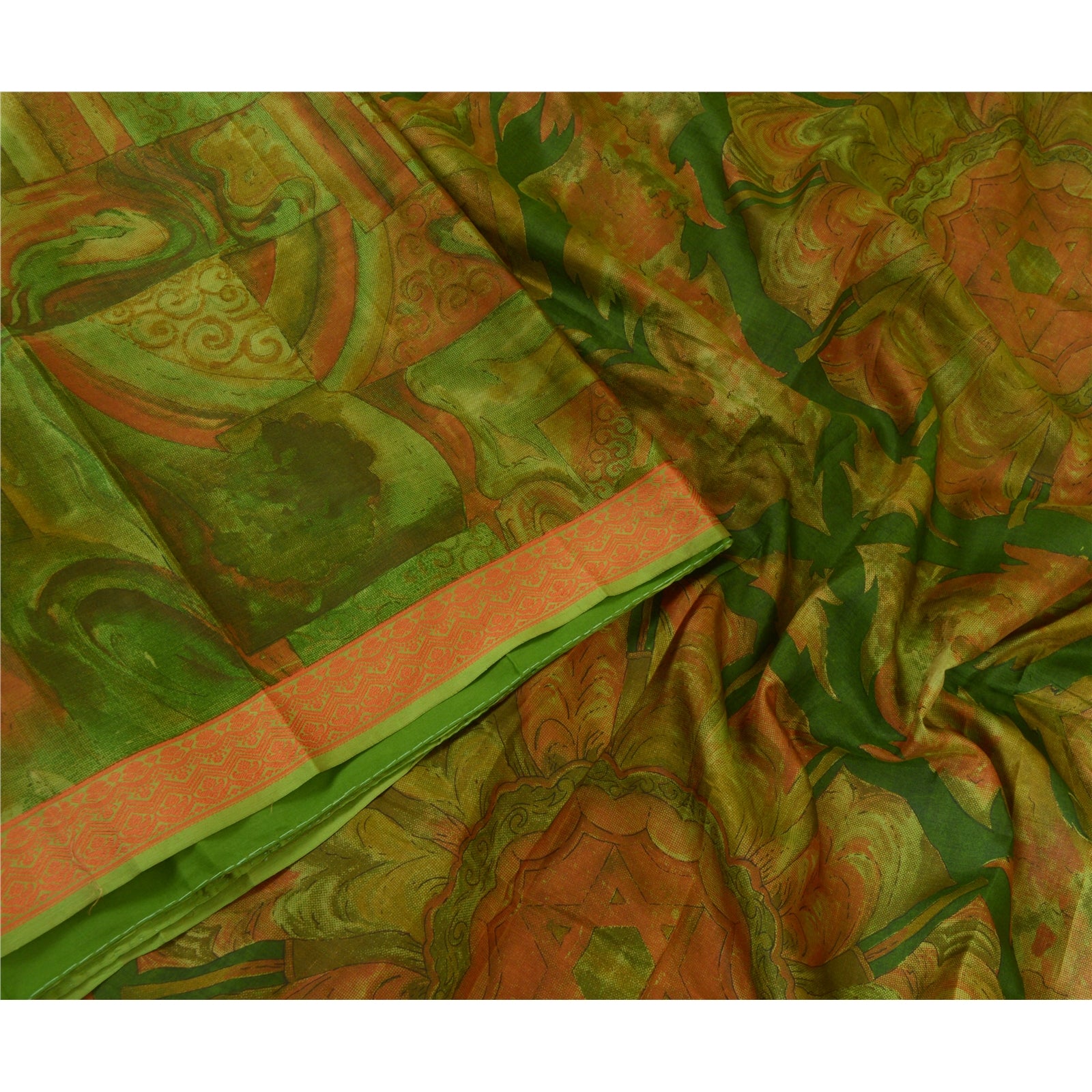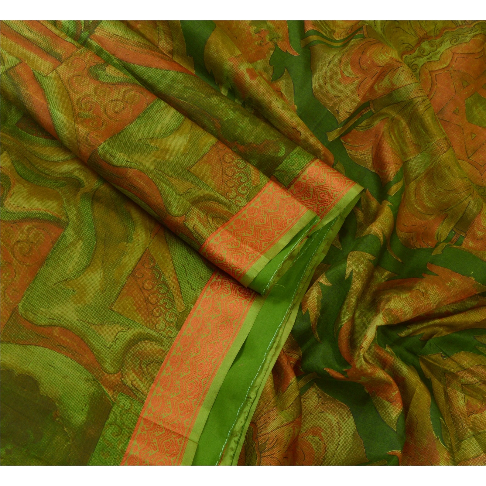 Sanskriti Vintage Sarees Indian Green Pure Silk Printed Sari Floral Craft Sustainable Fabric