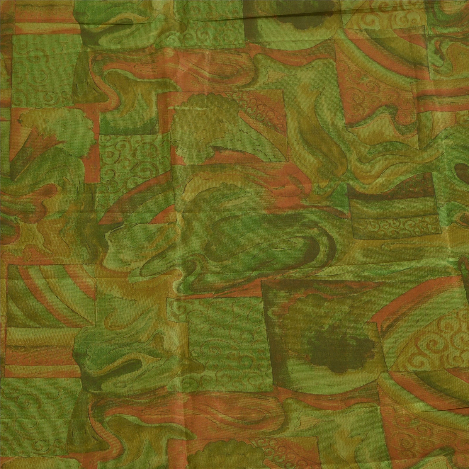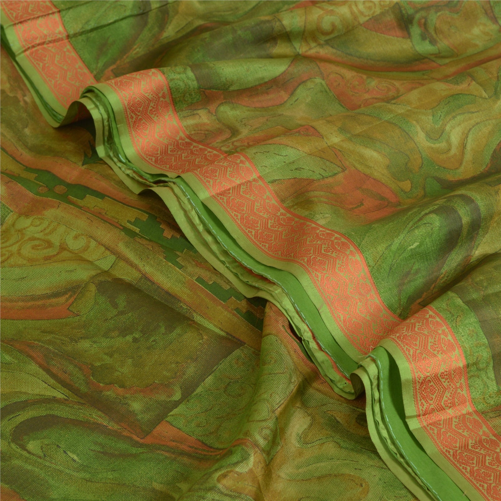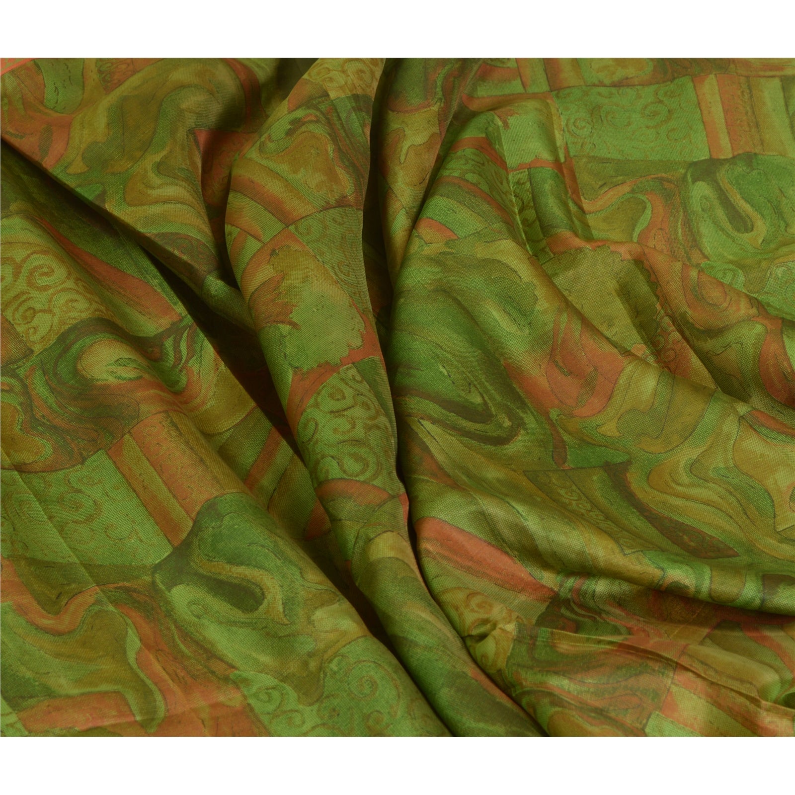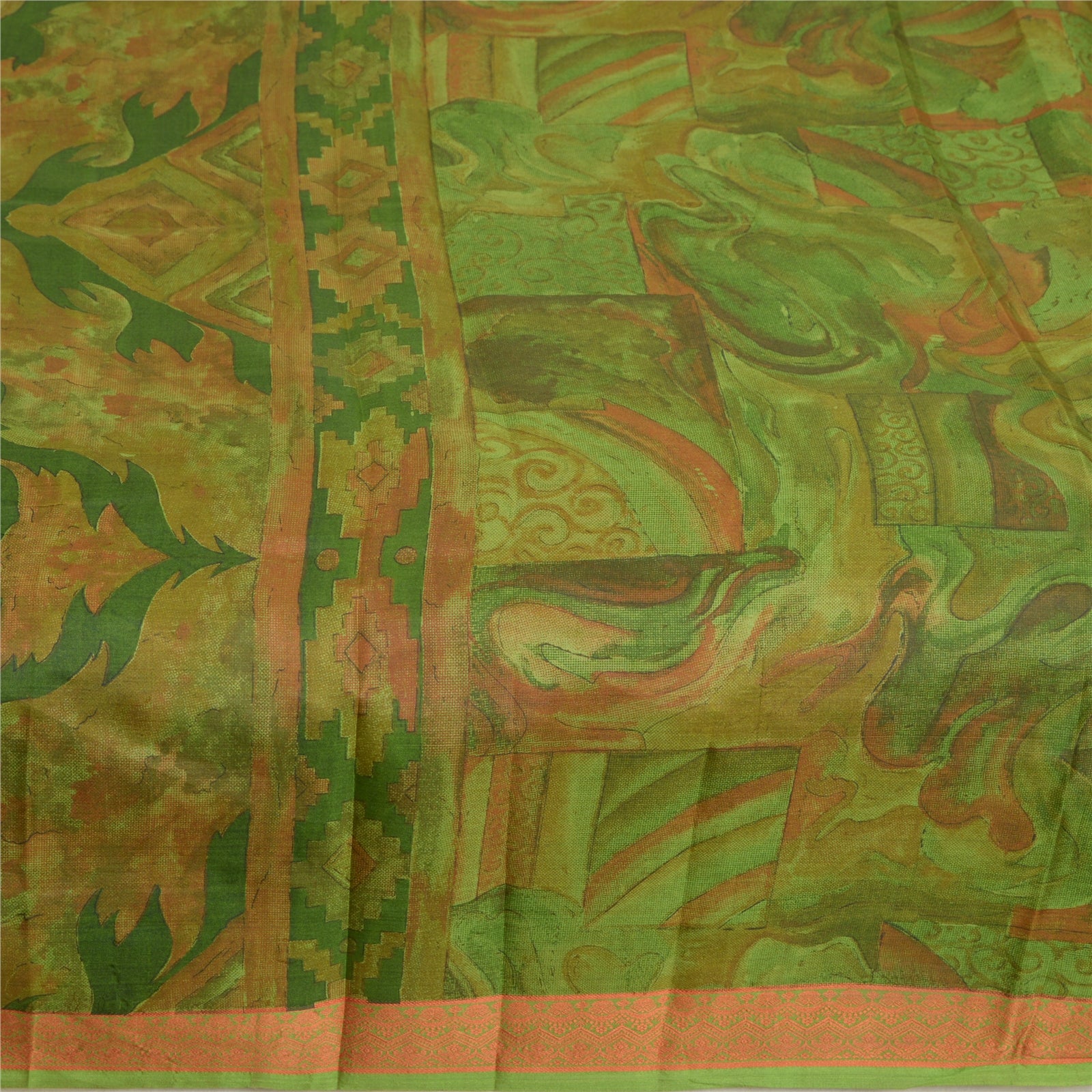 Sanskriti Vintage Sarees Indian Green Pure Silk Printed Sari Floral Craft Sustainable Fabric