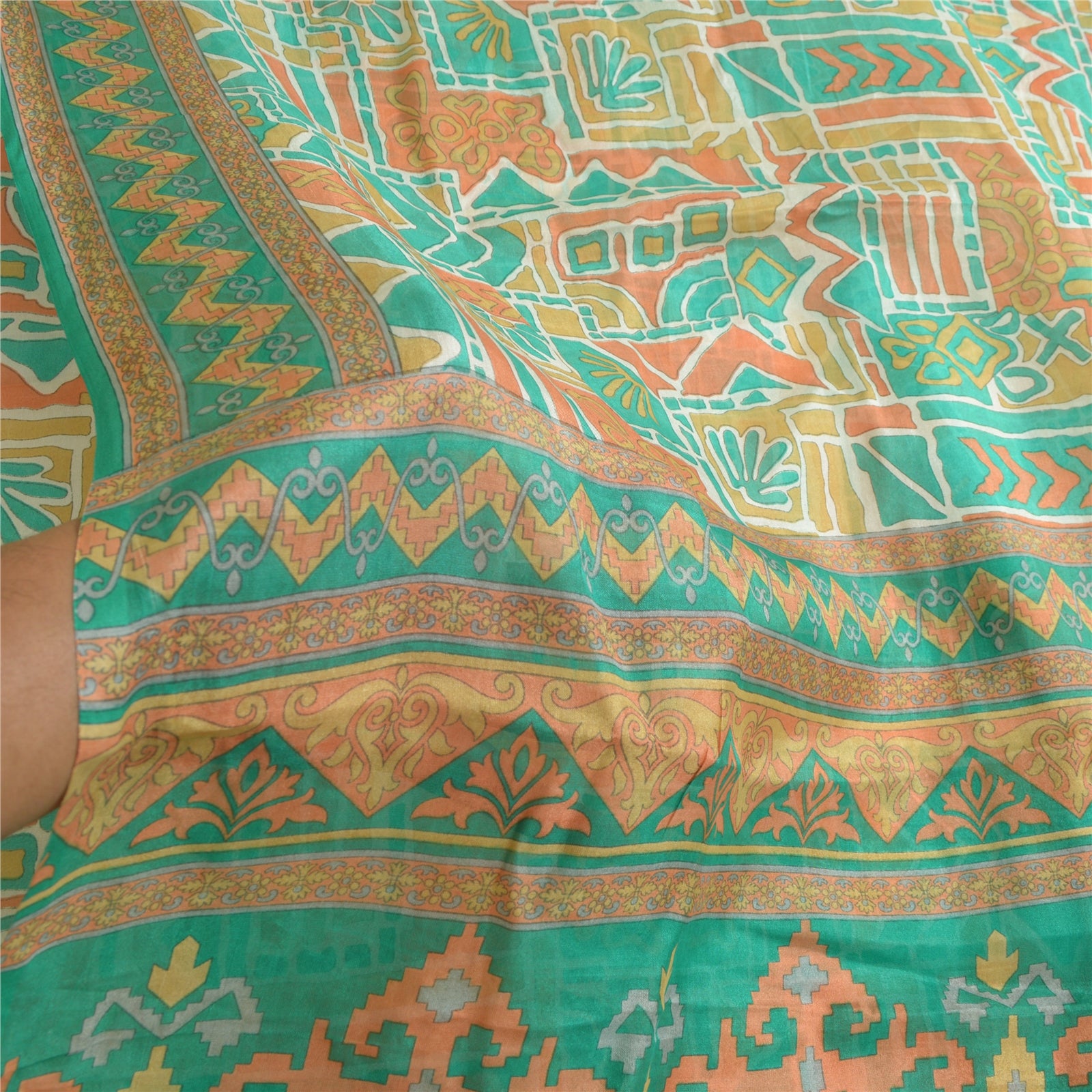 THE ITEM COLOR OR SHADE MAY BE DARKER OR LIGHTER THAN THE PICTURE.' Beautiful multi colored pure silk printed saree. Pallu & Border has printed floral design. Geometric design in center part of saree. What is special about this saree? Fabulous design is really enhancing the beauty of the saree.This unique vintage saree can be used for various crafting ideas even if you don't want to use it as a sari. Design a dress, use it as window, dressing, upholstery, sarongs, throw, dress making and table linen much more. Let your creative juices flow and use this decorated Sustainable Fabric in multiple fashion. International buyers please note: Import duties, taxes, and charges are not included in the item price or postage cost. These charges are the buyer's responsibility. Please check with your country's customs office to determine what these additional costs will be prior to bidding or buying. Buyer will pay custom duty/tax. It is calculated and charged differently by every country. As a seller I do not have any control over it. VAT or sales tax is calculated by the platform at the time of checkout. Customs charge is payable at the time of delivery.'