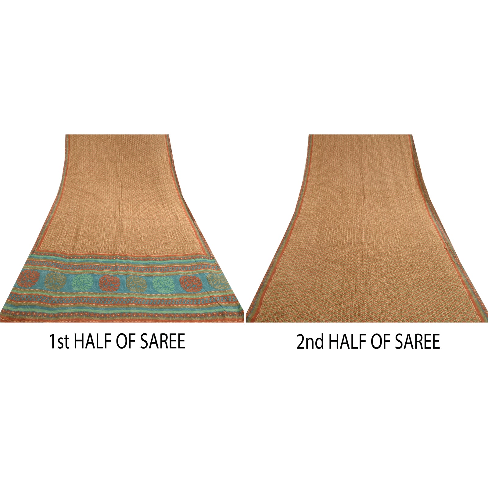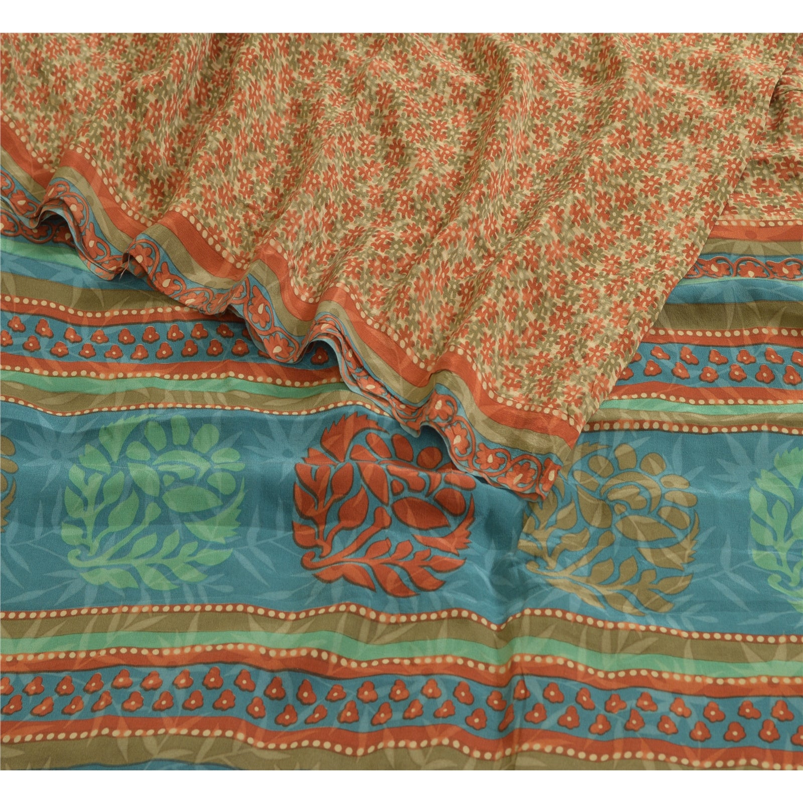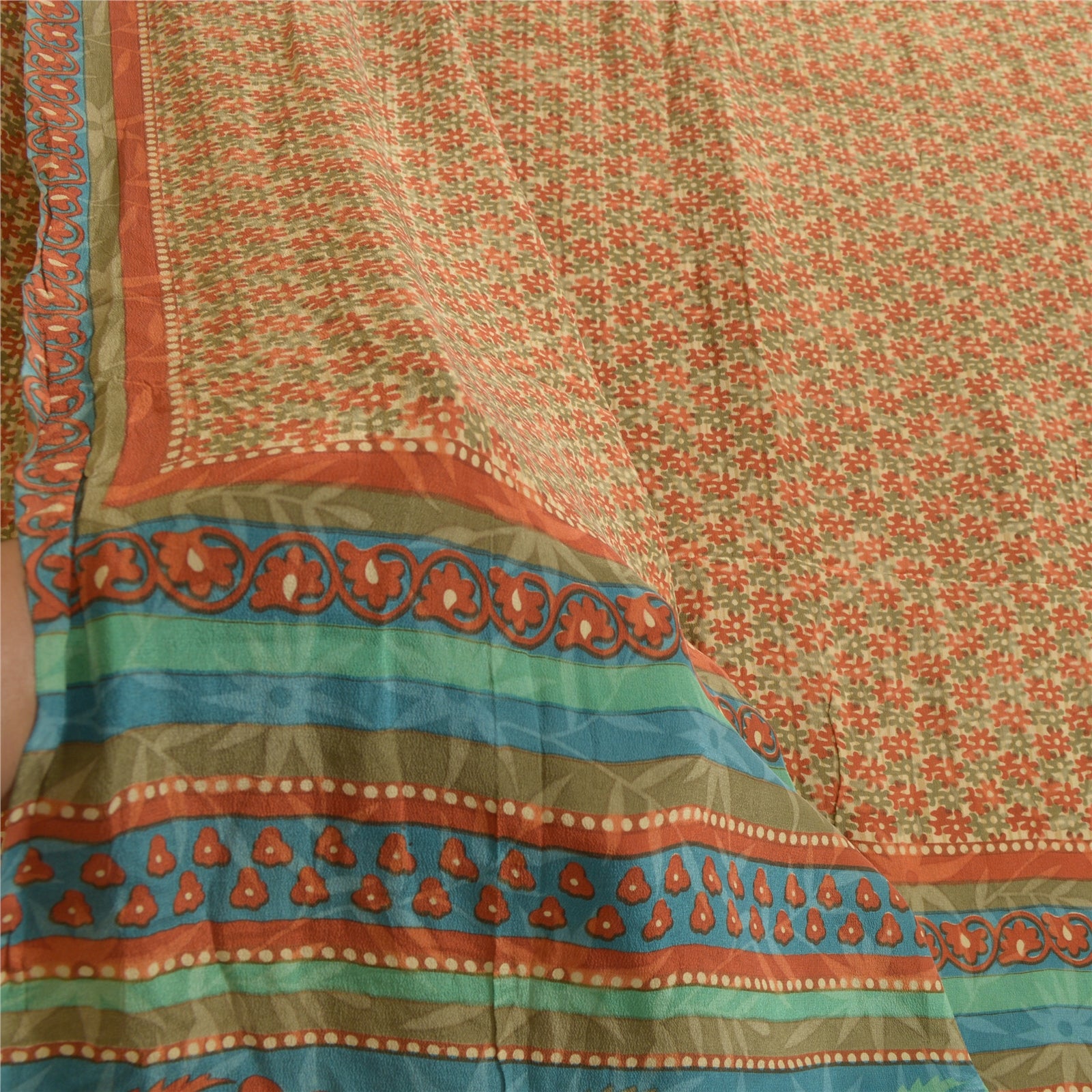 Sanskriti Vintage Sarees Indian Multi Pure Crepe Silk Printed Sari Craft Sustainable Fabric