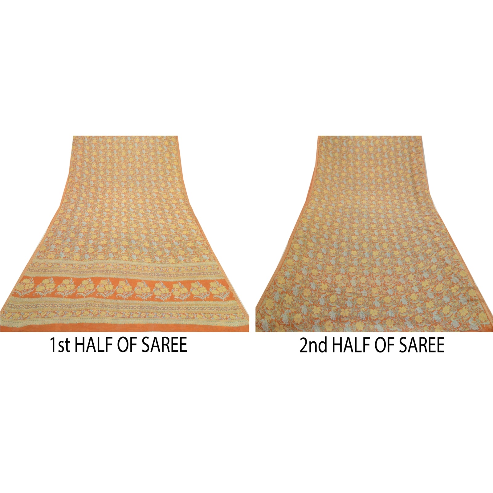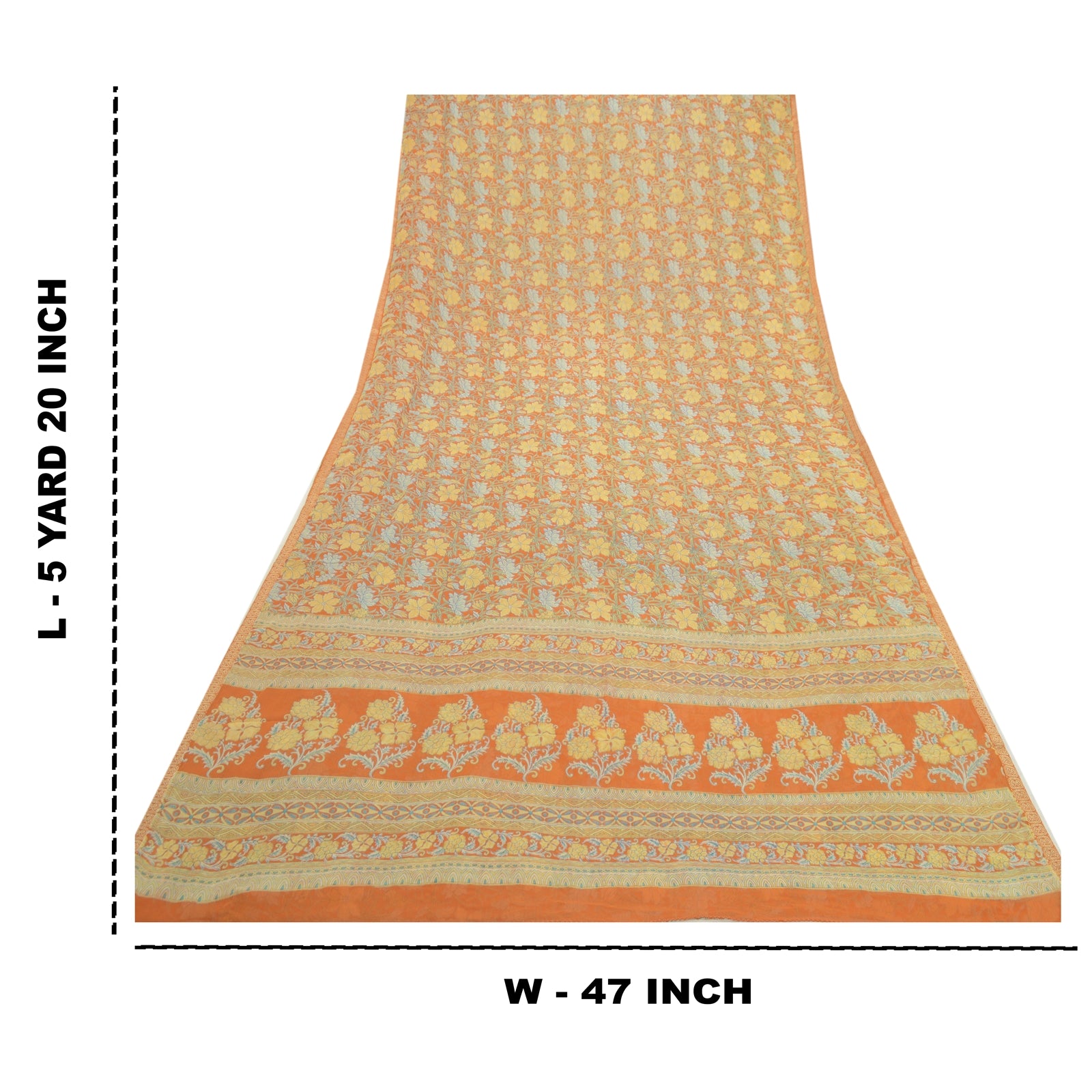 THE ITEM COLOR OR SHADE MAY BE DARKER OR LIGHTER THAN THE PICTURE.' Beautiful orange colored poly georgette printed saree. Pallu & Border has printed floral design. Printed floral design in center part of saree. What is special about this saree? Brilliant design on soft Sustainable Fabric is really enhancing the beauty of the saree. This unique vintage saree can be used for various crafting ideas even if you don't want to use it as a sari. Design a dress, use it as a as window dressing, upholstery, sarongs, throw, dress making and table linen much more. Let your creative juices flow and use this decorated Sustainable Fabric in multiple fashion. International buyers please note: Import duties, taxes, and charges are not included in the item price or postage cost. These charges are the buyer's responsibility. Please check with your country's customs office to determine what these additional costs will be prior to bidding or buying.Buyer will pay custom duty/tax. It is calculated and charged differently by every country. As a seller I do not have any control over it. VAT or sales tax is calculated by the platform at the time of checkout. Customs charge is payable at the time of delivery.