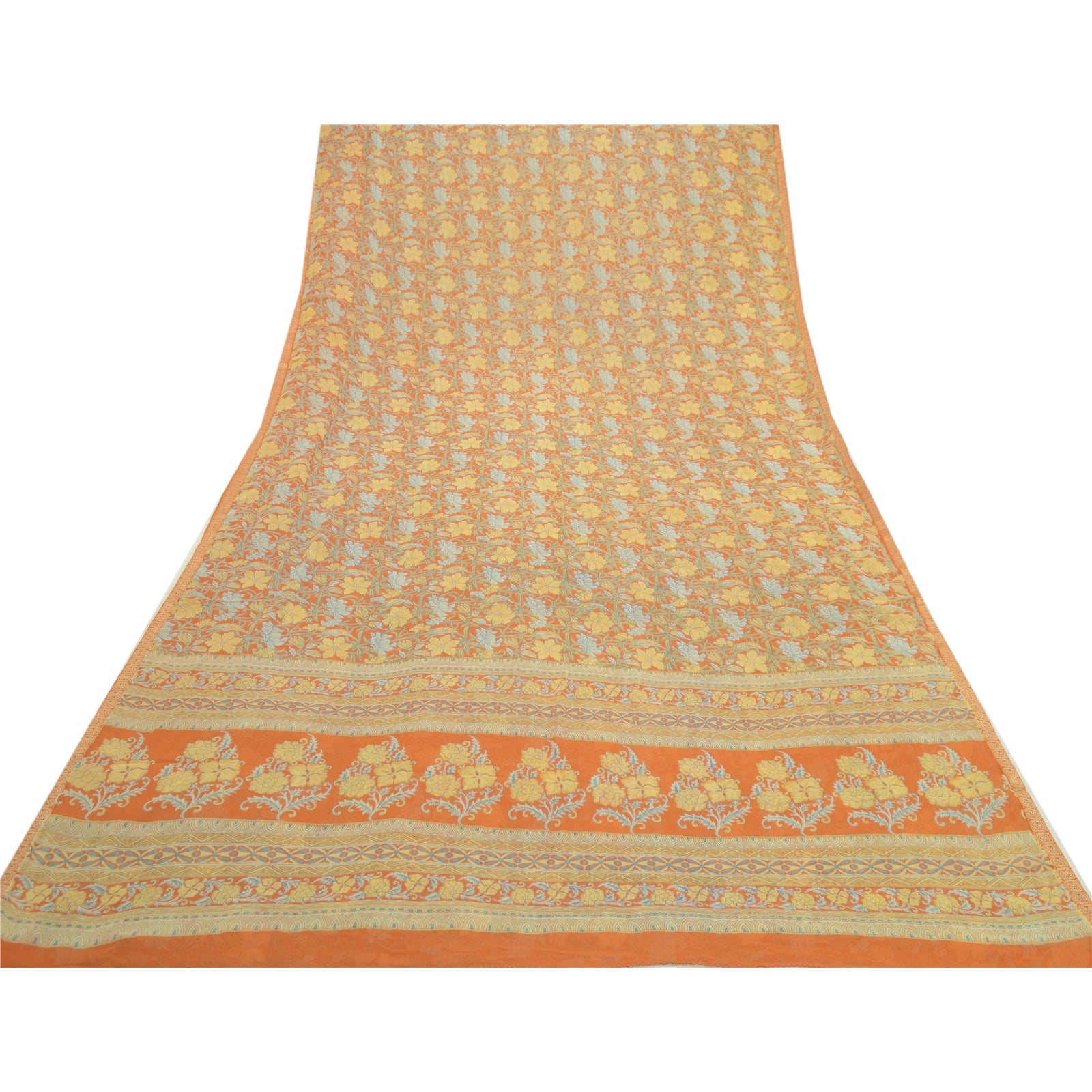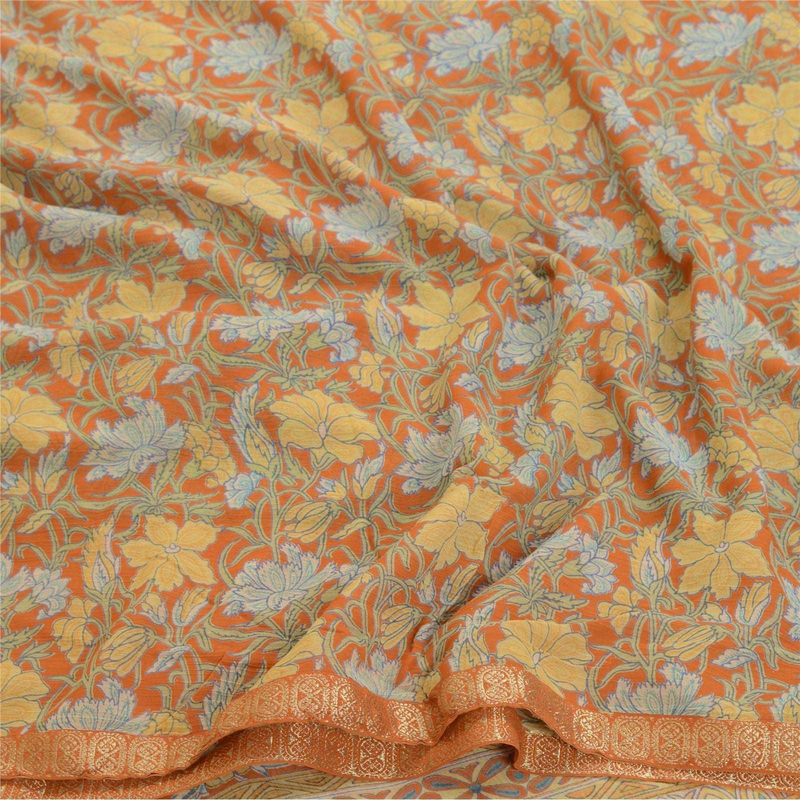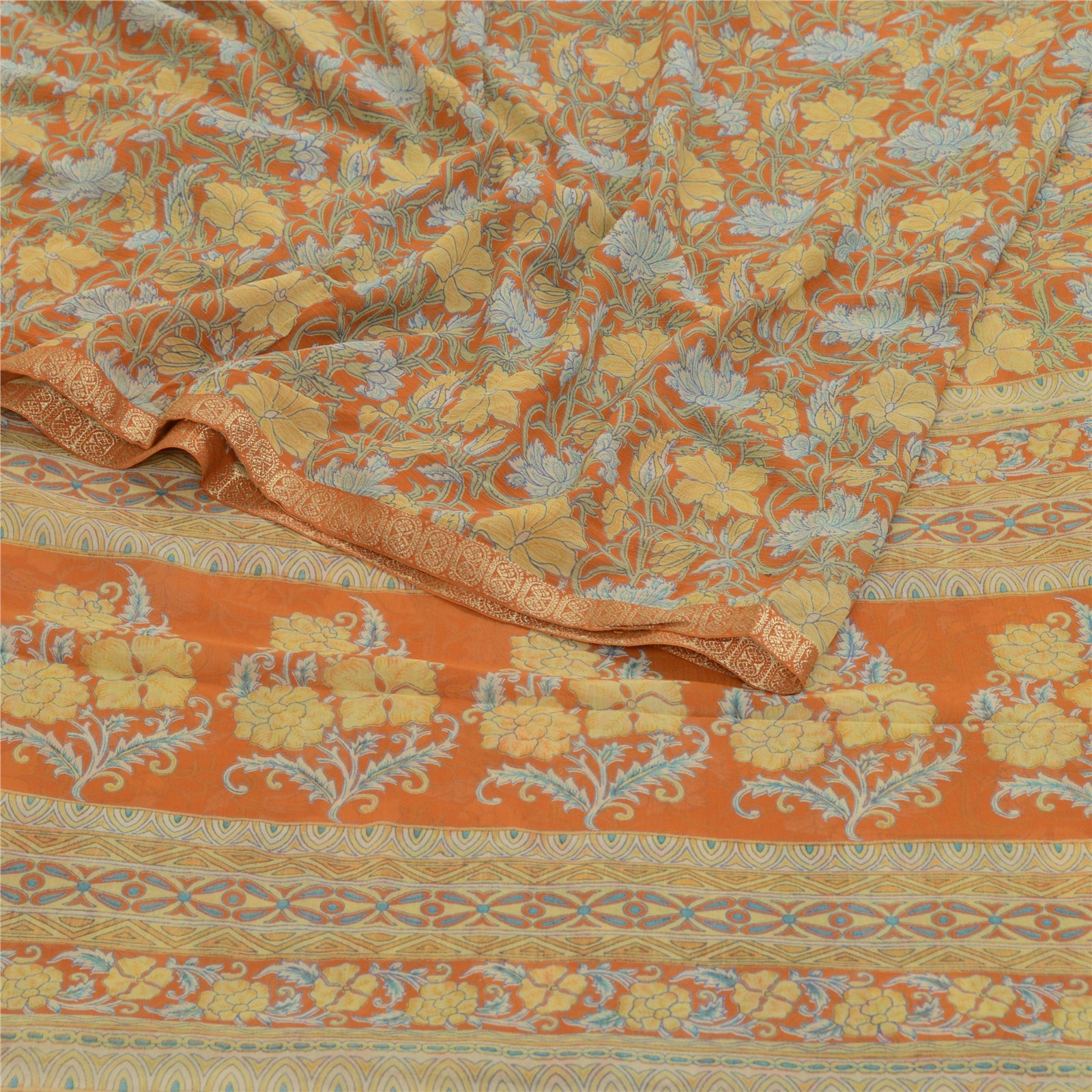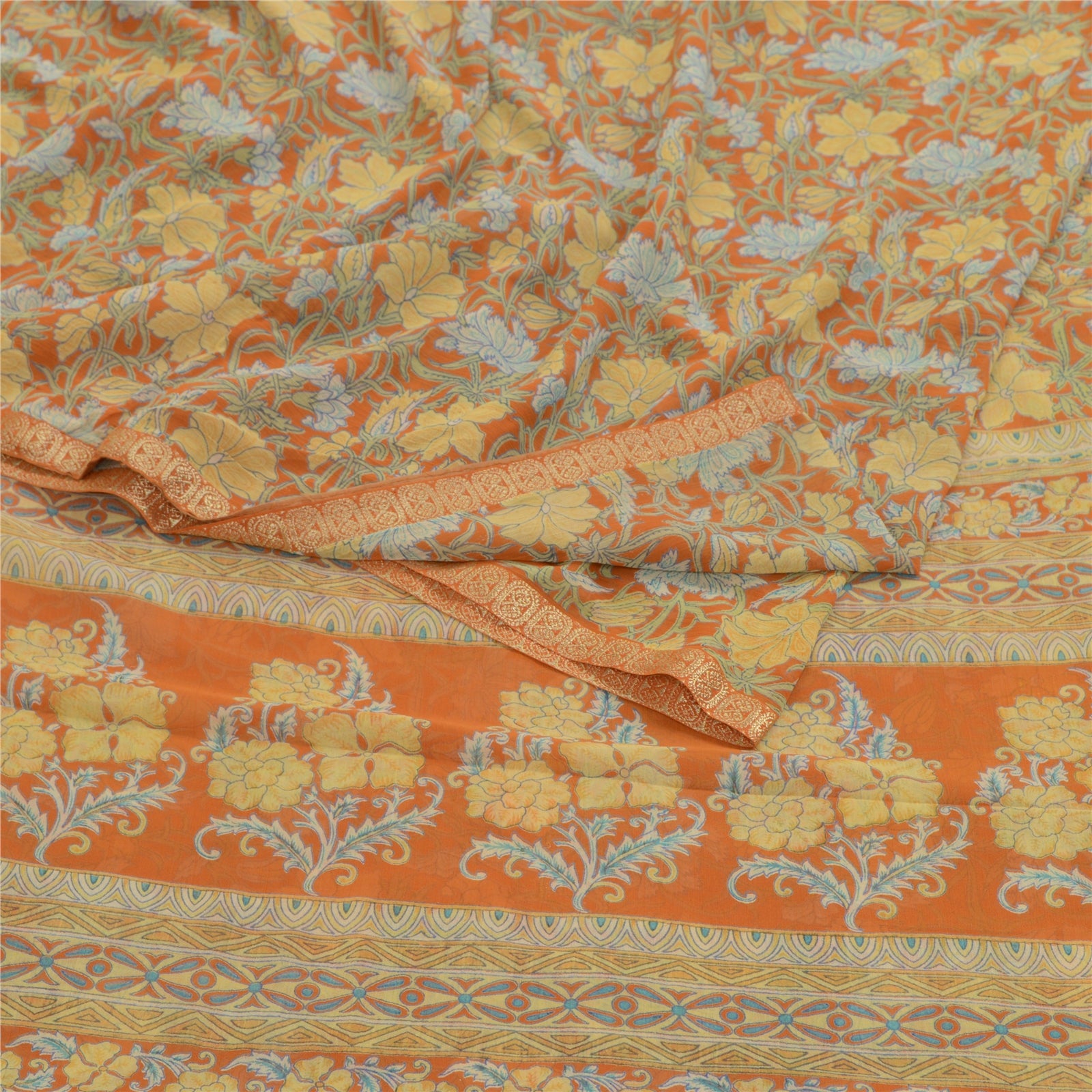 Sanskriti Vintage Sarees Indian Orange Georgette Printed Sari Soft Craft Sustainable Fabric
