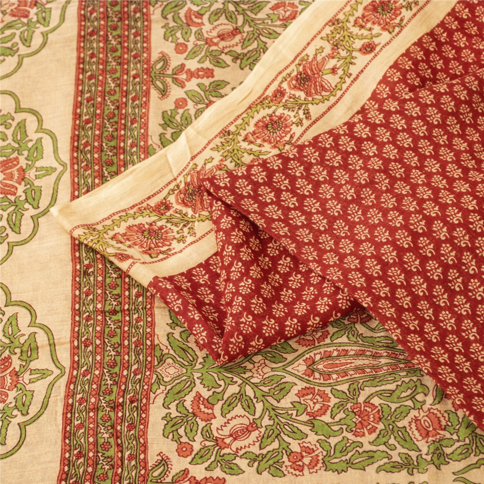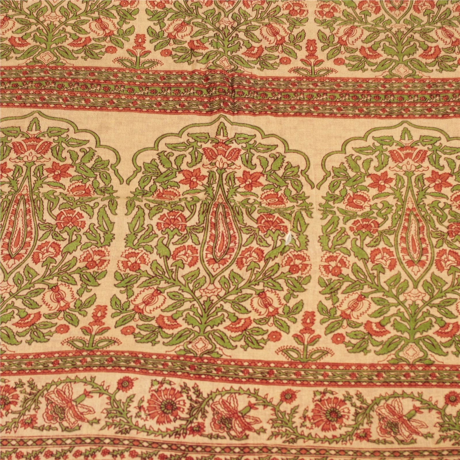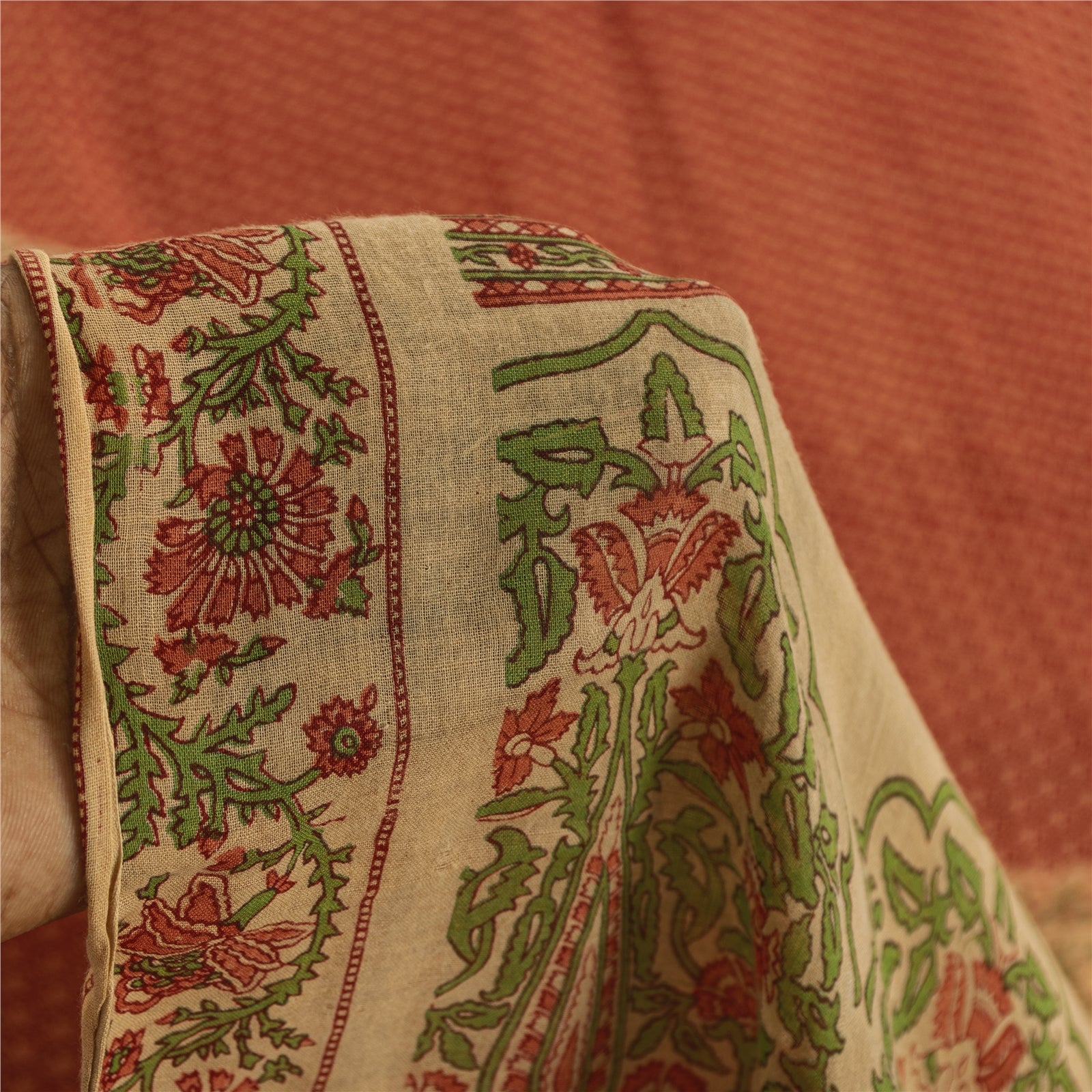 Sanskriti Vintage Sarees Indian Red Pure Cotton Printed Sari 5+yd Craft Fabric