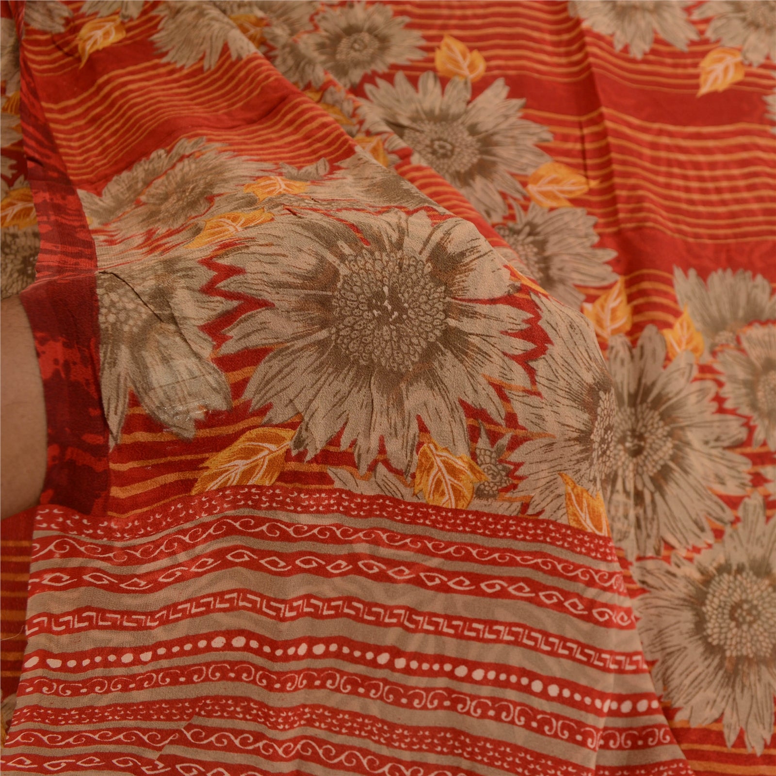 Sanskriti Vintage Sarees Indian Red Pure Georgette Silk Print Sari Craft Sustainable Fabric