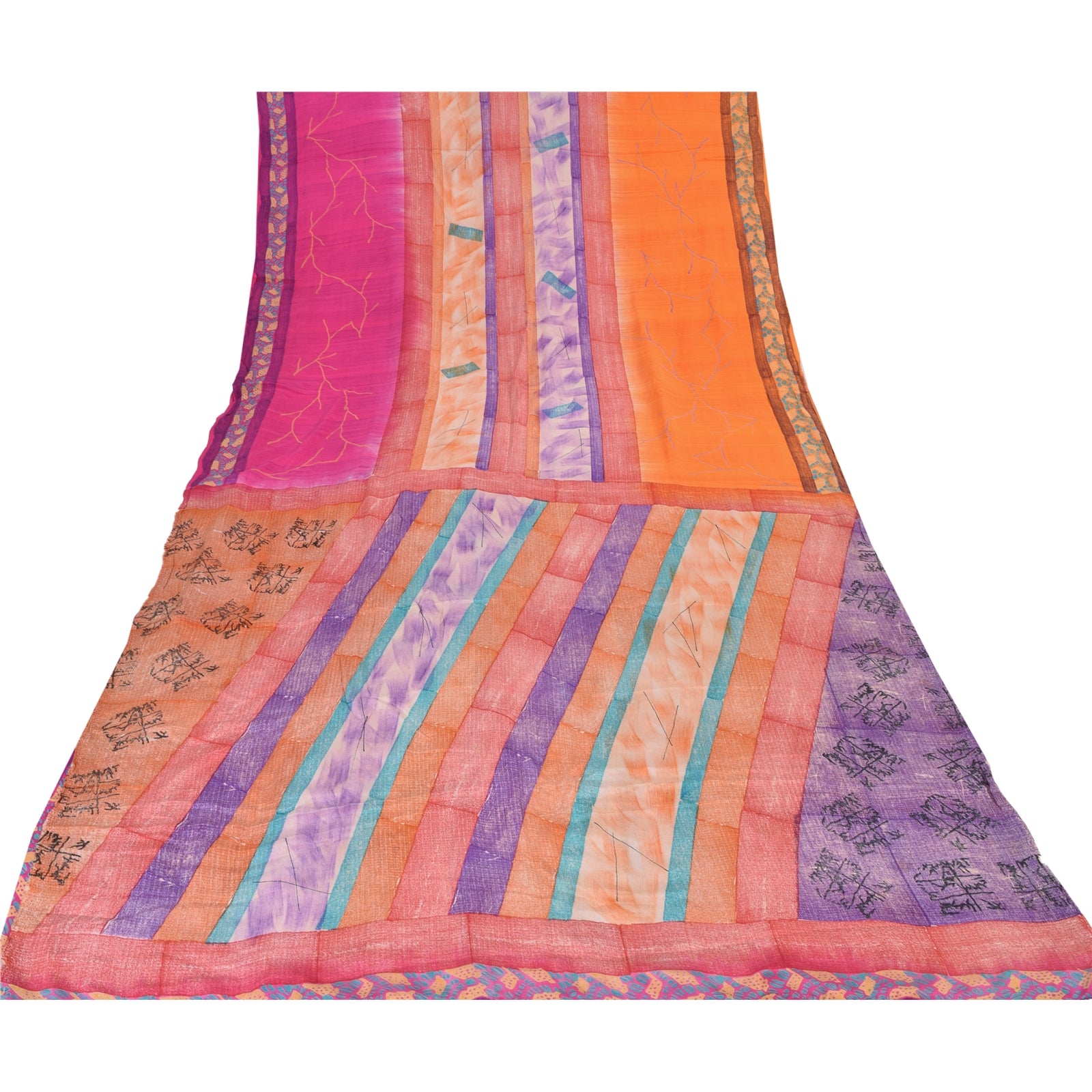 Sanskriti Vintage Sarees Multi 100%Pure Crepe Silk Printed Sari 5yd Craft Sustainable Fabric