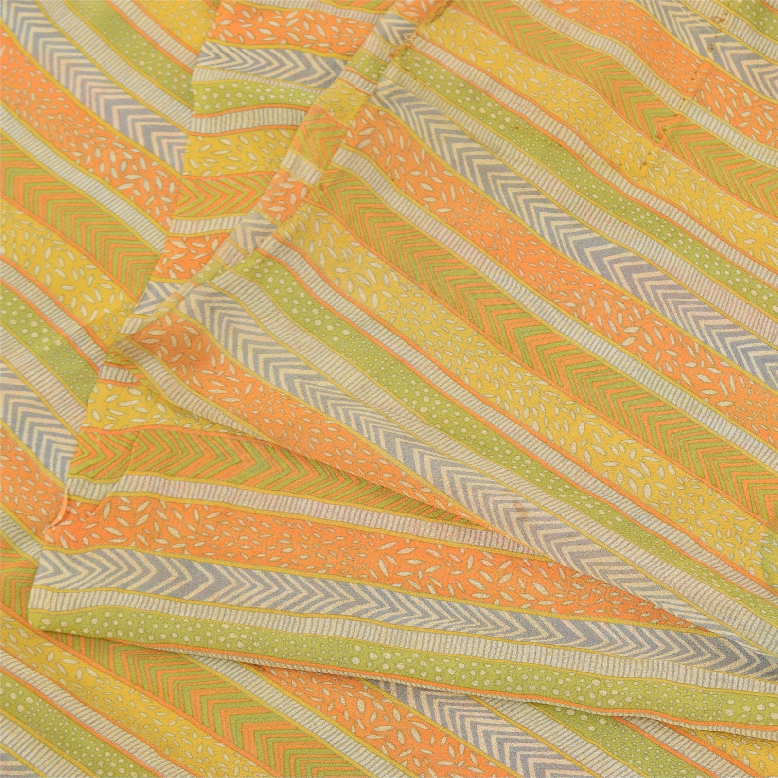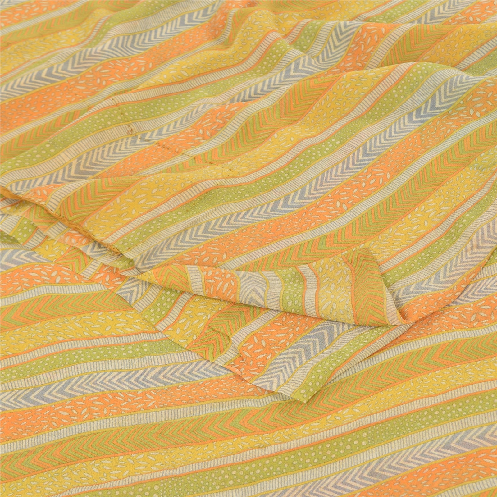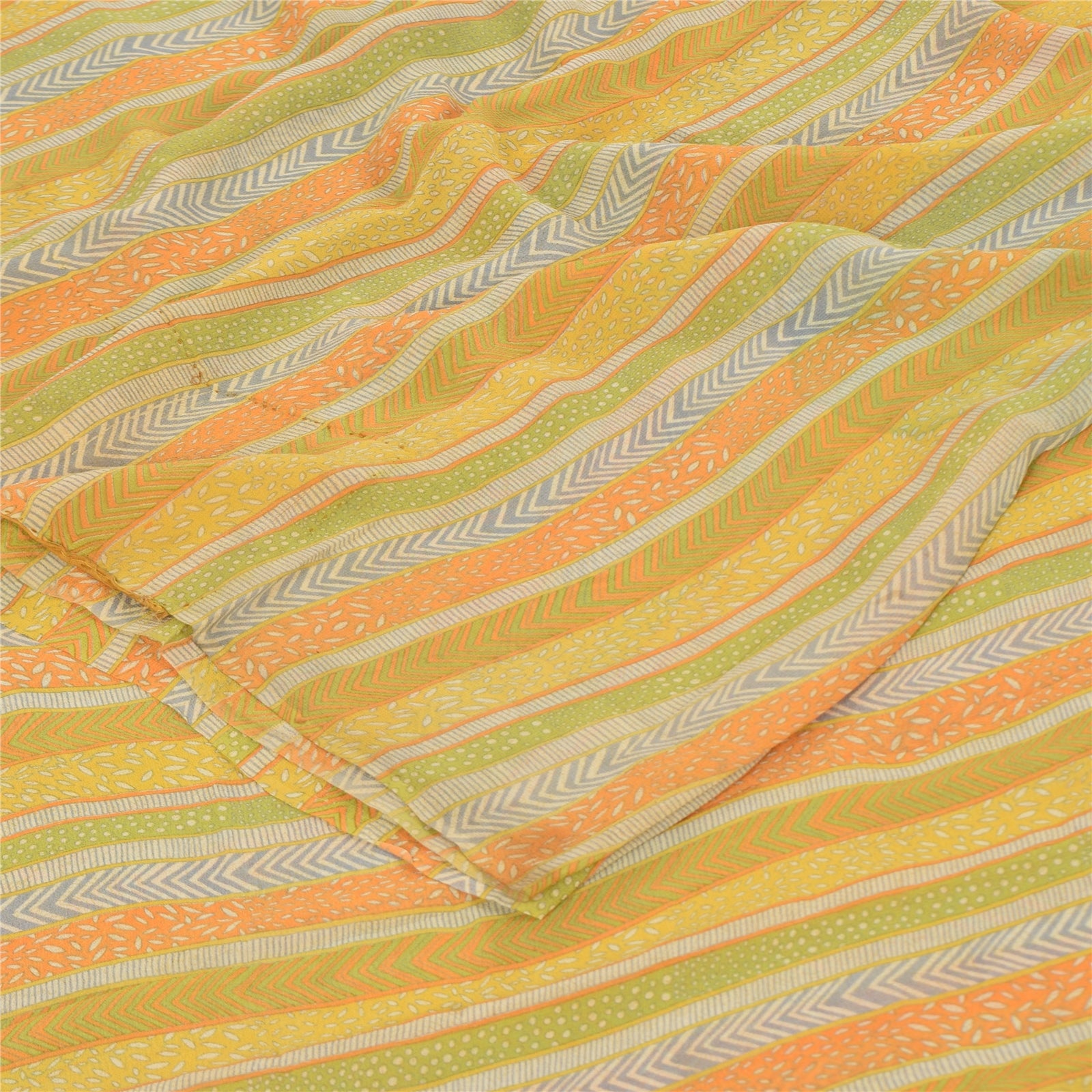 Sanskriti Vintage Sarees Multi Pure Georgette Silk Printed Sari 5yd Craft Sustainable Fabric