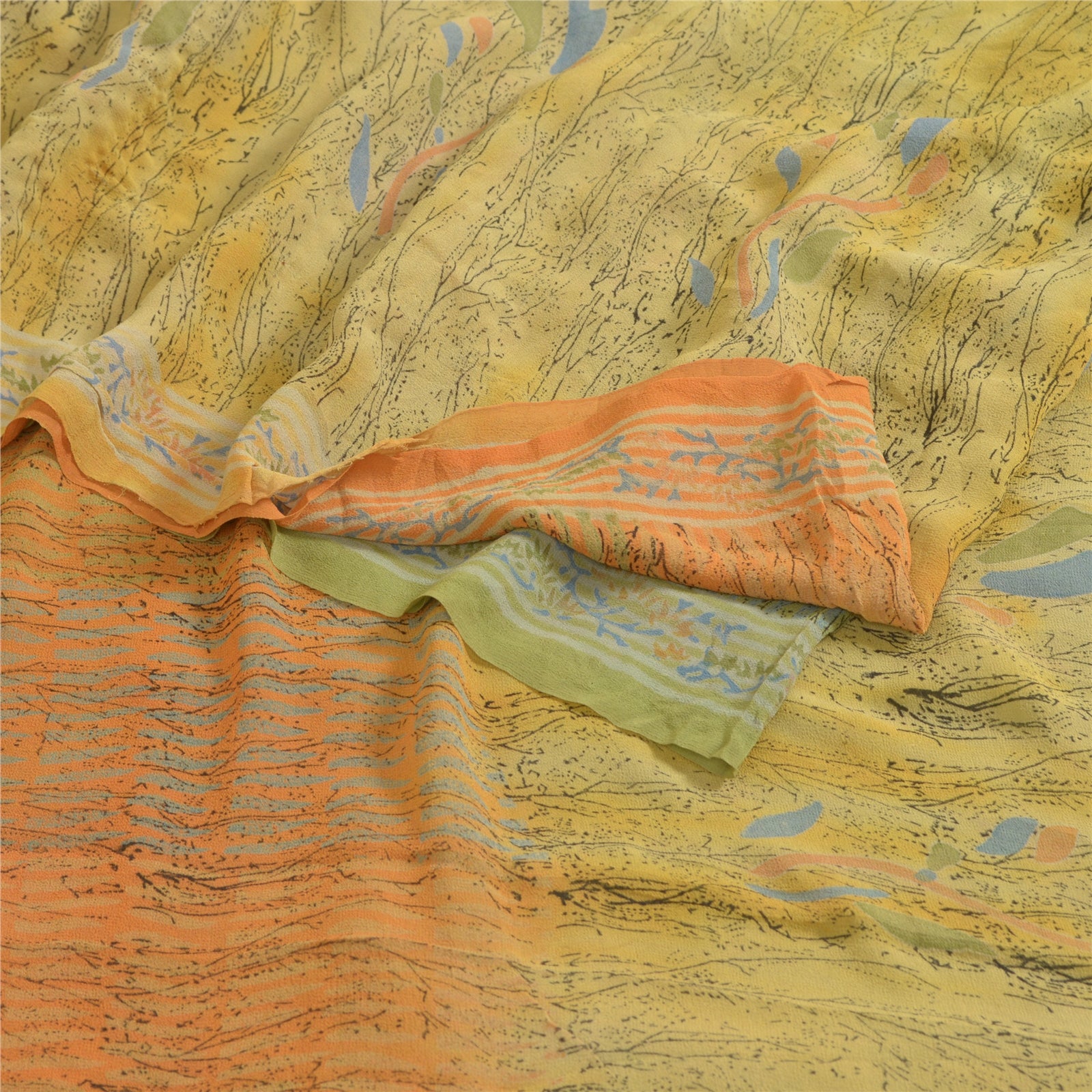 THE ITEM COLOR OR SHADE MAY BE DARKER OR LIGHTER THAN THE PICTURE.' Beautiful multi colored pure georgette silk printed saree. Pallu & border has printed floral & abstract design. Abstract design in center part of saree. Saree has mild stain on it. What is special about this saree? Brilliant design on soft Sustainable Fabric is really enhancing the beauty of the saree. This unique vintage saree can be used for various crafting ideas even if you don't want to use it as a sari. Design a dress, use it as a as window dressing, upholstery, sarongs, throw, dress making and table linen much more. Let your creative juices flow and use this decorated Sustainable Fabric in multiple fashion. International buyers please note: Import duties, taxes, and charges are not included in the item price or postage cost. These charges are the buyer's responsibility. Please check with your country's customs office to determine what these additional costs will be prior to bidding or buying.Buyer will pay custom duty/tax. It is calculated and charged differently by every country. As a seller I do not have any control over it. VAT or sales tax is calculated by the platform at the time of checkout. Customs charge is payable at the time of delivery.