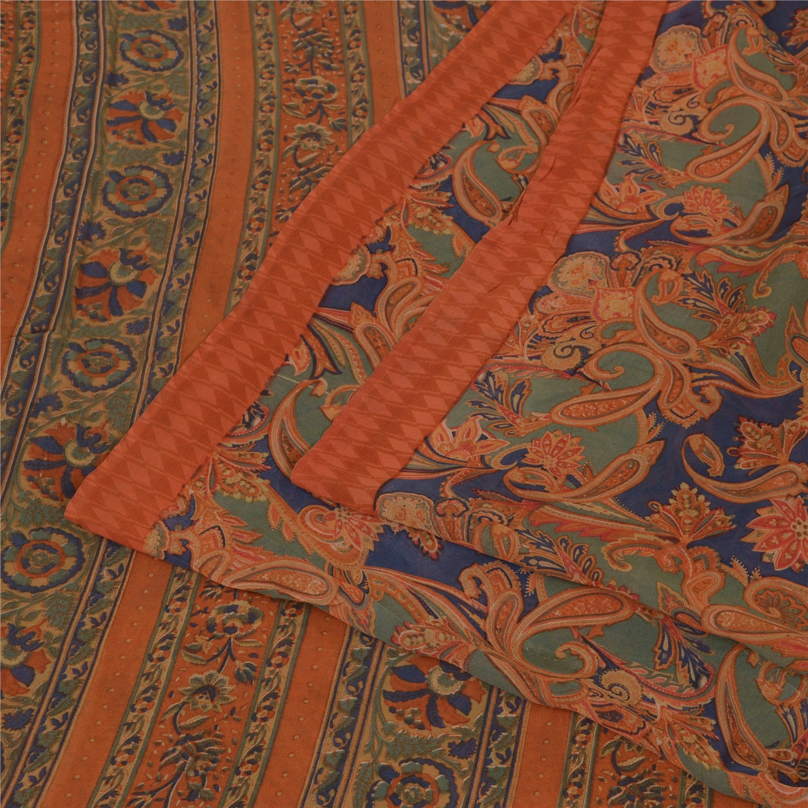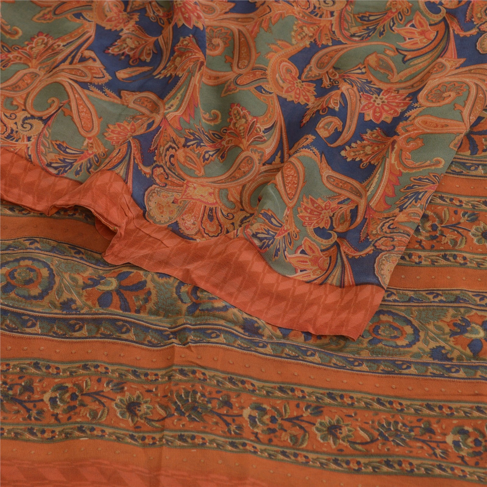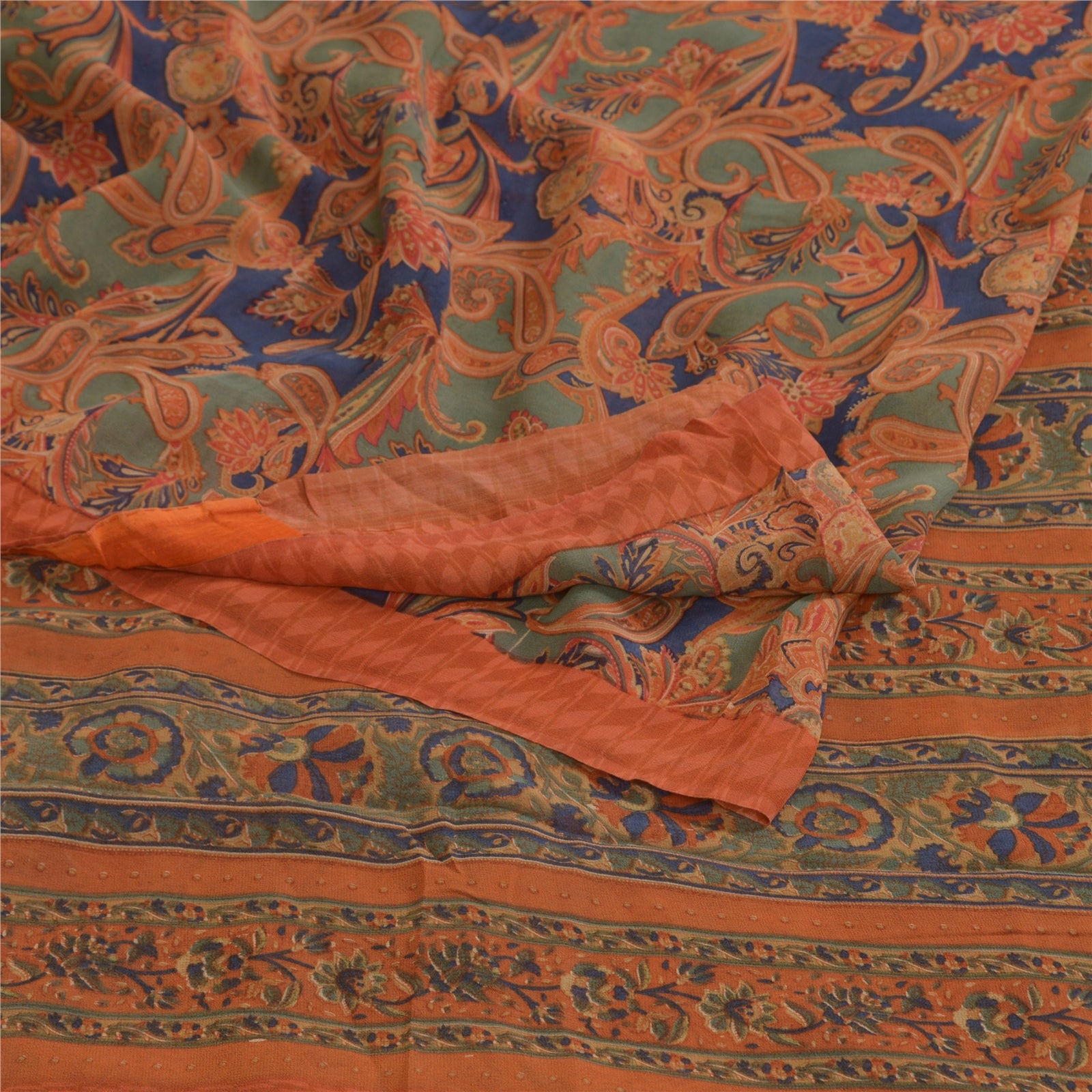 Sanskriti Vintage Sarees Multi Pure Georgette Silk Printed Sari Craft Sustainable Fabric