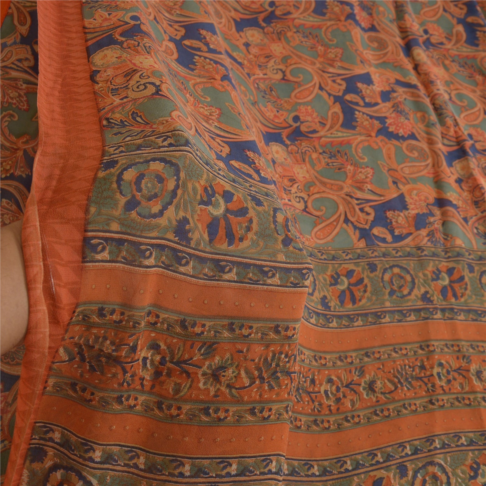 THE ITEM COLOR OR SHADE MAY BE DARKER OR LIGHTER THAN THE PICTURE.' Beautiful multi colored pure georgette silk printed saree. Pallu & border has printed floral design.. Similar design in center part of saree. Saree has mild stain on it. What is special about this saree? Brilliant design on soft Sustainable Fabric is really enhancing the beauty of the saree. This unique vintage saree can be used for various crafting ideas even if you don't want to use it as a sari. Design a dress, use it as a as window dressing, upholstery, sarongs, throw, dress making and table linen much more. Let your creative juices flow and use this decorated Sustainable Fabric in multiple fashion. International buyers please note: Import duties, taxes, and charges are not included in the item price or postage cost. These charges are the buyer's responsibility. Please check with your country's customs office to determine what these additional costs will be prior to bidding or buying.Buyer will pay custom duty/tax. It is calculated and charged differently by every country. As a seller I do not have any control over it. VAT or sales tax is calculated by the platform at the time of checkout. Customs charge is payable at the time of delivery.