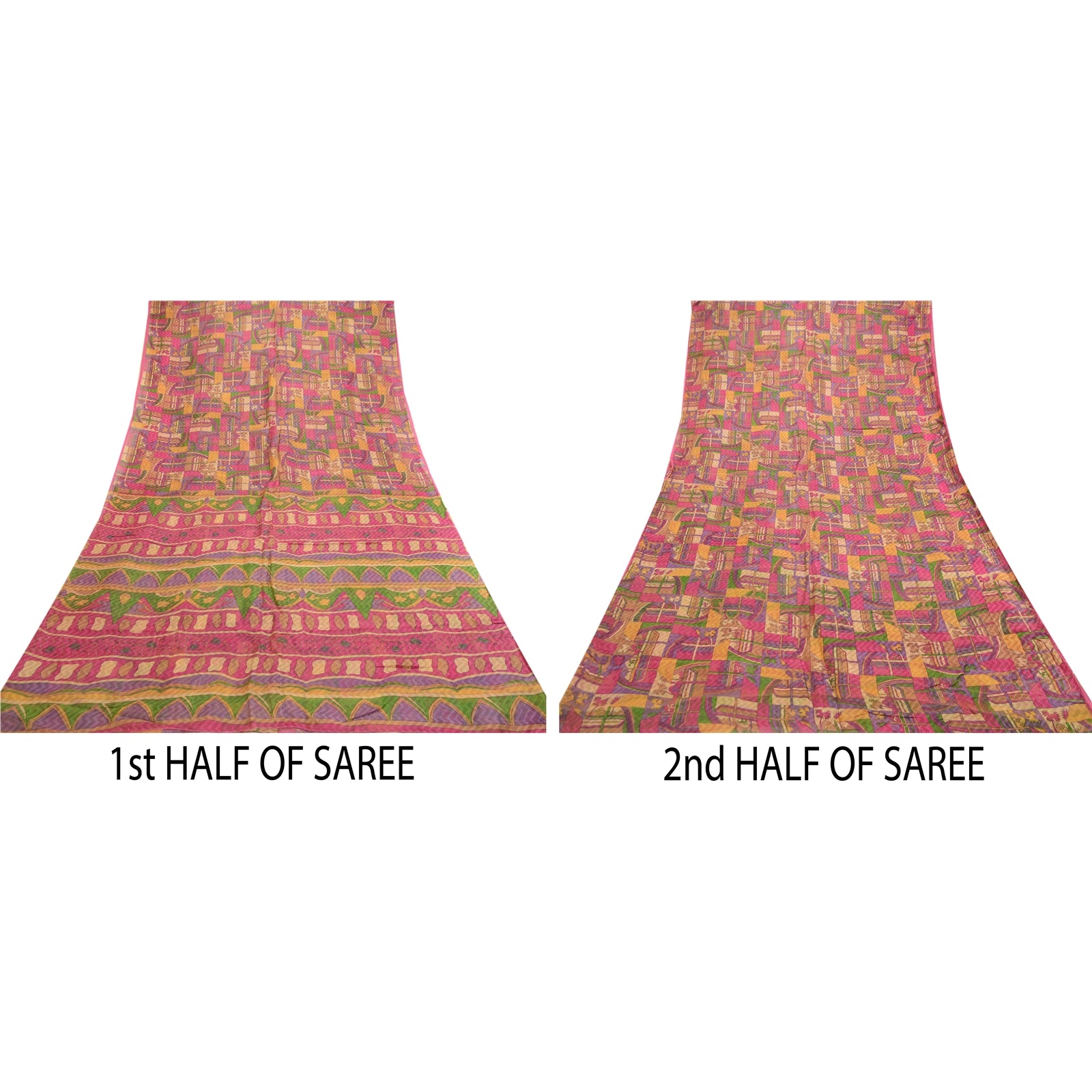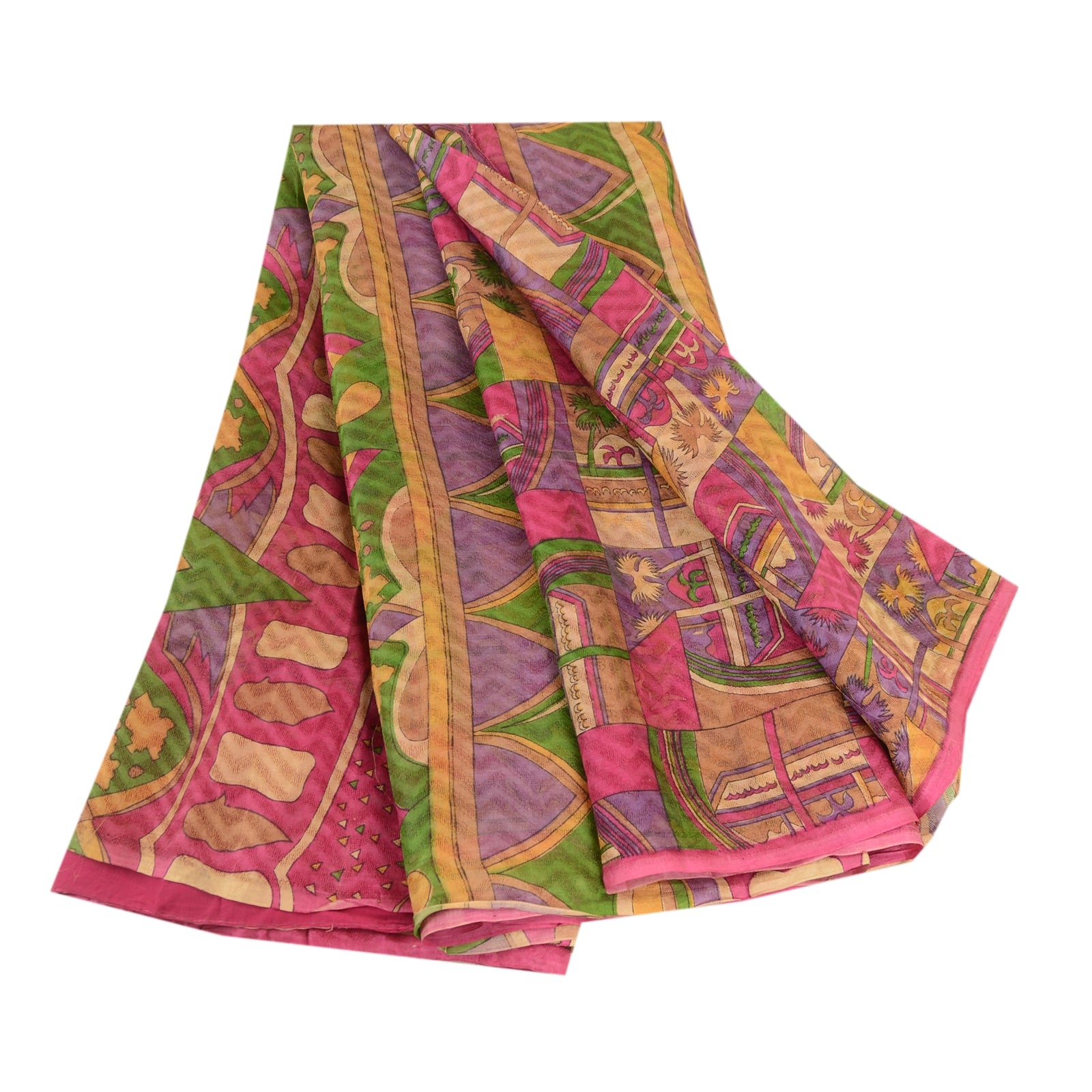 Sanskriti Vintage Sarees Multi Pure Silk Printed Woven Sari Soft Craft Sustainable Fabric