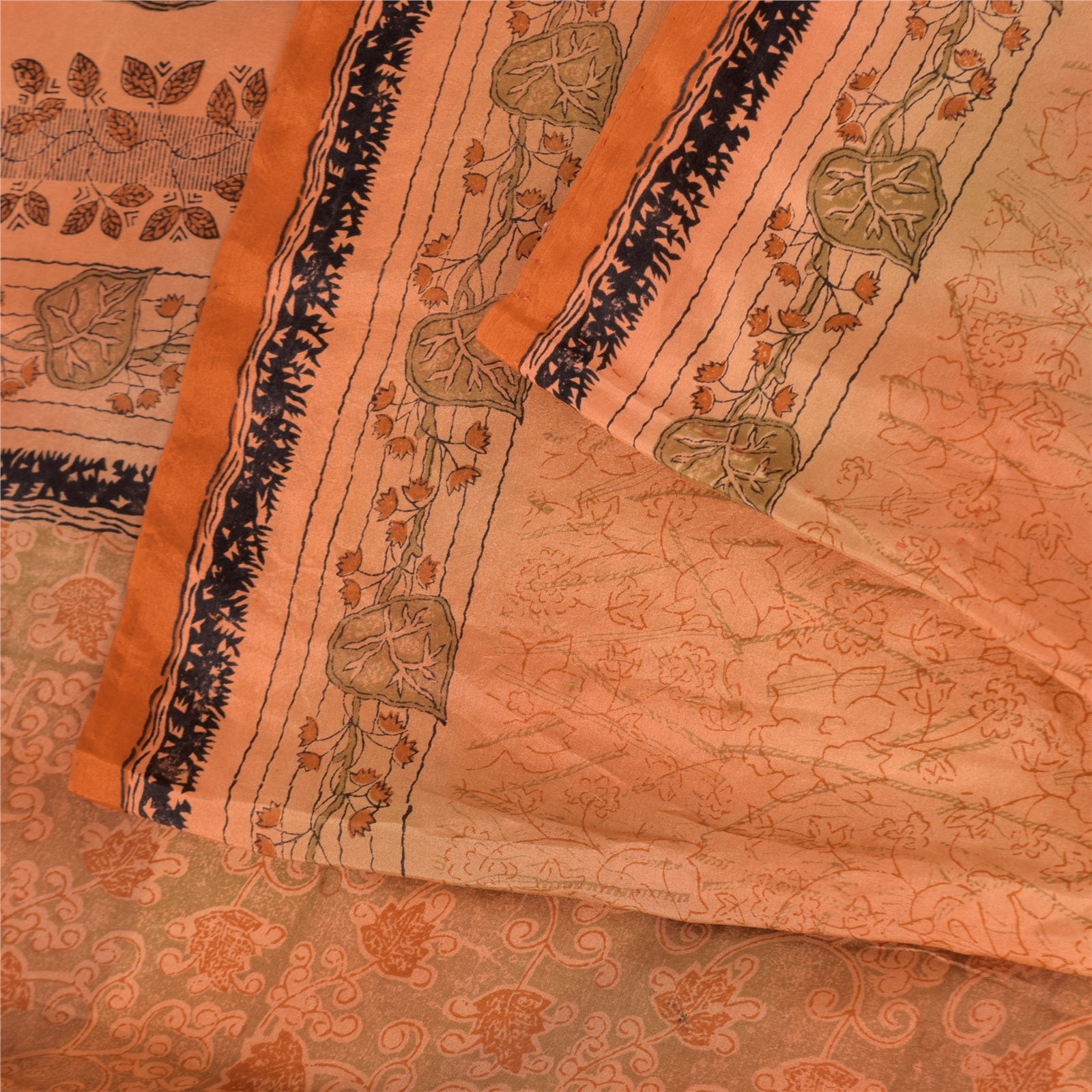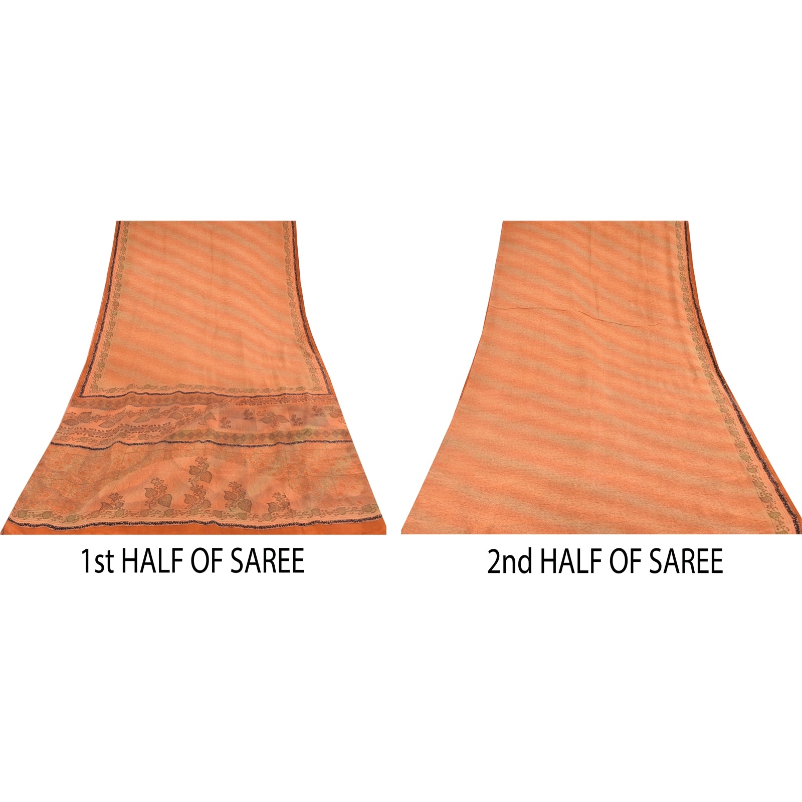 Sanskriti Vintage Sarees Orange 100% Pure Silk Printed Sari 5yd Craft Sustainable Fabric