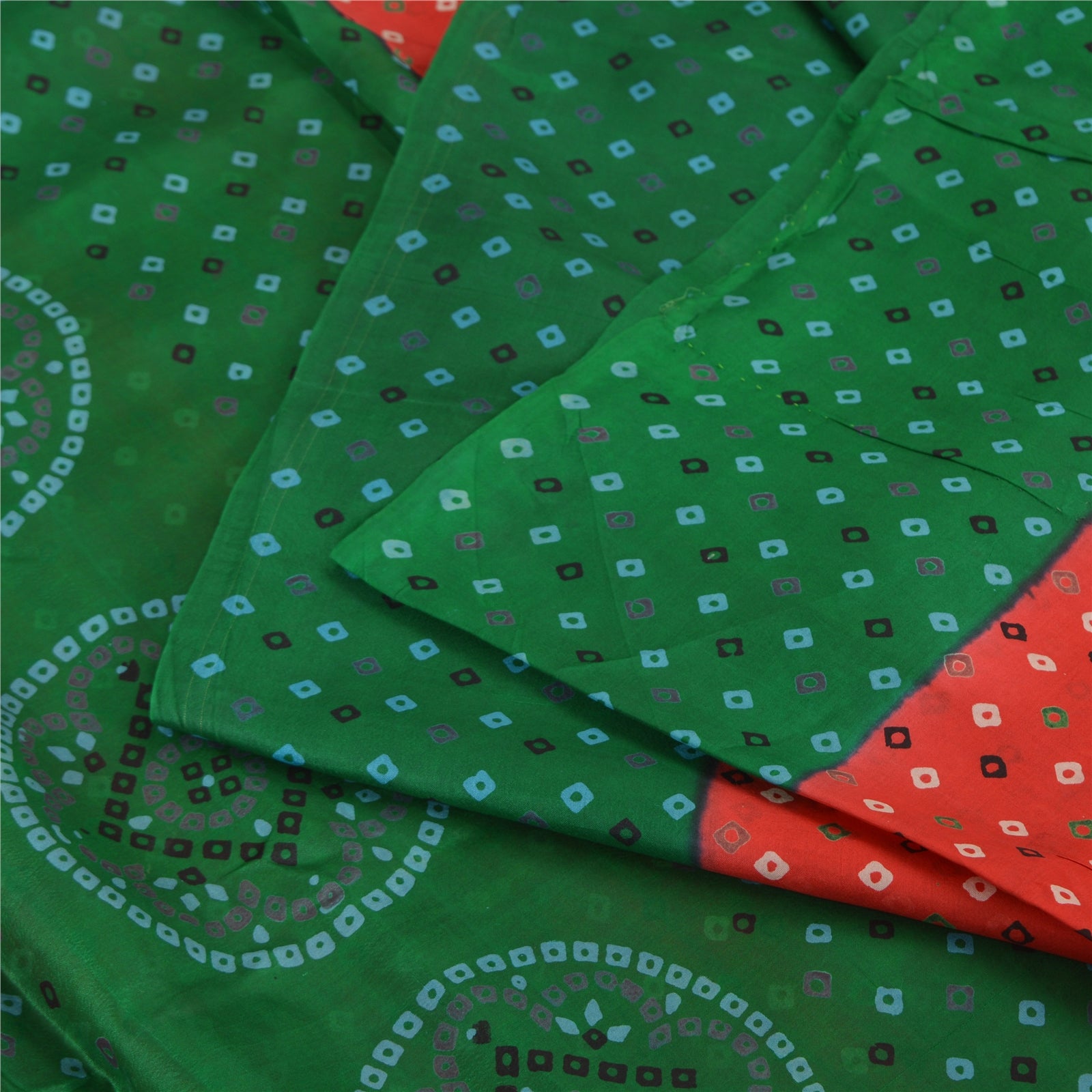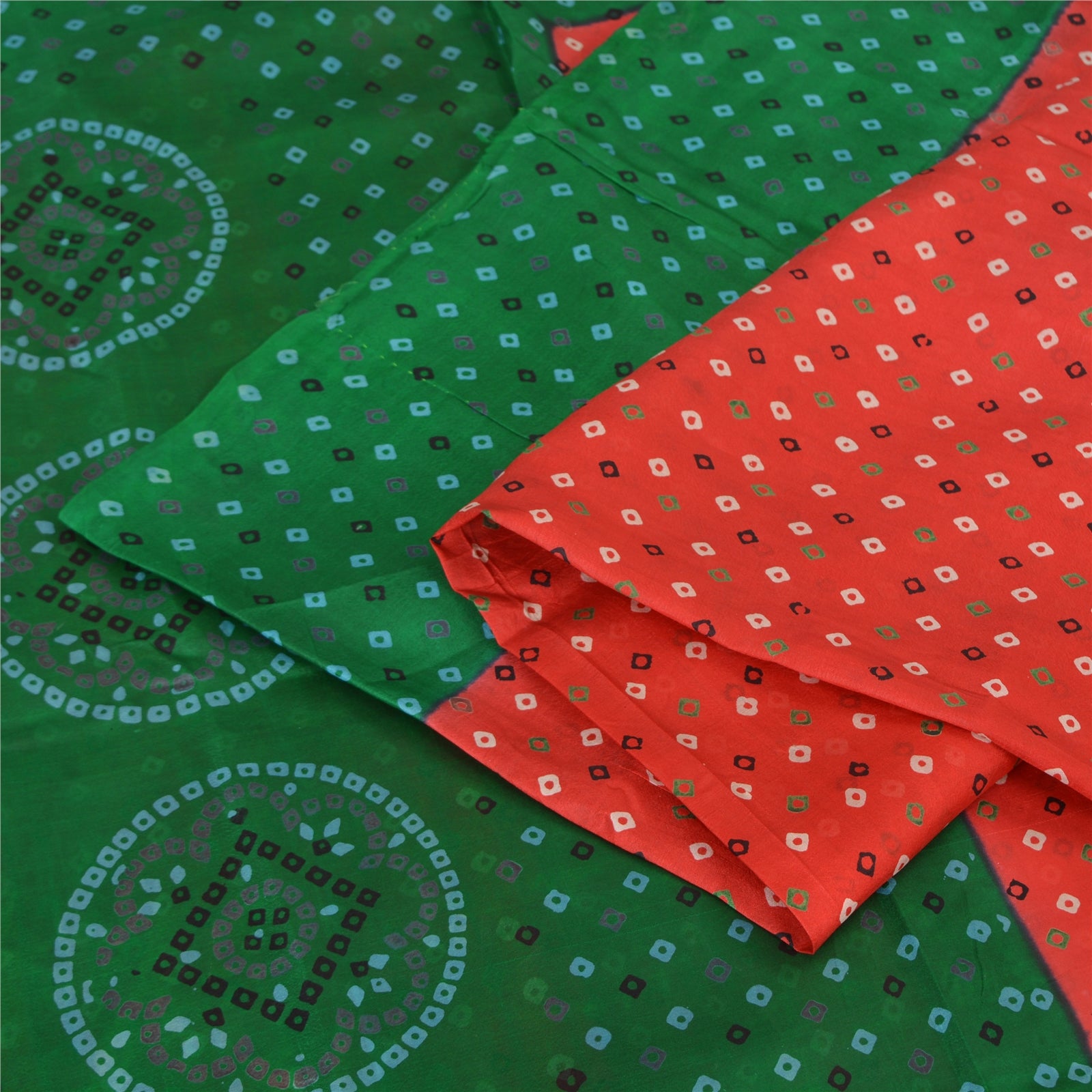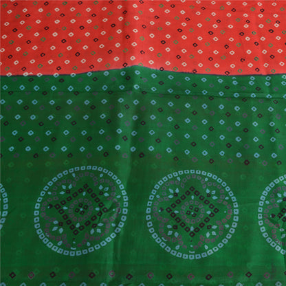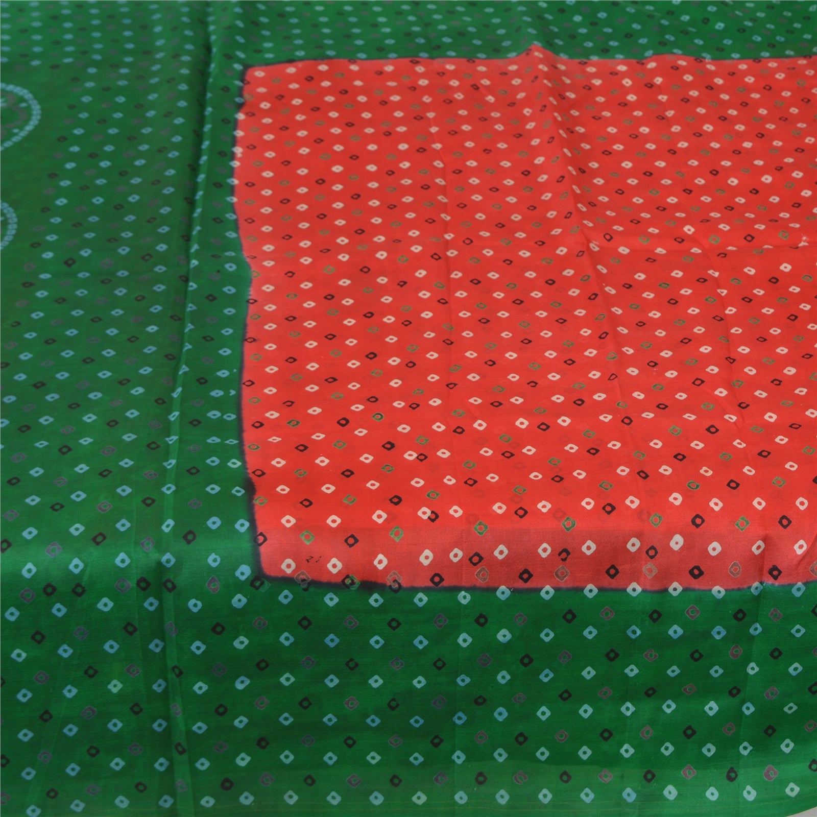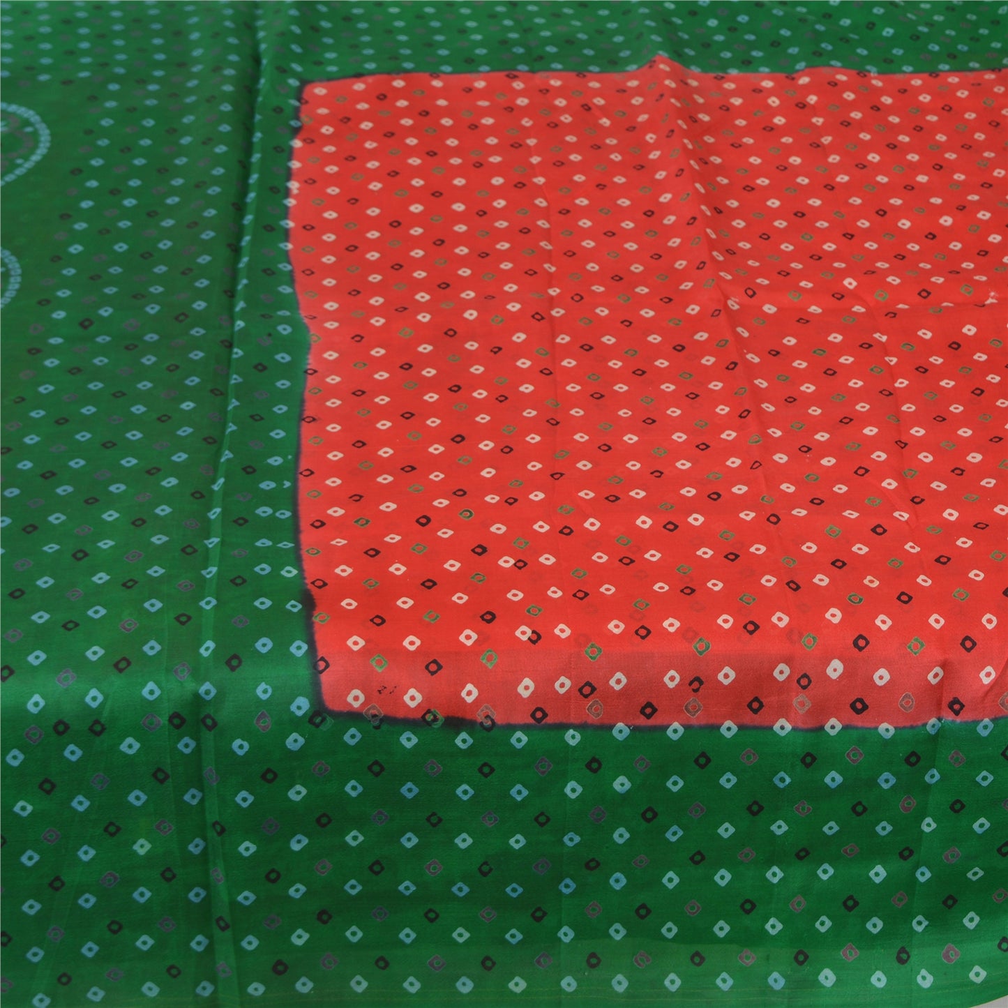Sanskriti Vintage Sarees Orange/Green Bandhani Print Pure Silk Sari Deco Sustainable Fabric