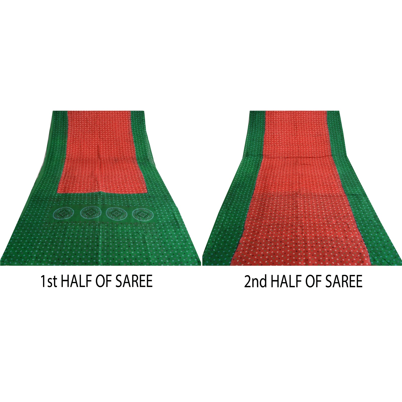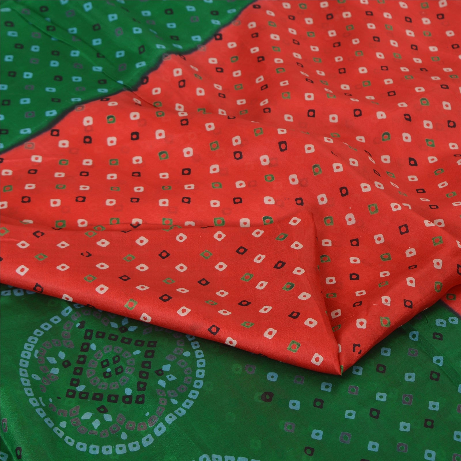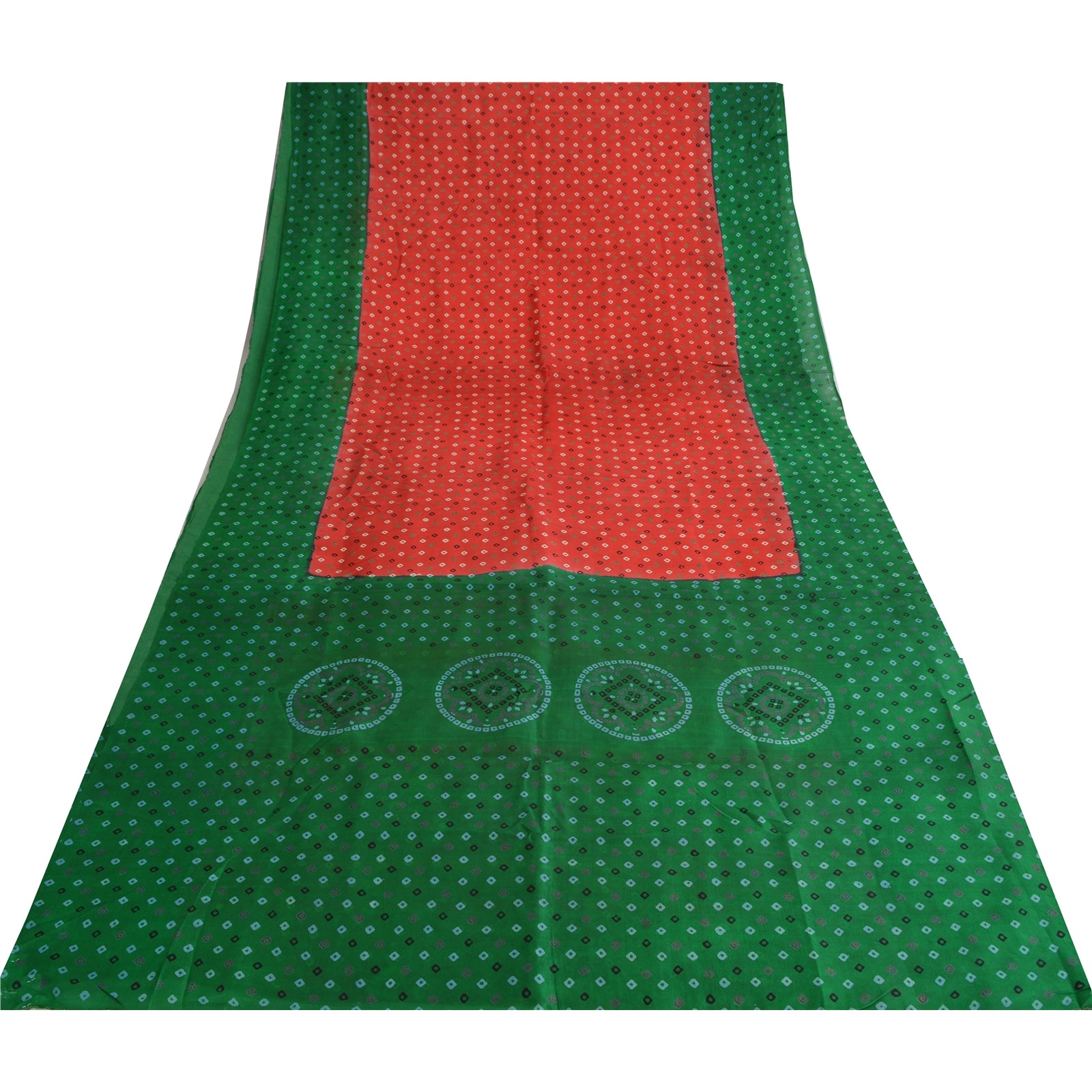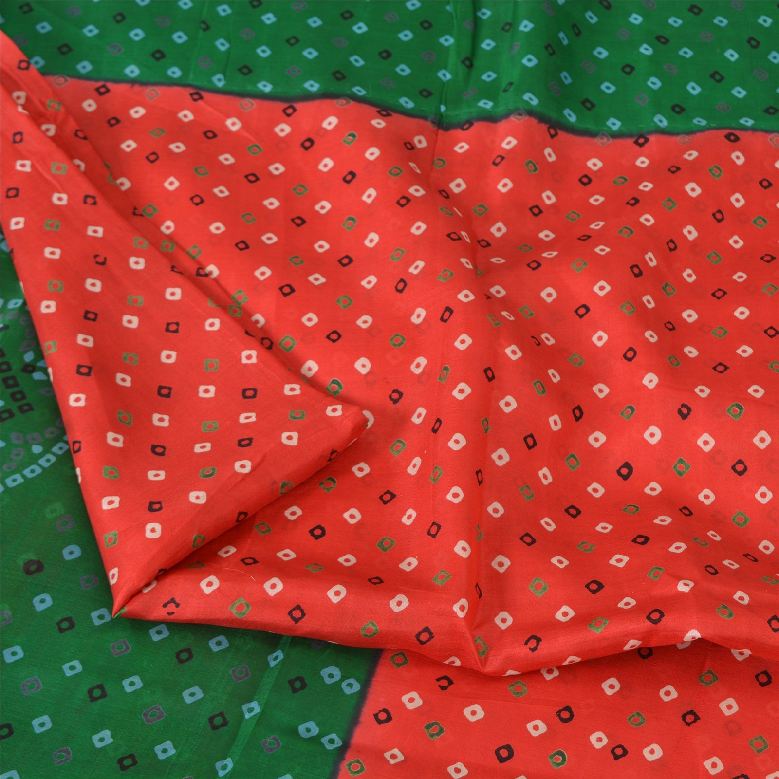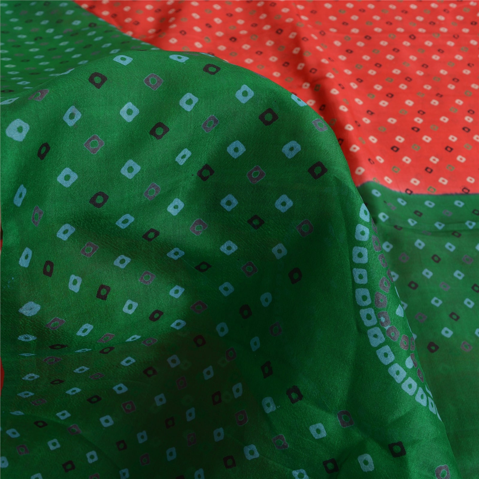 Sanskriti Vintage Sarees Orange/Green Bandhani Print Pure Silk Sari Deco Sustainable Fabric