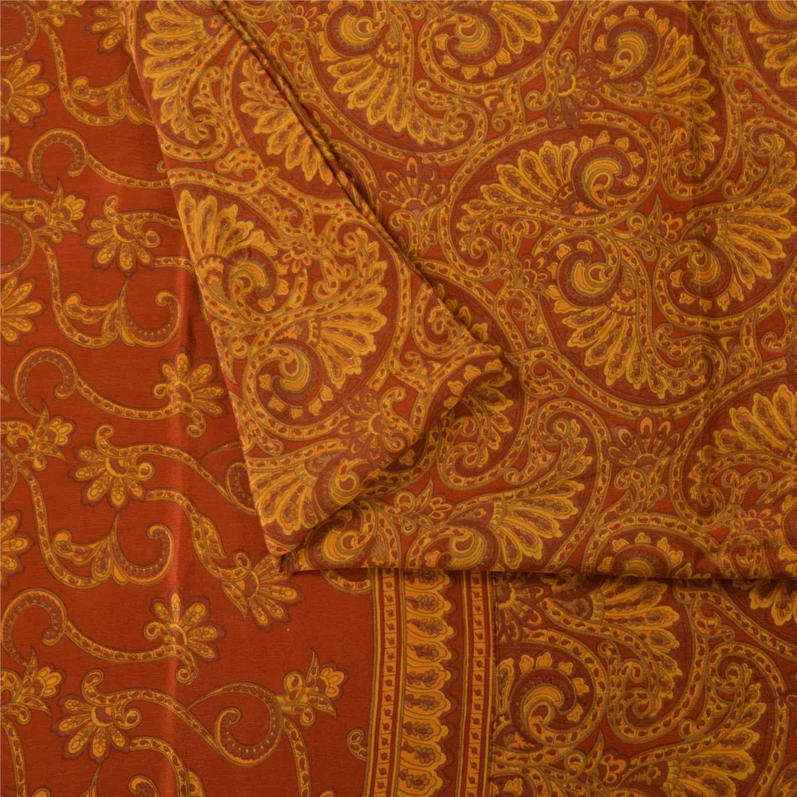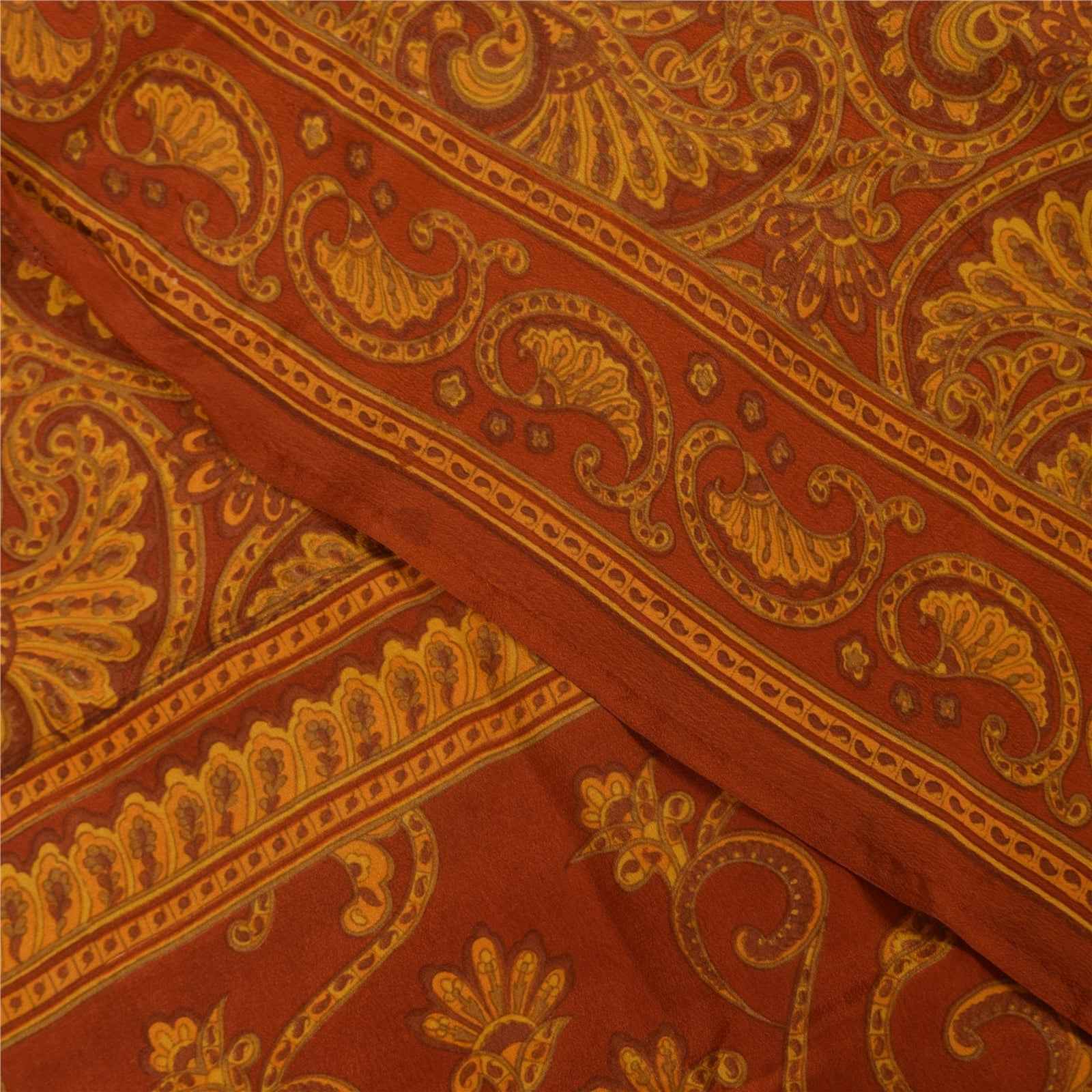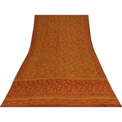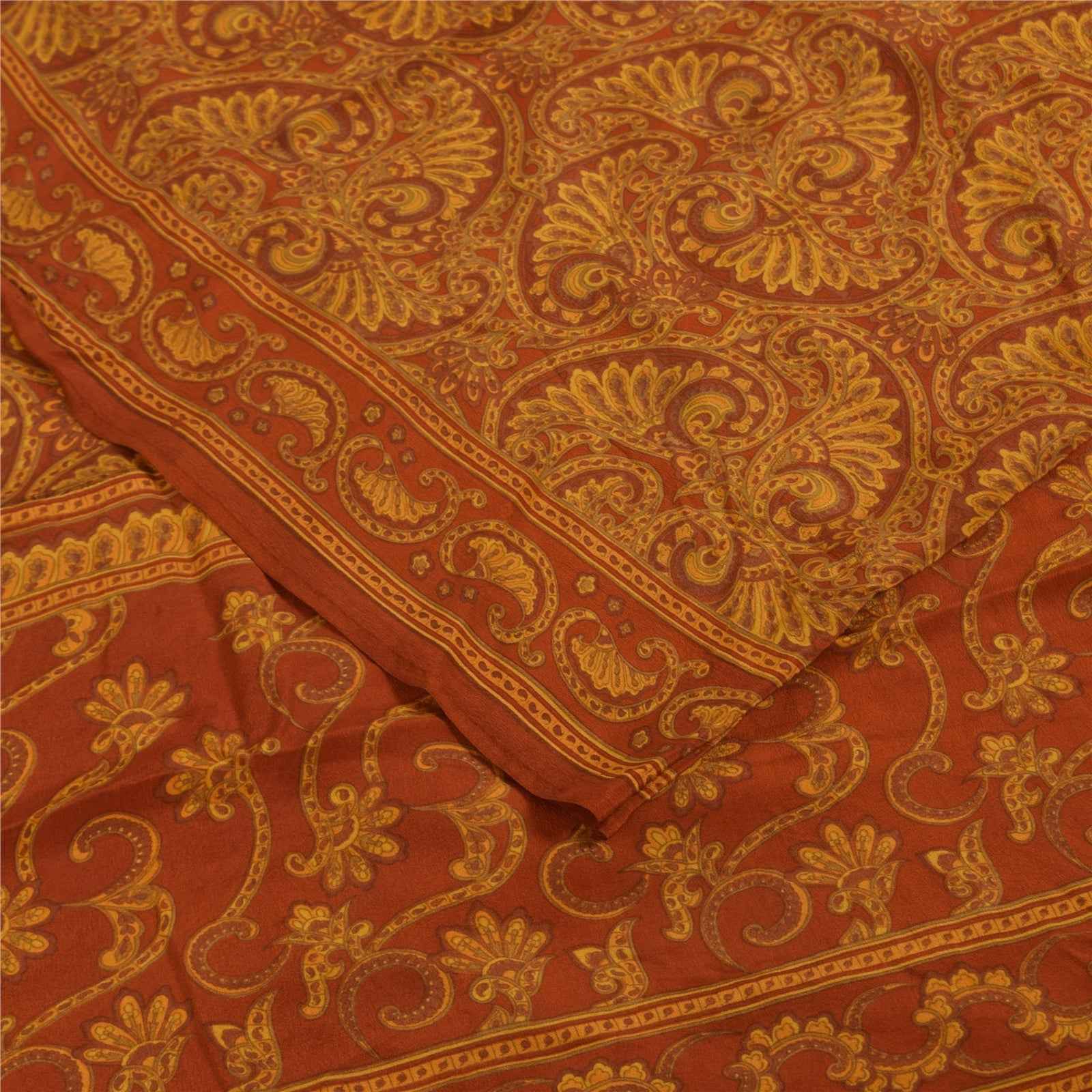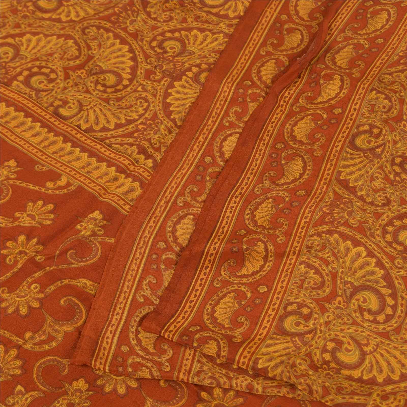 Sanskriti Vintage Sarees Orange Pure Crepe Silk Printed Sari 5+yd Craft Fabric