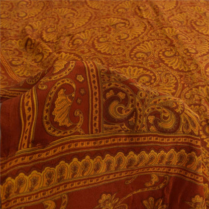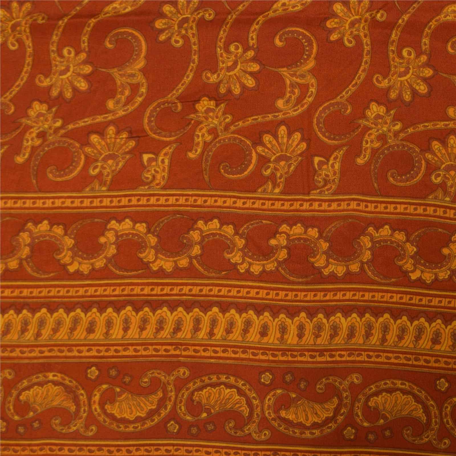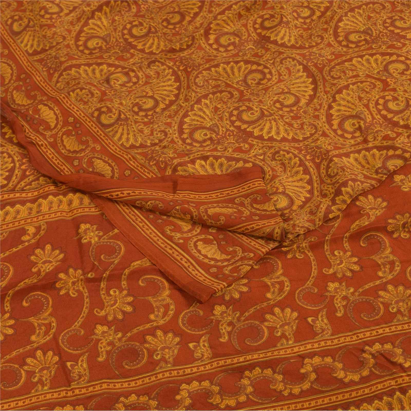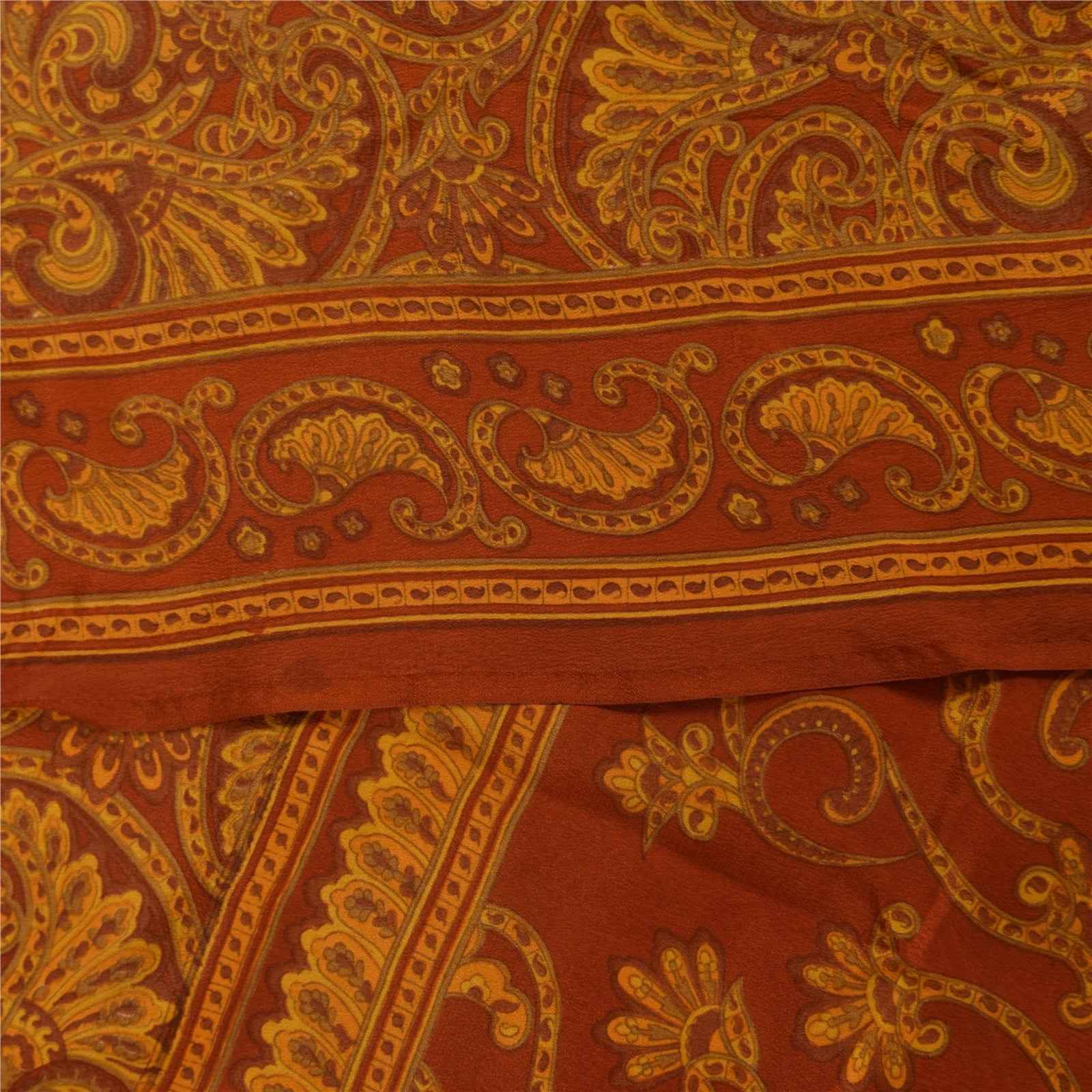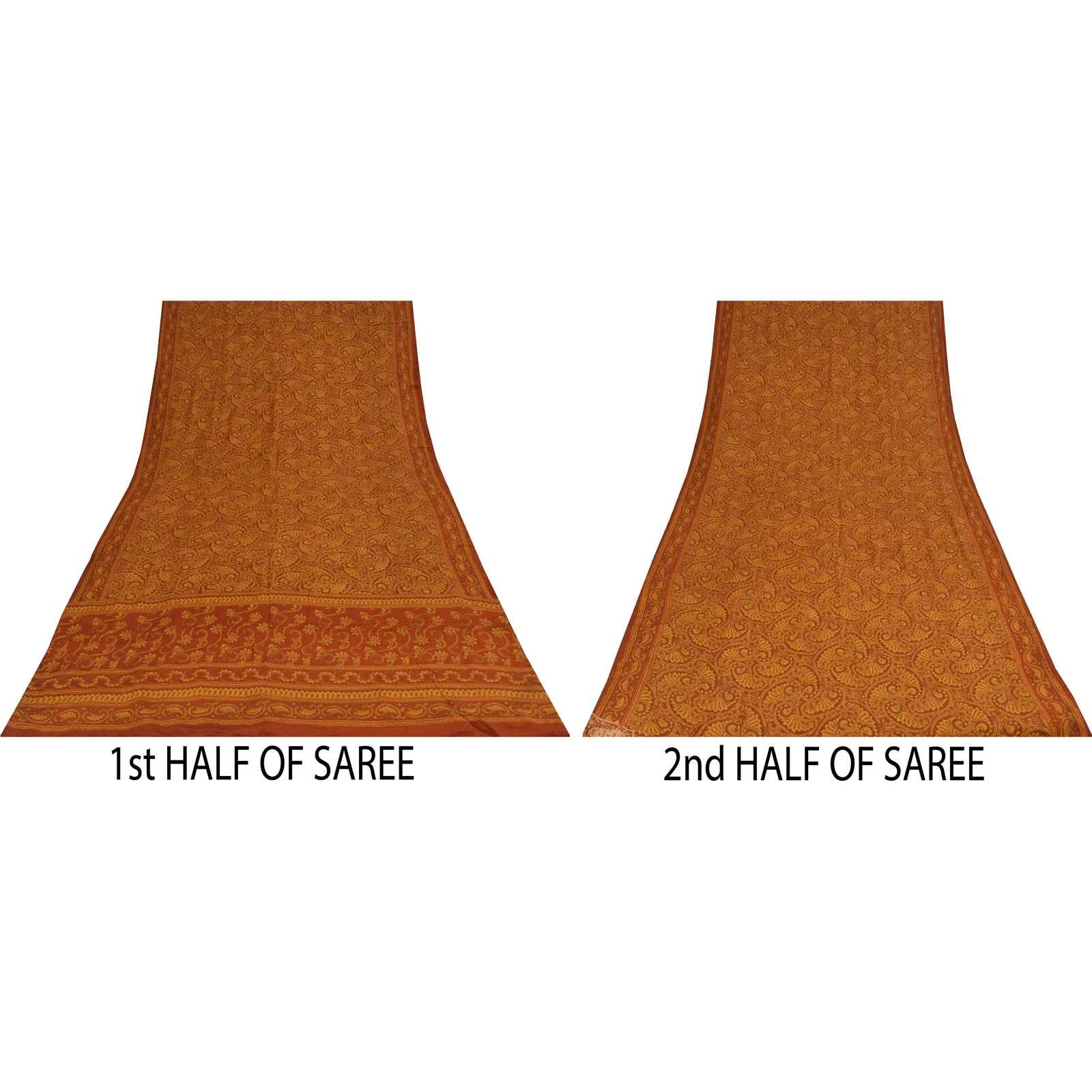 Sanskriti Vintage Sarees Orange Pure Crepe Silk Printed Sari 5+yd Craft Fabric