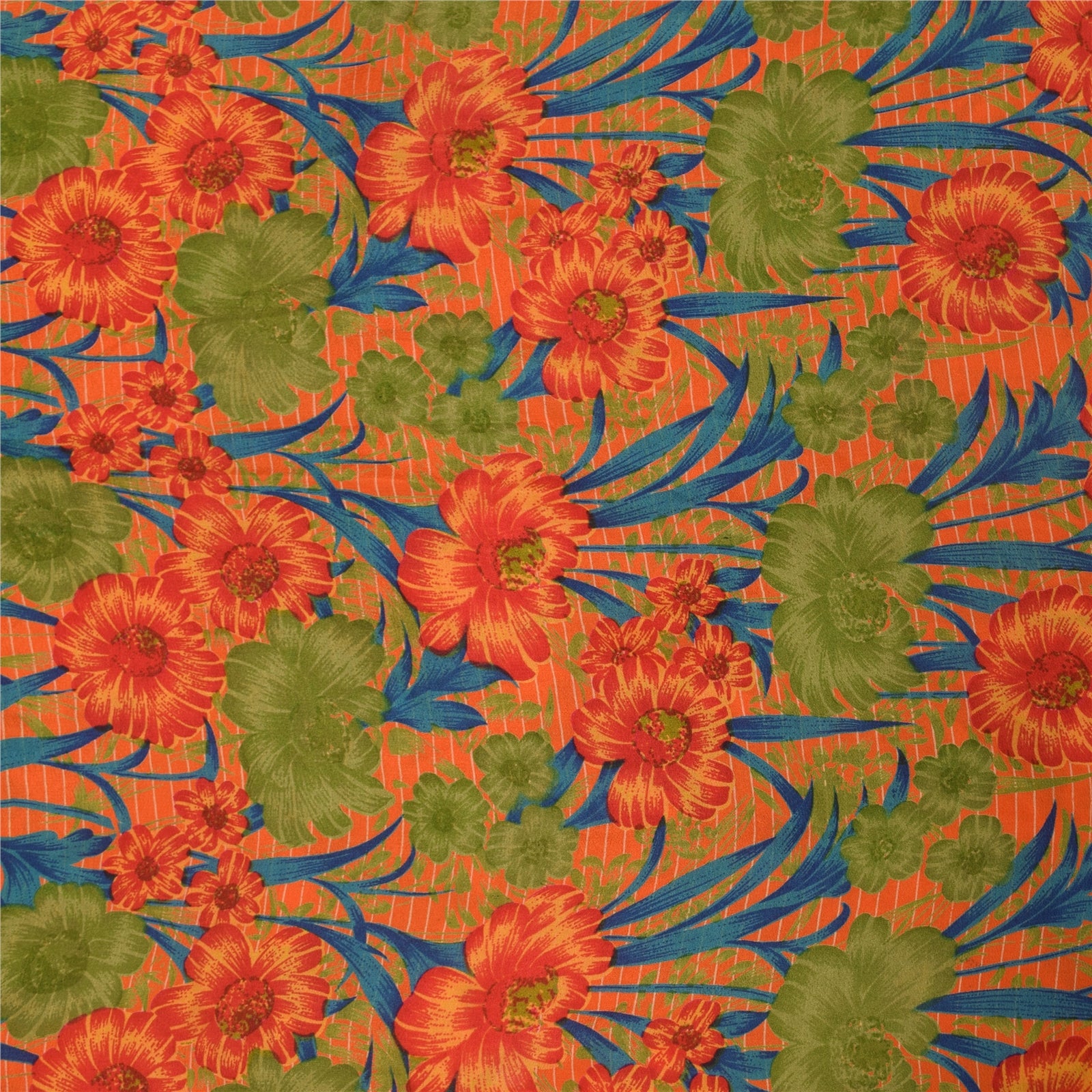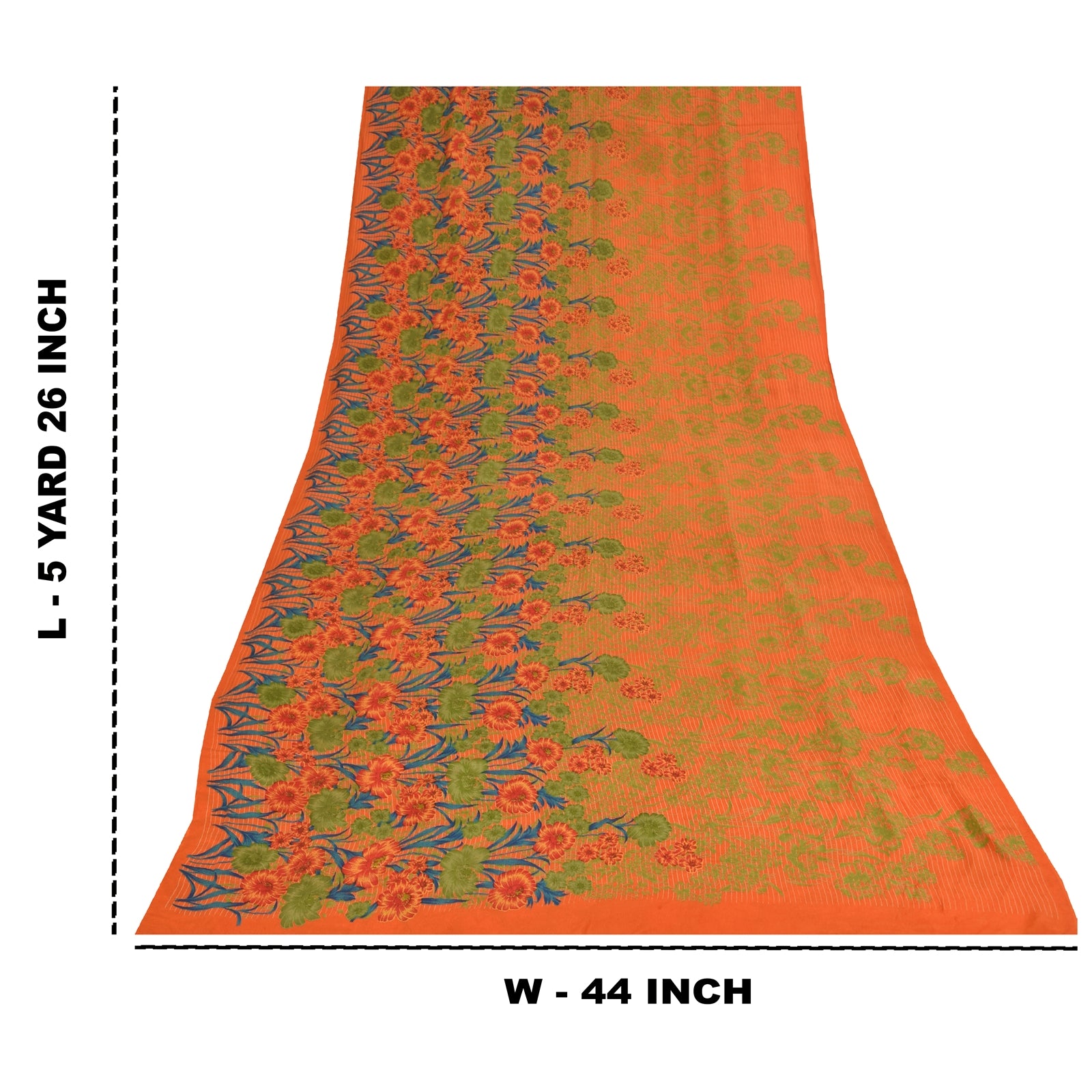 Sanskriti Vintage Sarees Orange Pure Crepe Silk Printed Sari 5+yd Craft Fabric