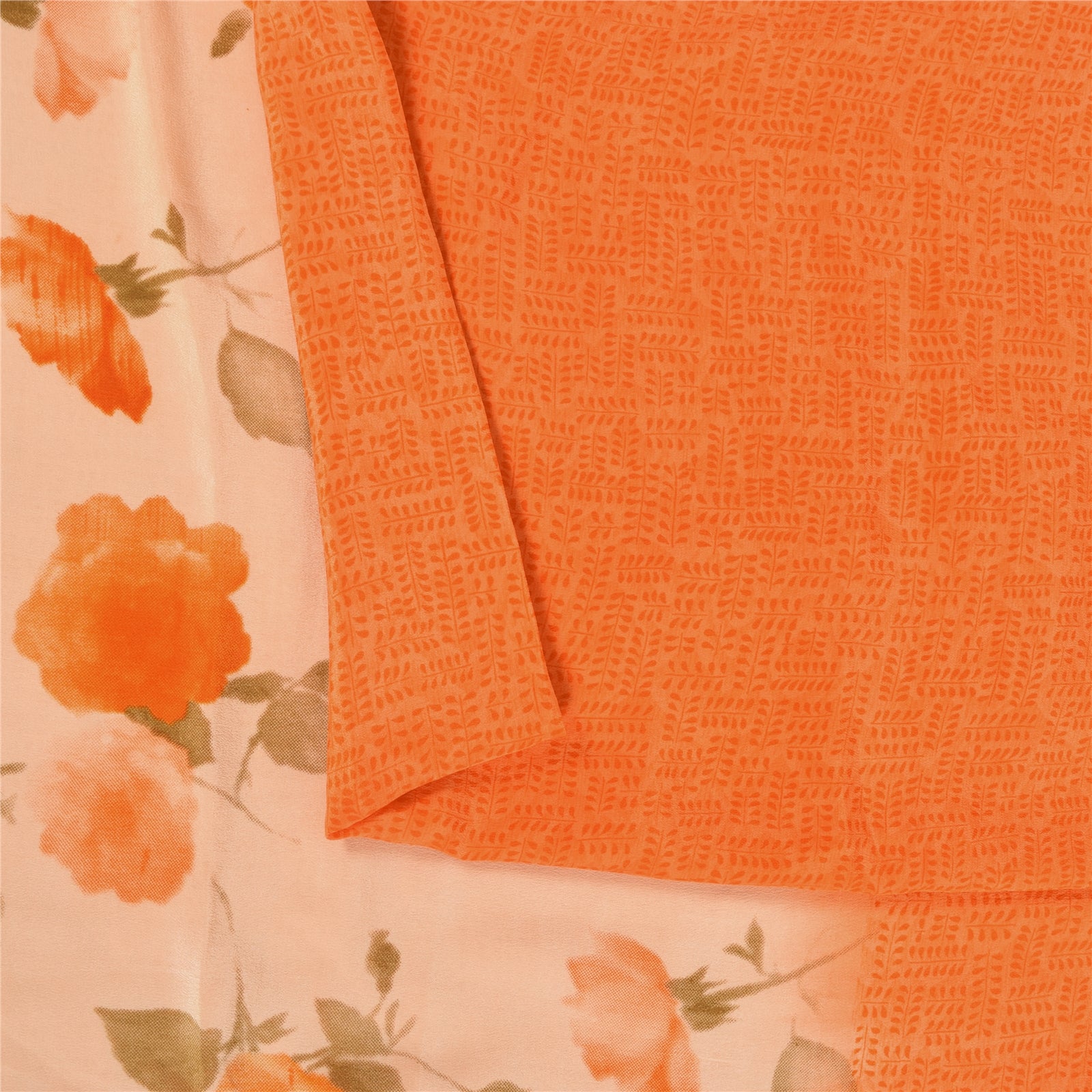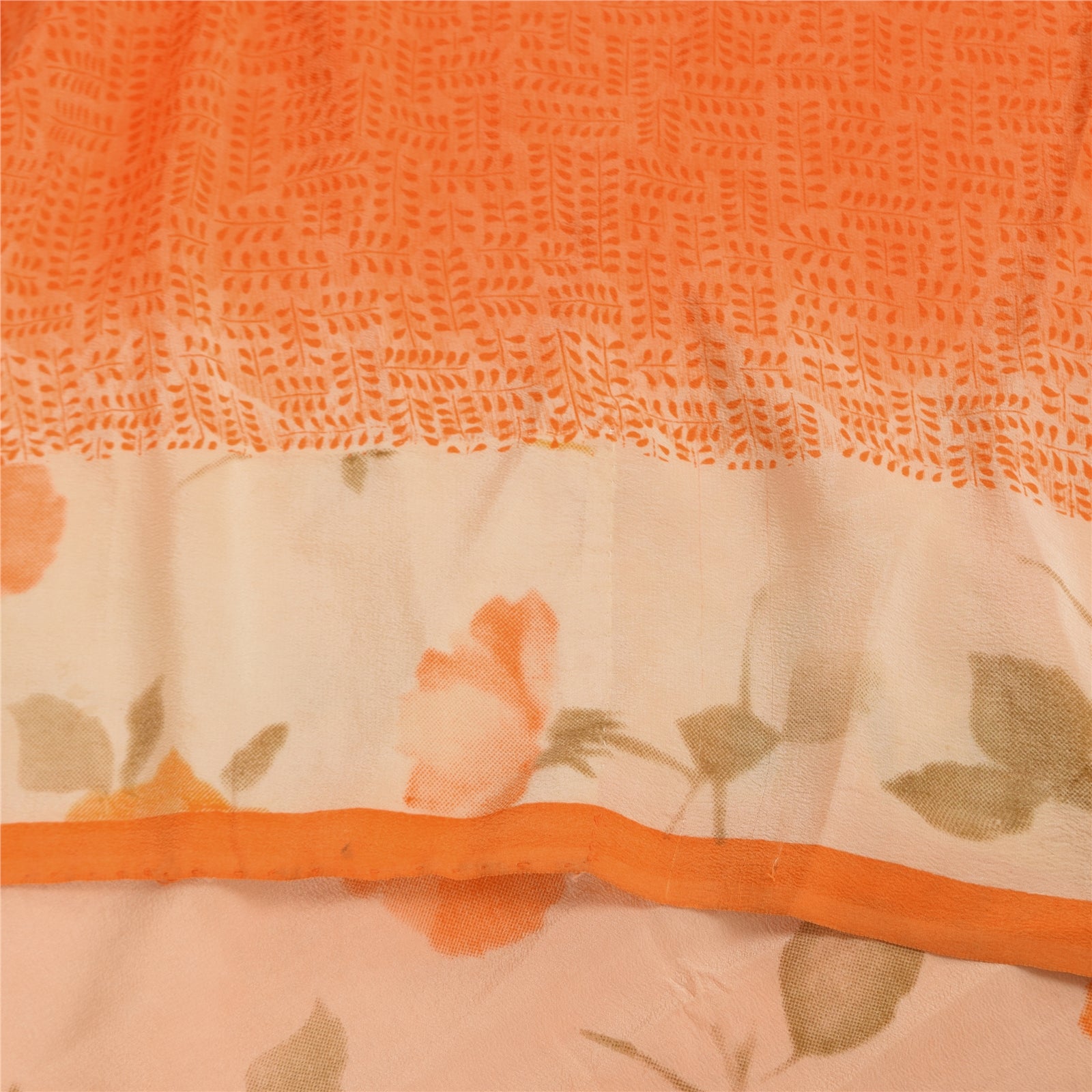 Sanskriti Vintage Sarees Orange Pure Crepe Silk Printed Sari 5+yd Craft Sustainable Fabric