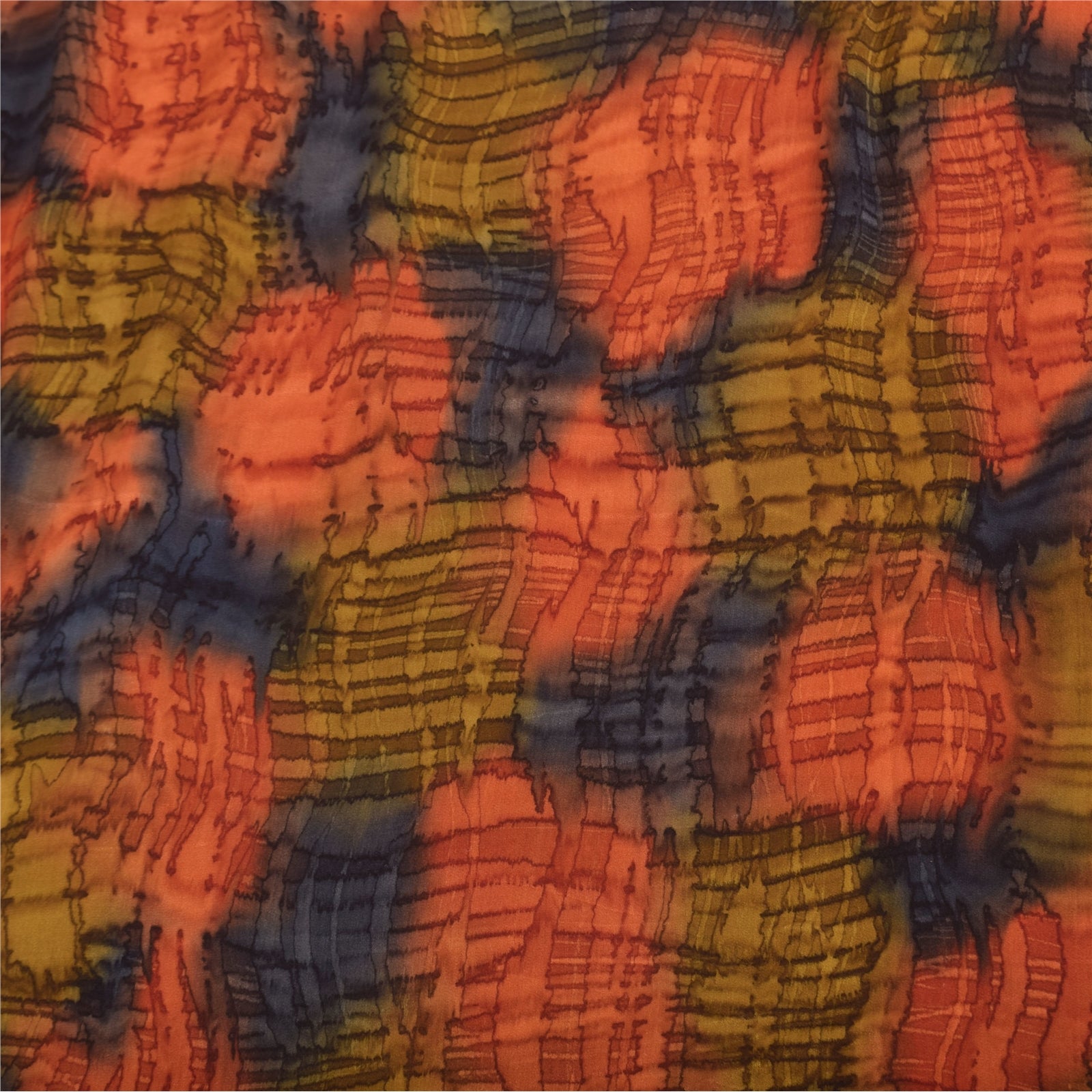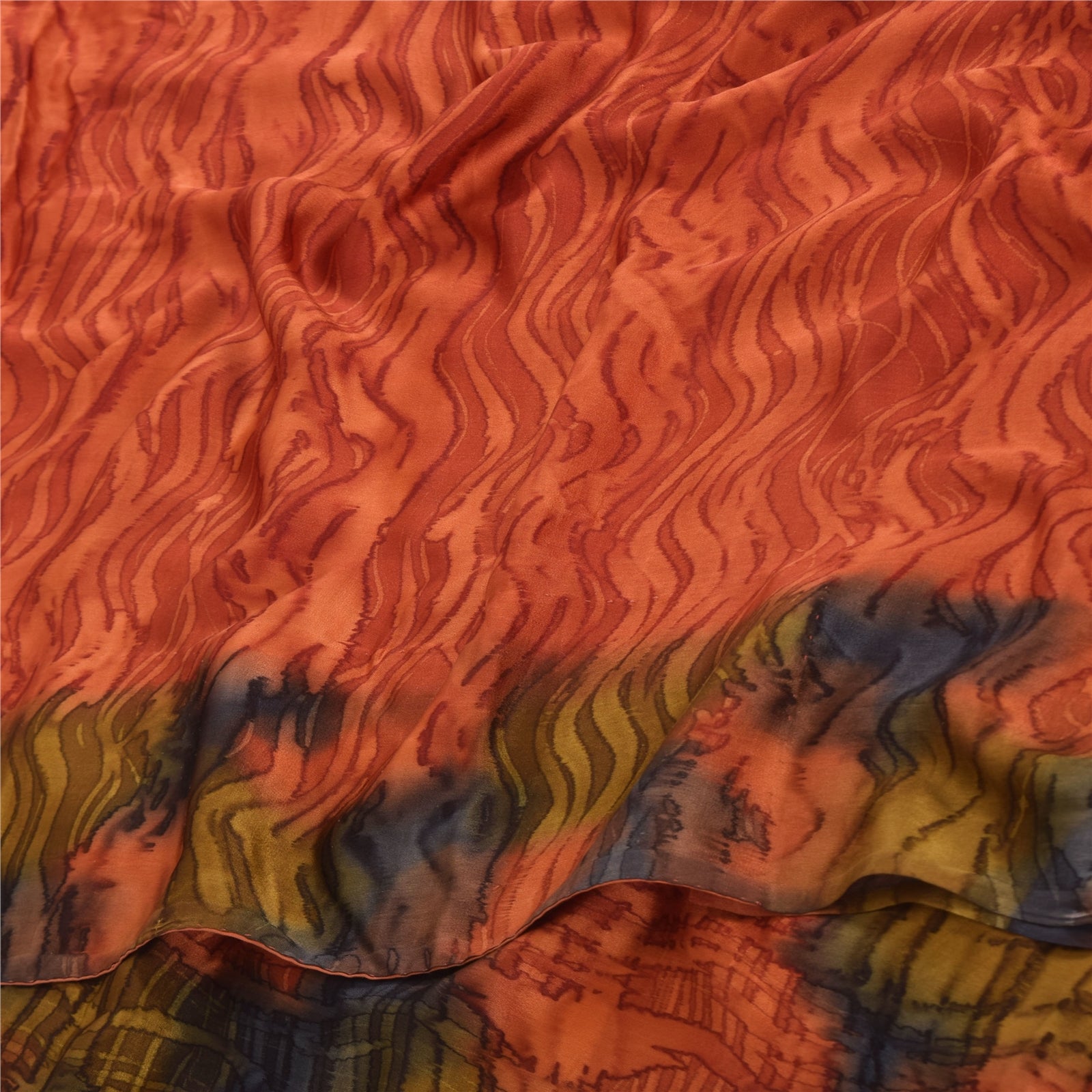 Sanskriti Vintage Sarees Orange Pure Crepe Silk Printed Sari 5yd Craft Fabric