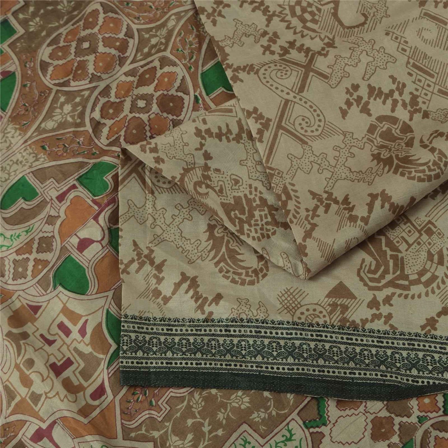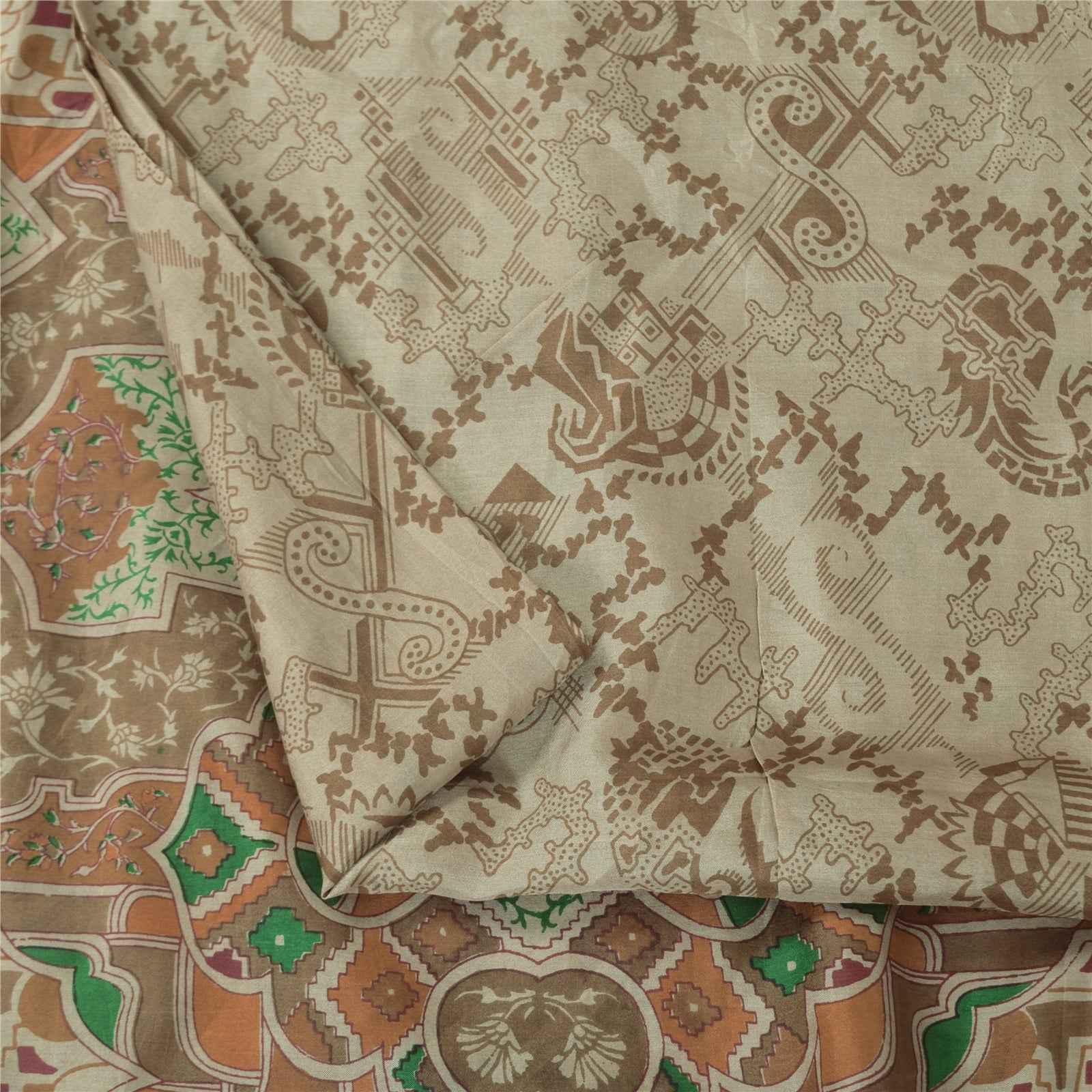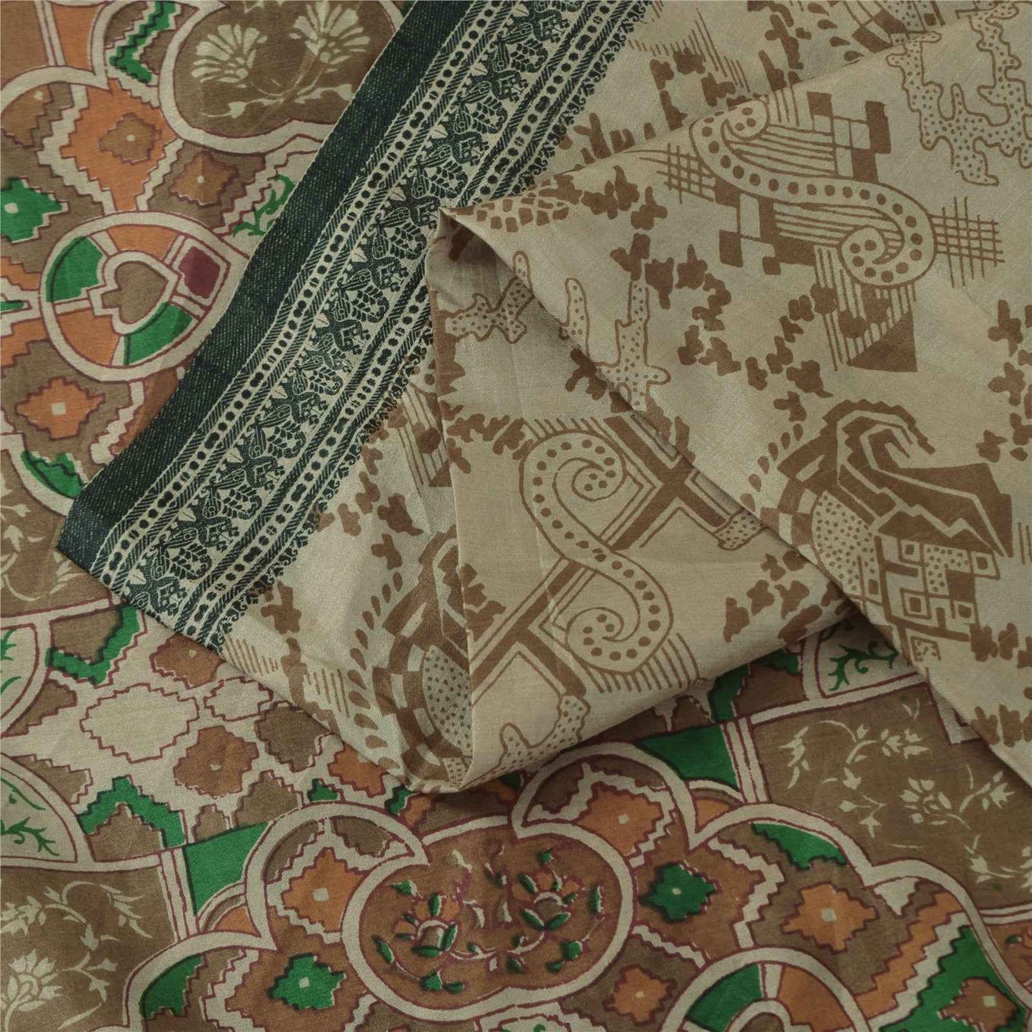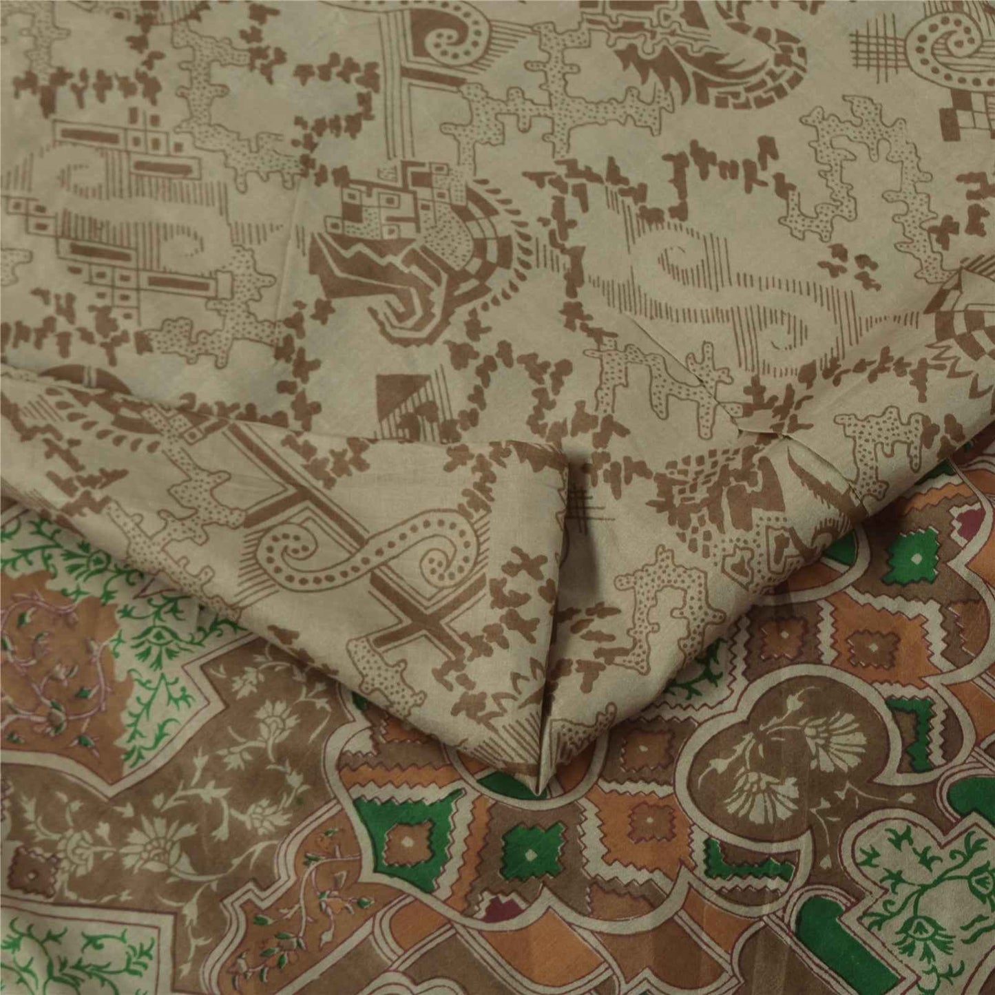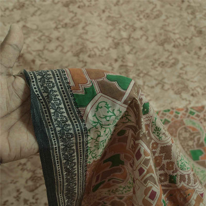 Sanskriti Vintage Sarees Pale Cream Pure Silk Printed Sari 6+yd Craft Fabric
