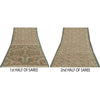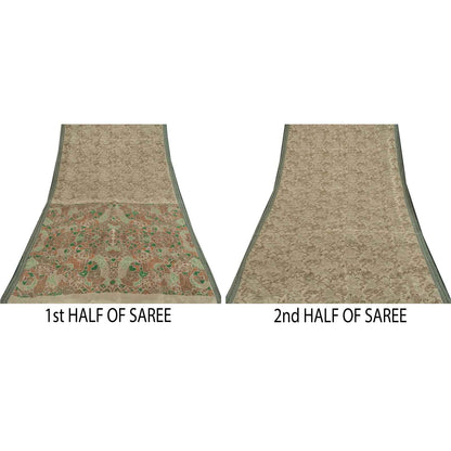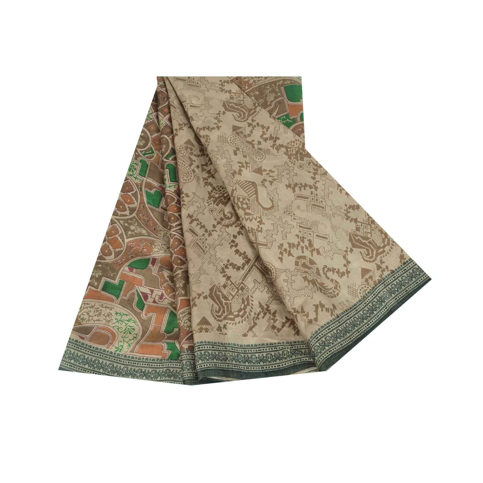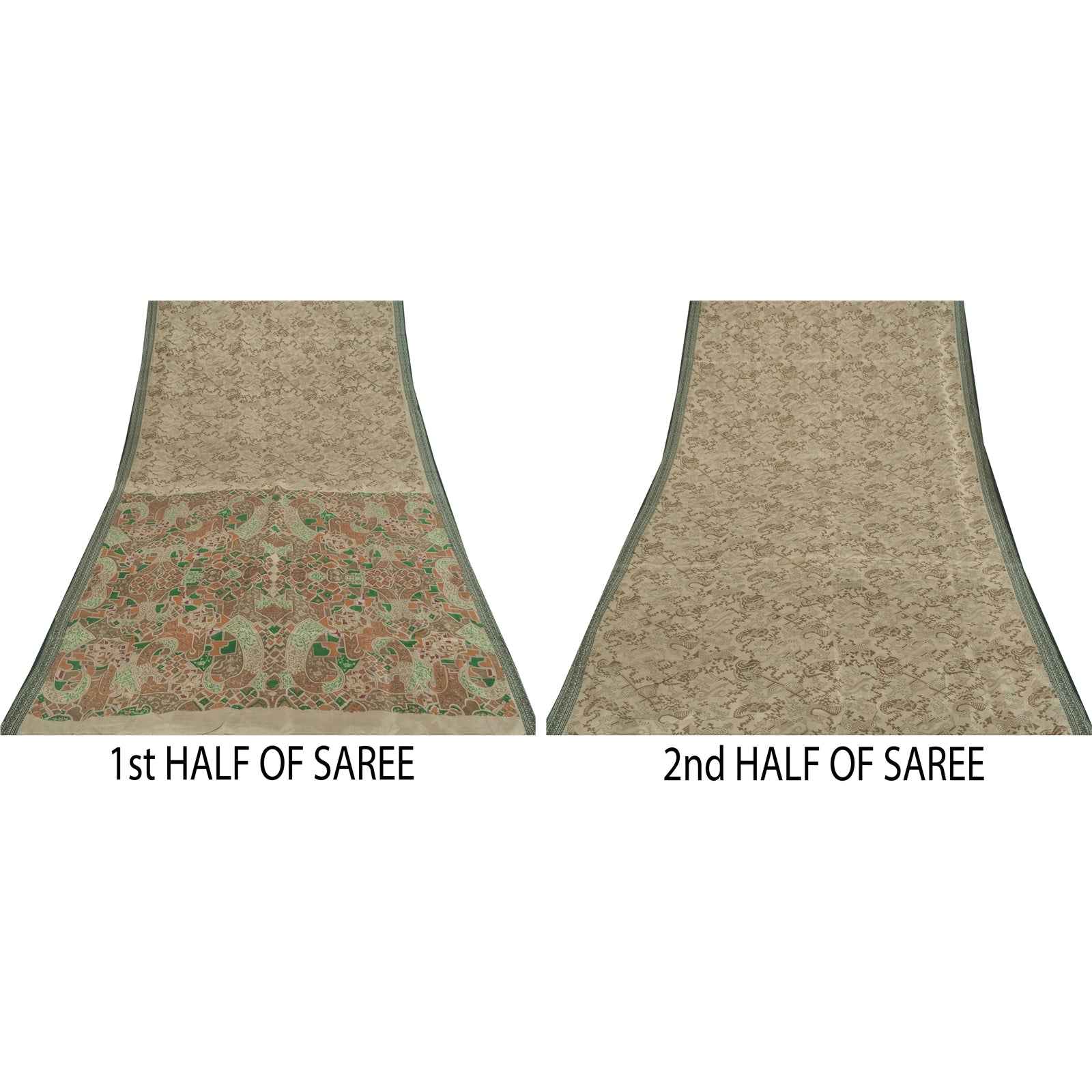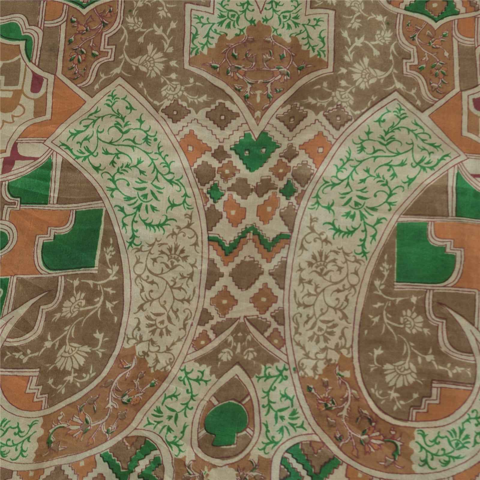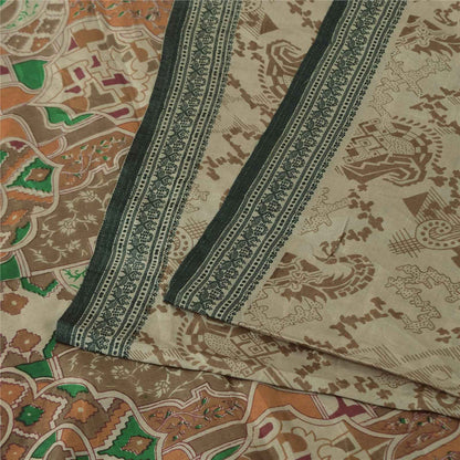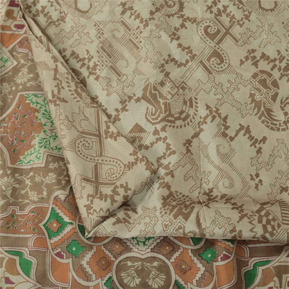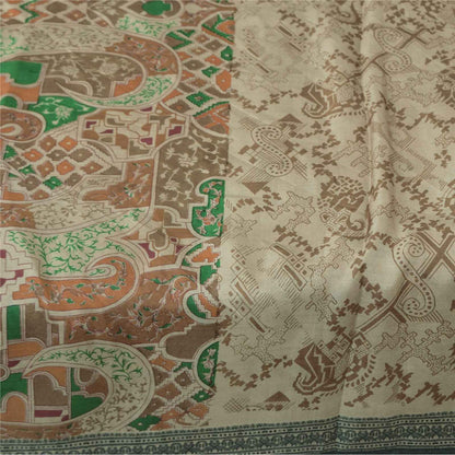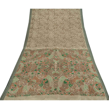 Sanskriti Vintage Sarees Pale Cream Pure Silk Printed Sari 6+yd Craft Fabric