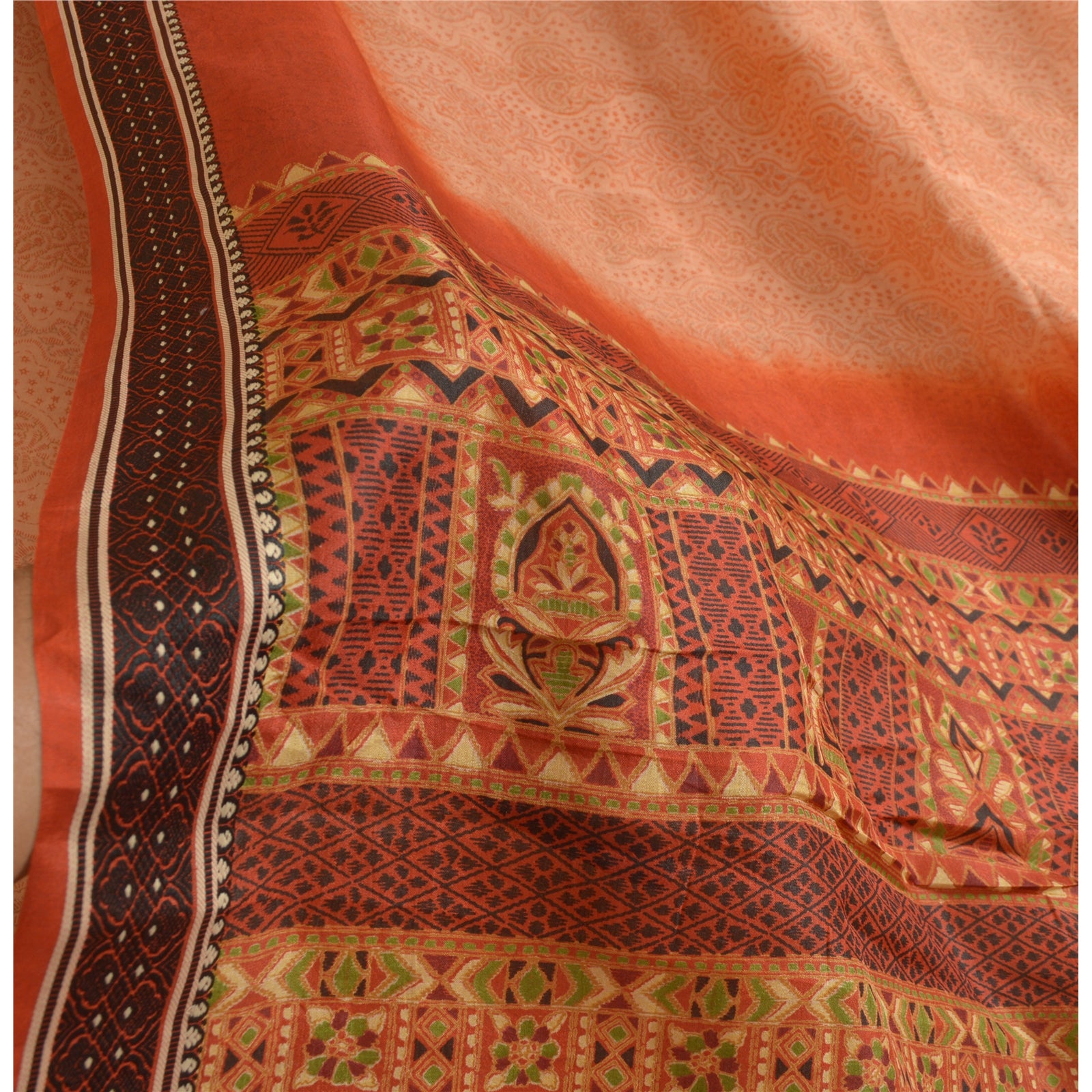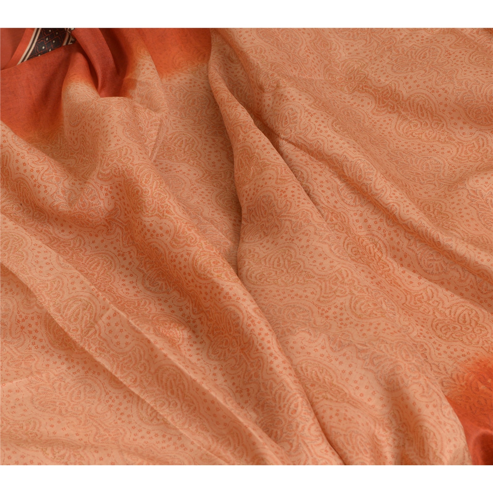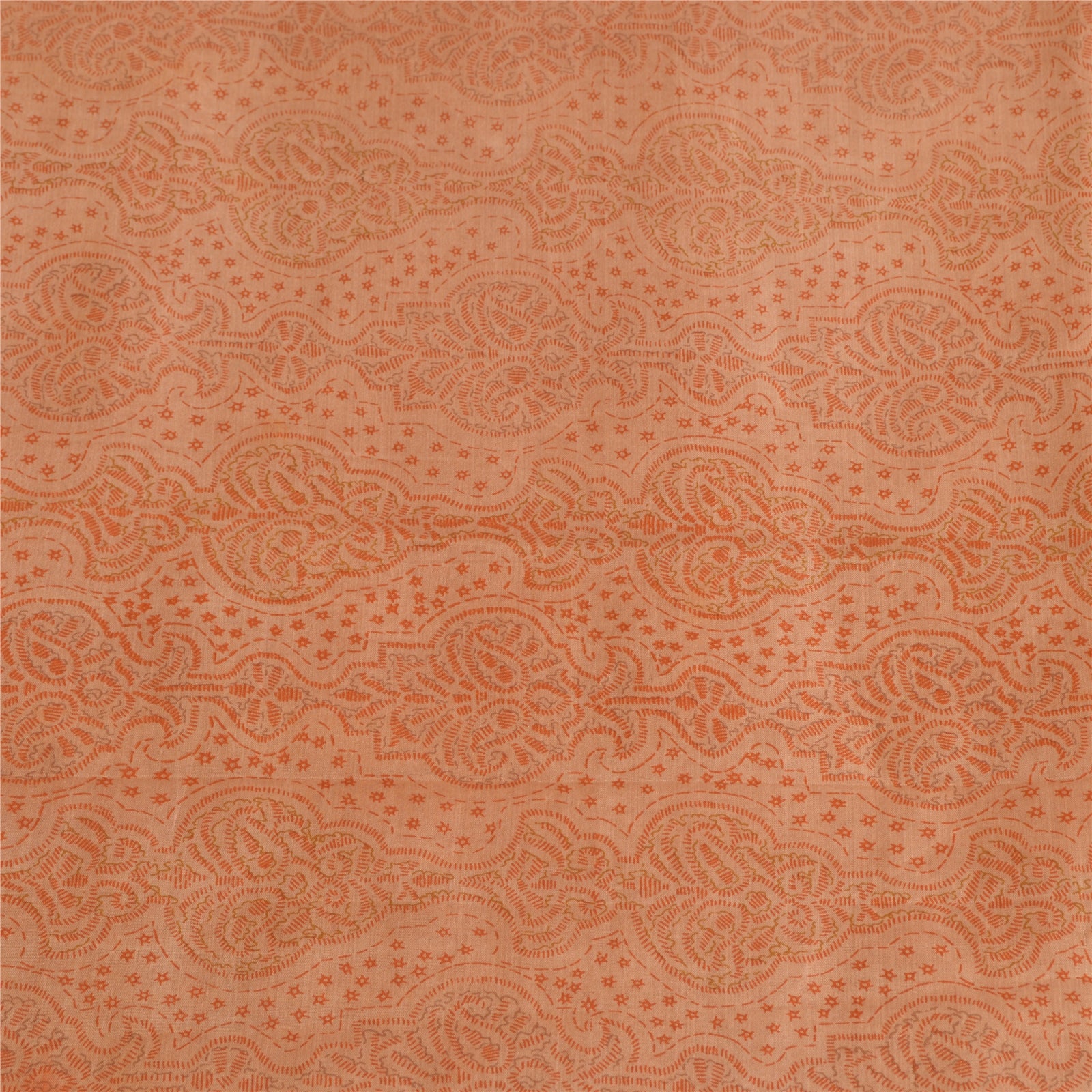Sanskriti Vintage Sarees Peach/Orange Pure Silk Printed Sari 5yd Craft Sustainable Fabric