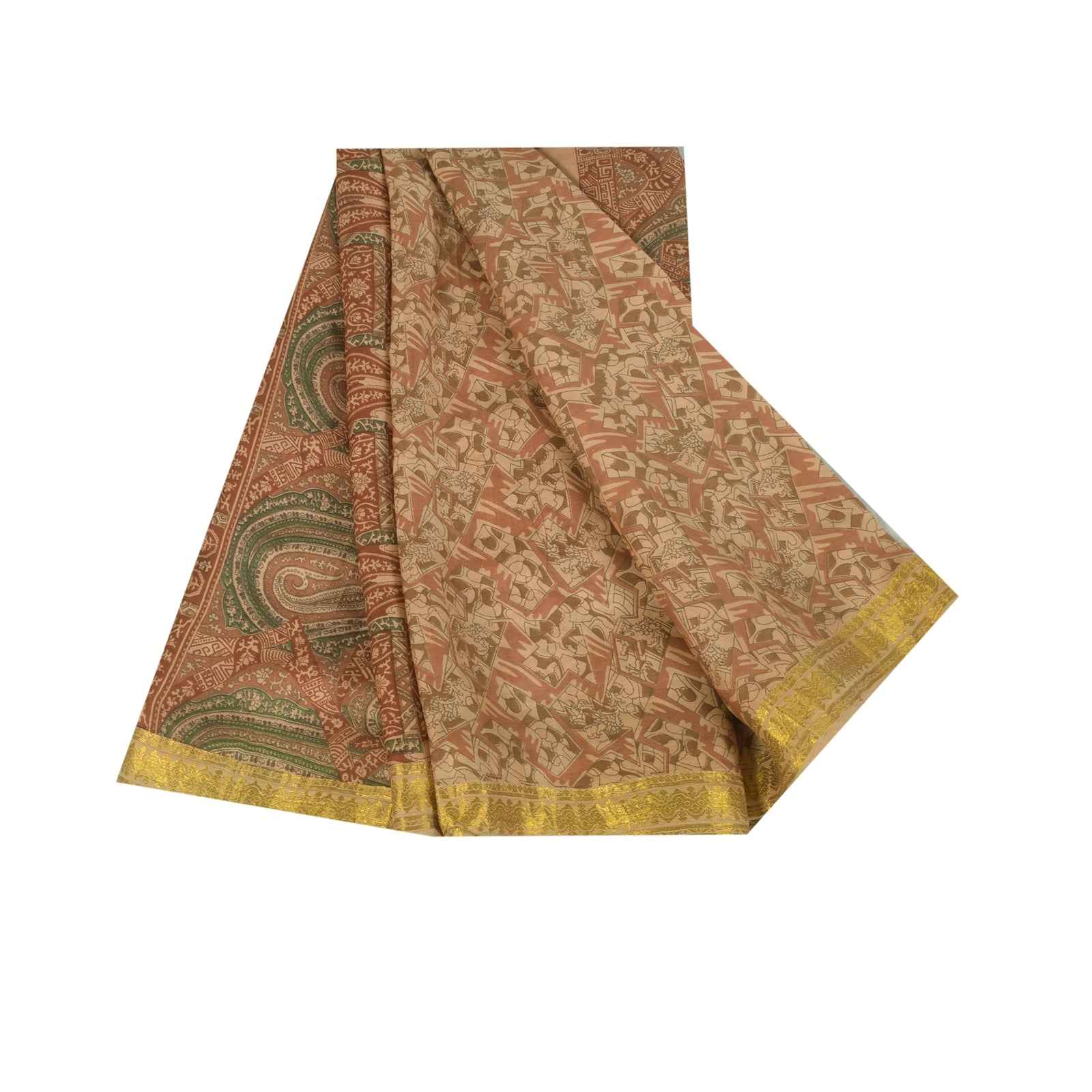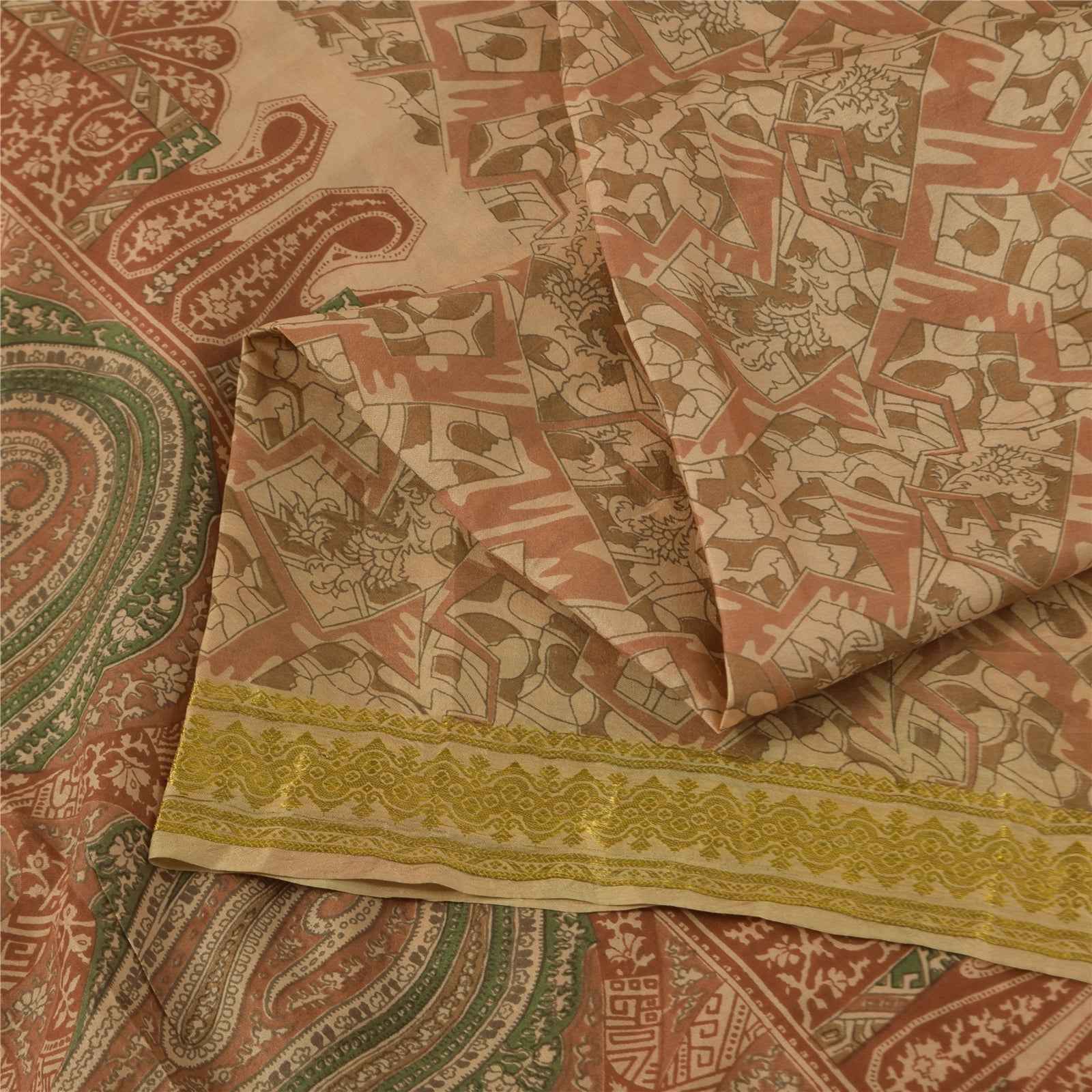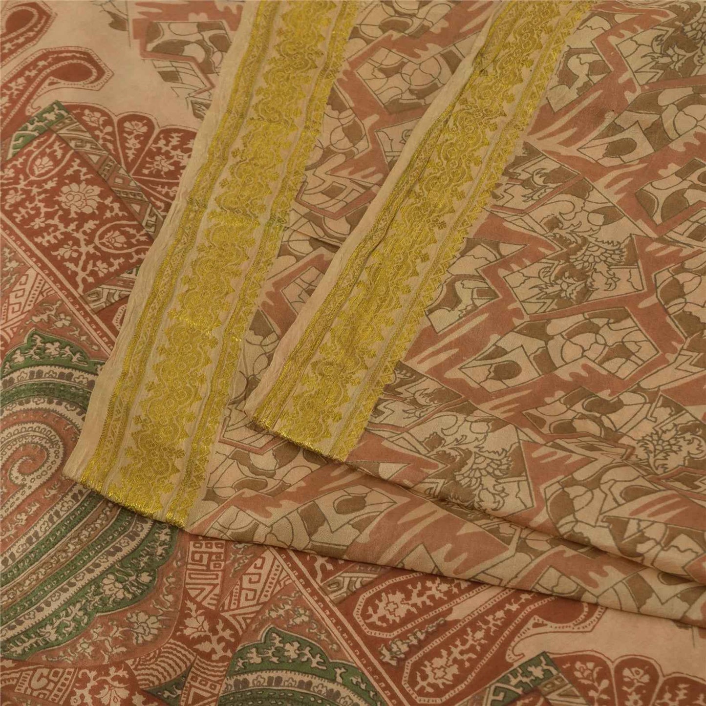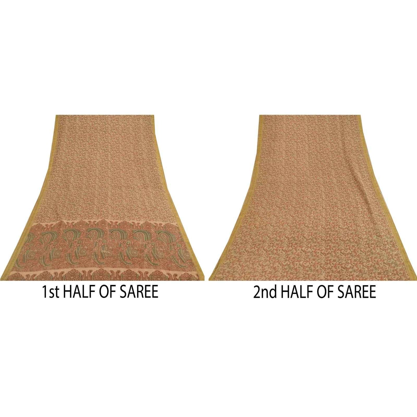 THE ITEM COLOR OR SHADE MAY BE DARKER OR LIGHTER THAN THE PICTURE.' • Beautiful peach colored printed pure silk saree . • Pallu & Border has printed floral design & golden zari woven work. • Abstract design in center part of sari . This unique vintage saree can be used for various crafting ideas even if you don't want to use it as a sari. Design a dress, use it as a as window dressing, upholstery, sarongs, throw, dress making and table linen much more. Let your creative juices flow and use this decorated fabric in multiple fashion. International buyers please note: Import duties, taxes, and charges are not included in the item price or postage cost. These charges are the buyer's responsibility. Please check with your country's customs office to determine what these additional costs will be prior to bidding or buying.Buyer will pay custom duty/tax. It is calculated and charged differently by every country. As a seller I do not have any control over it. VAT or sales tax is calculated by the platform at the time of checkout. Customs charge is payable at the time of delivery. PR-70065