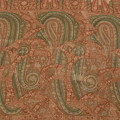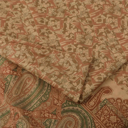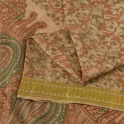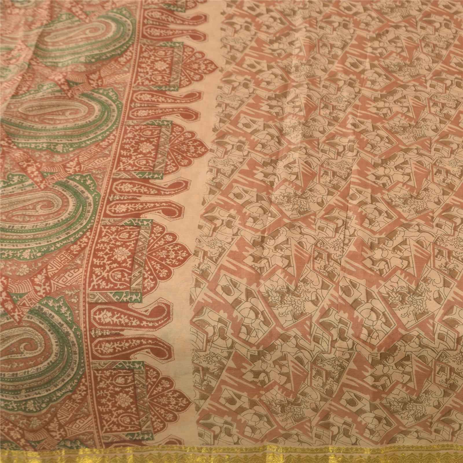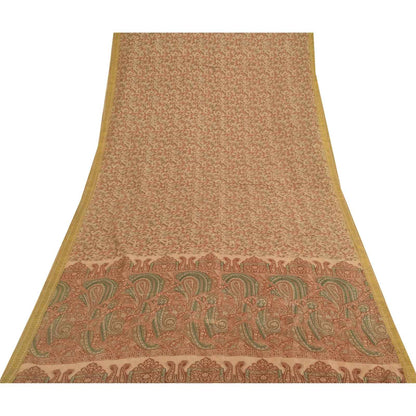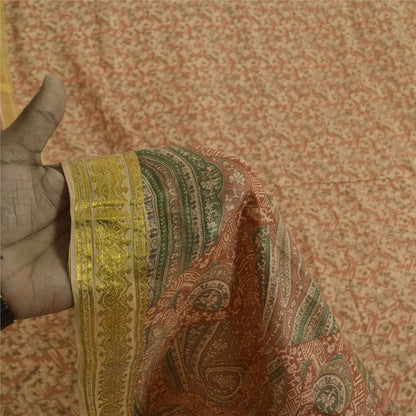 Sanskriti Vintage Sarees Peach Pure Silk Zari Border Printed Sari 5+yd Fabric
