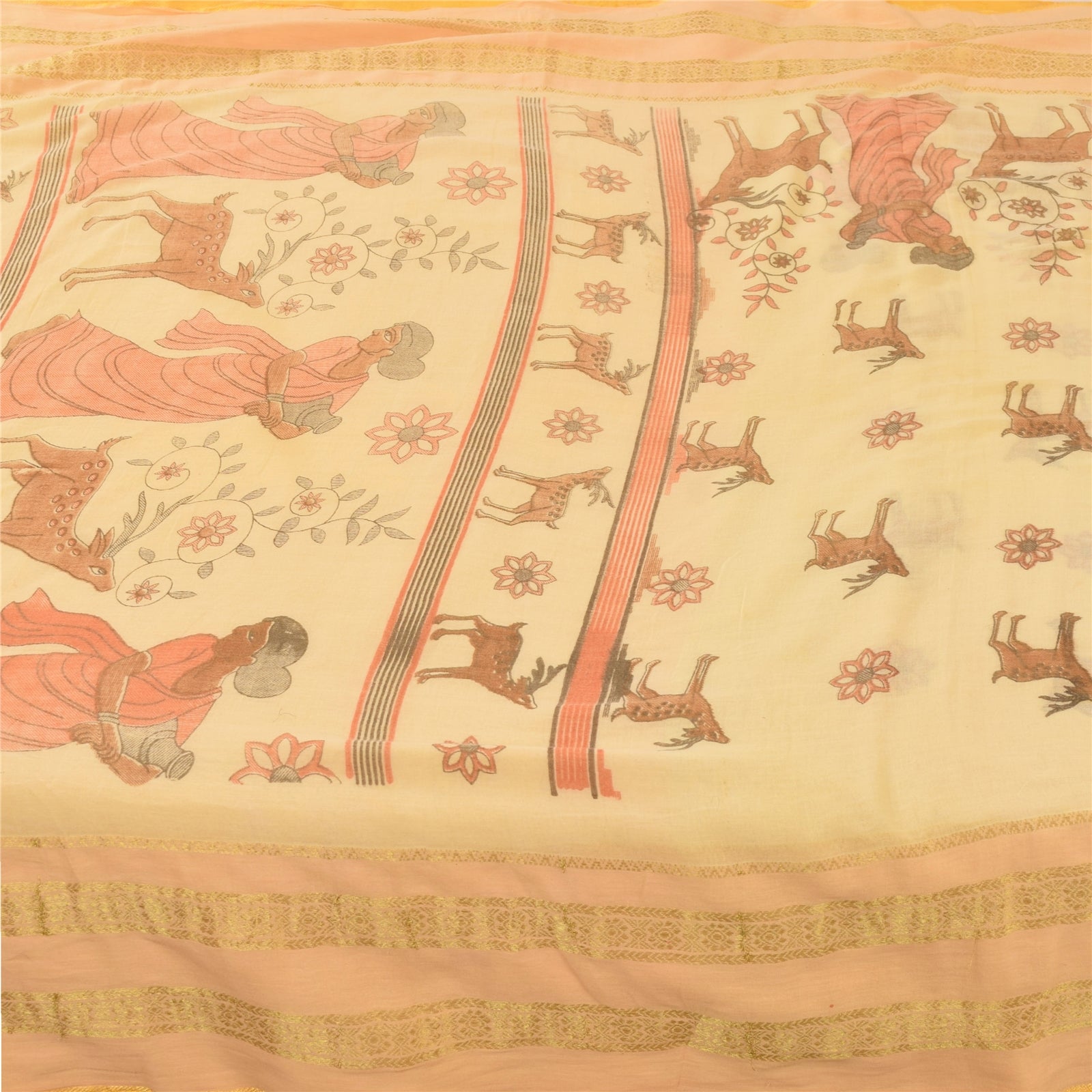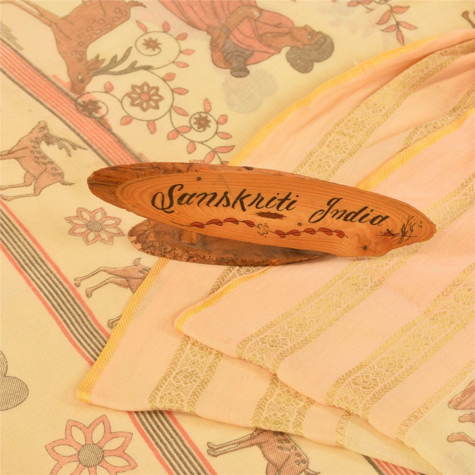 Sanskriti Vintage Sarees Peach Women Deer Pure Cotton Printed Sari 5+yd Fabric