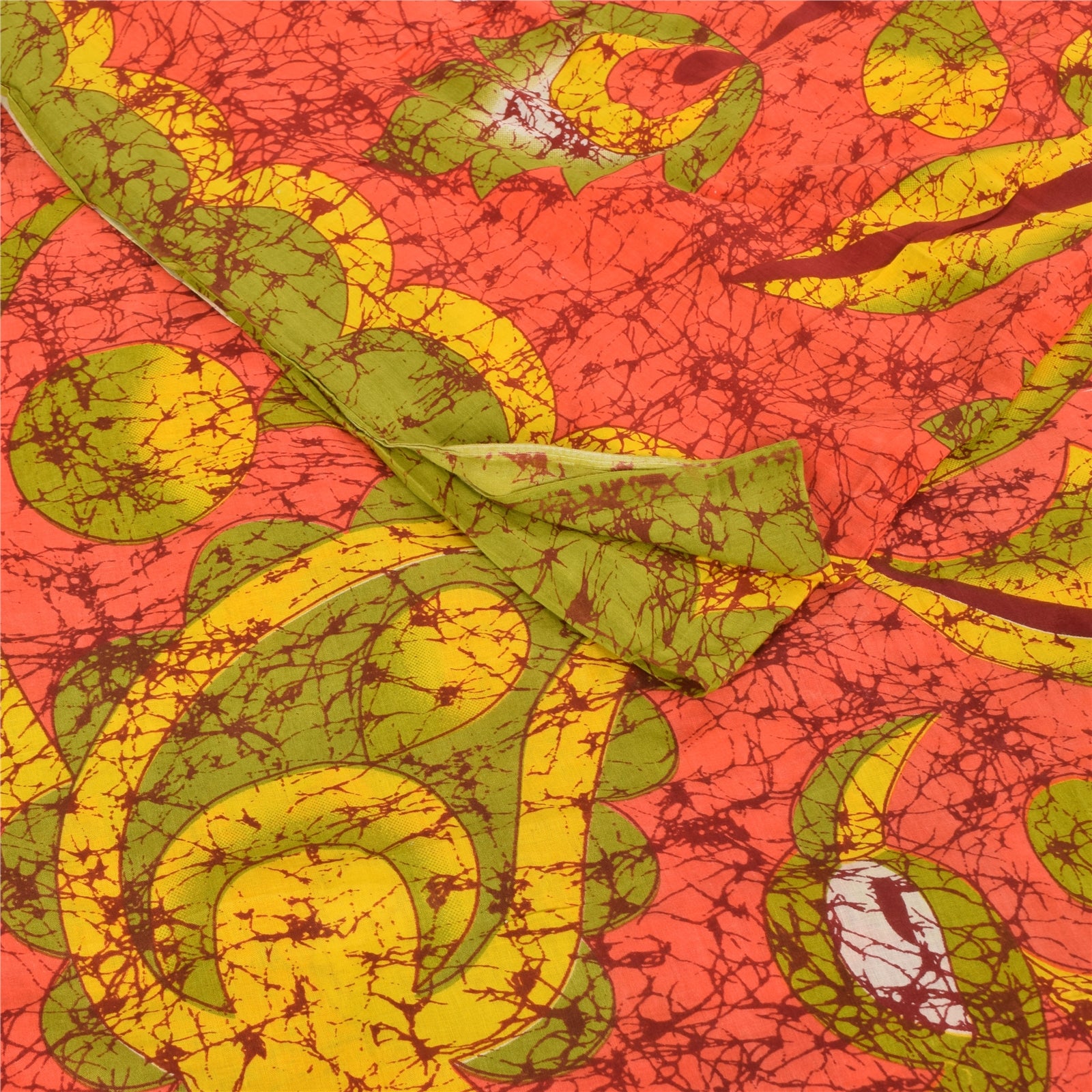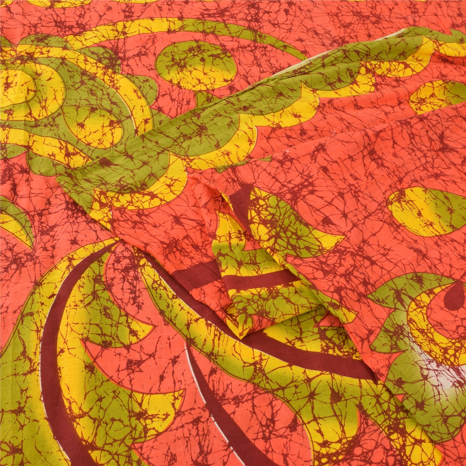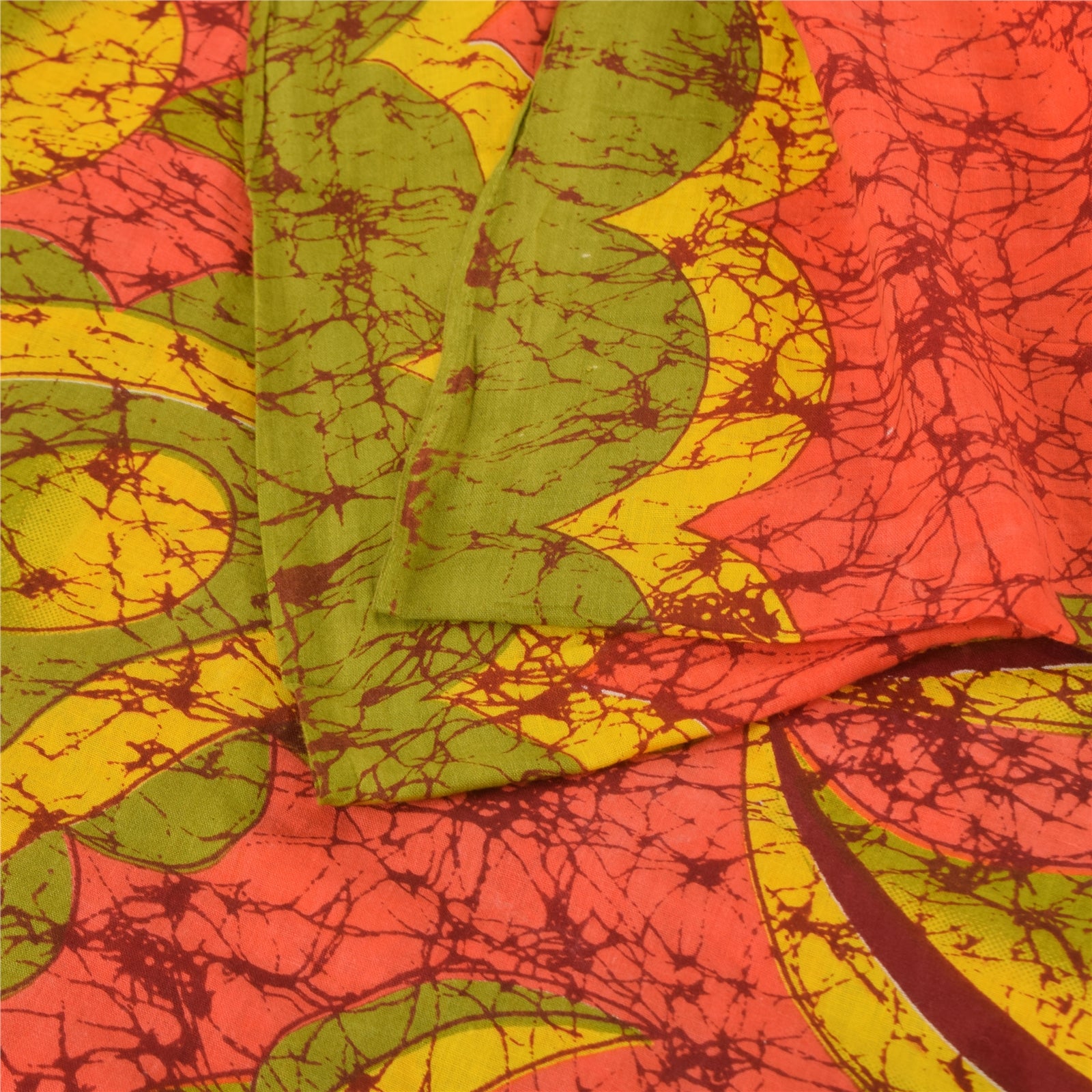 Sanskriti Vintage Sarees Pink Batik Printed Pure Cotton Sari 5yd Craft Sustainable Fabric