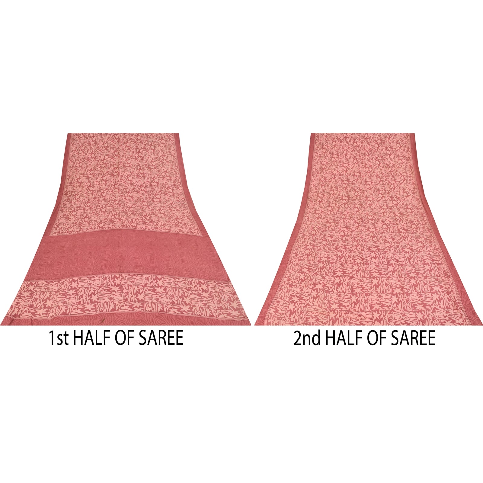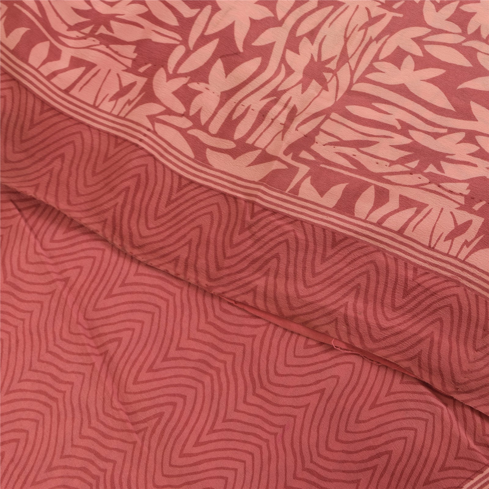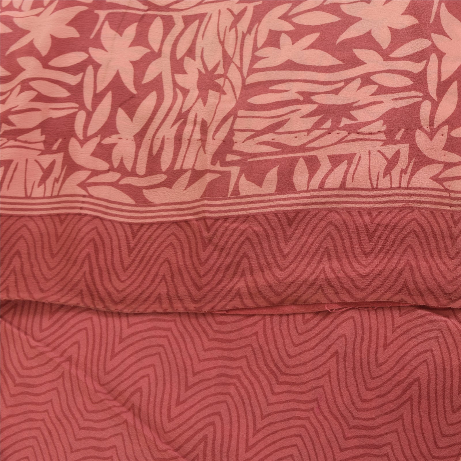 Sanskriti Vintage Sarees Pink Pure Crepe Silk Printed Sari 5+yd Craft Fabric