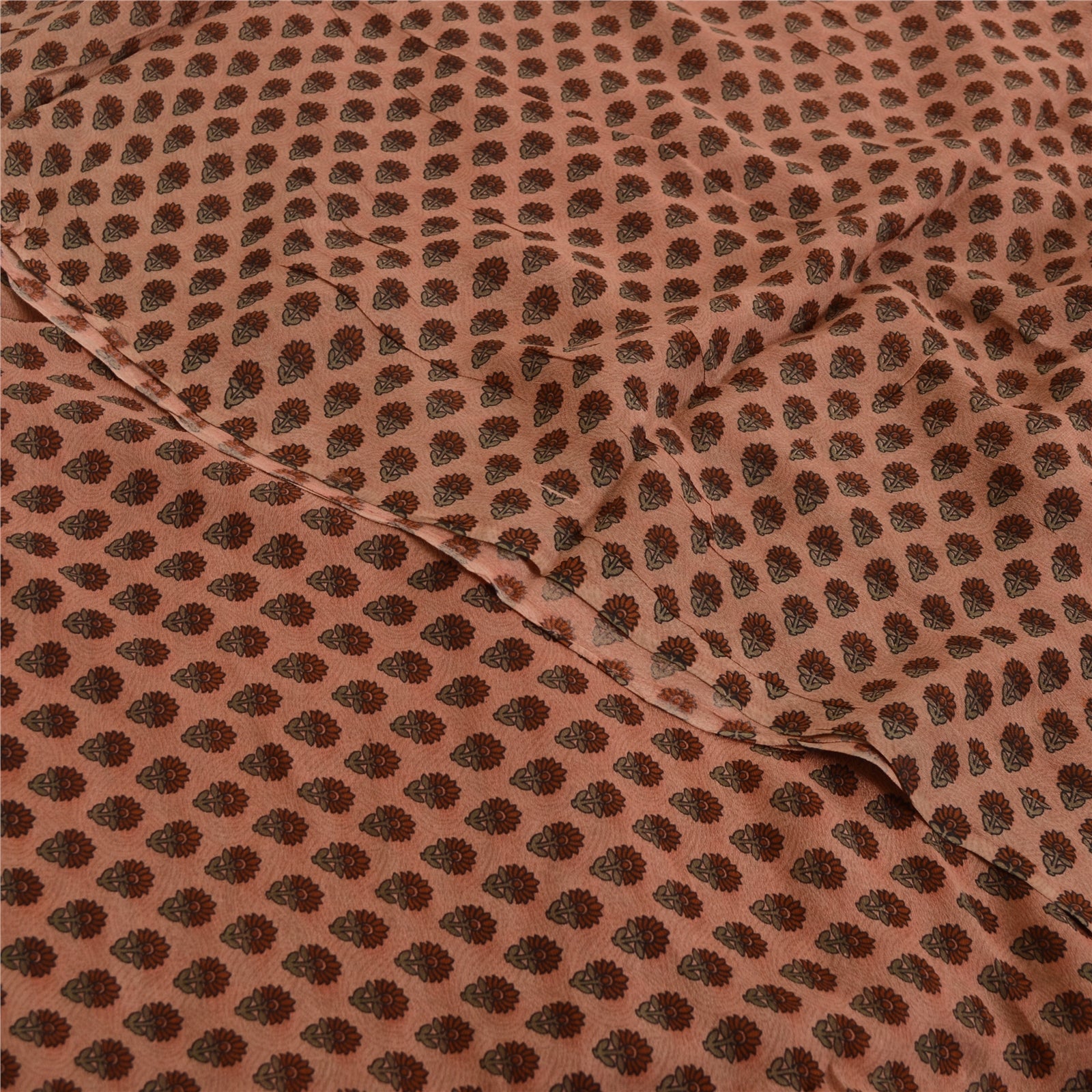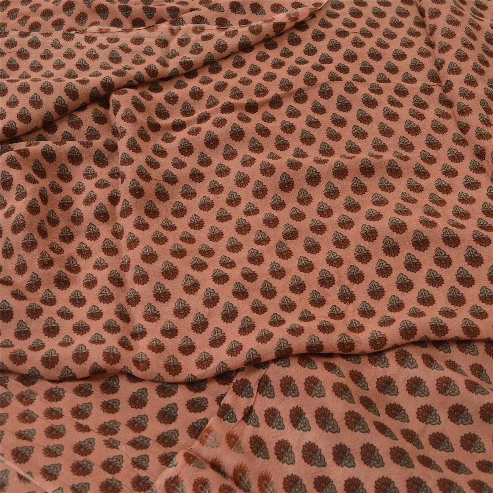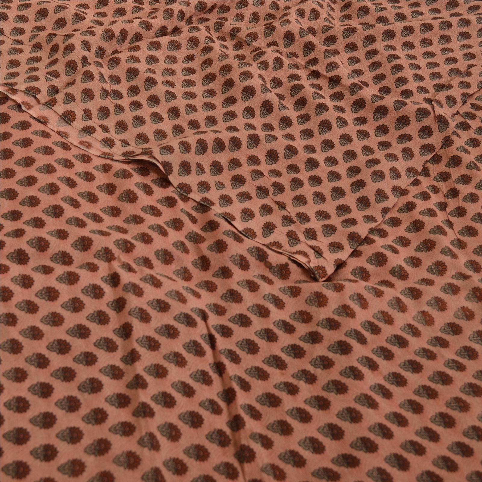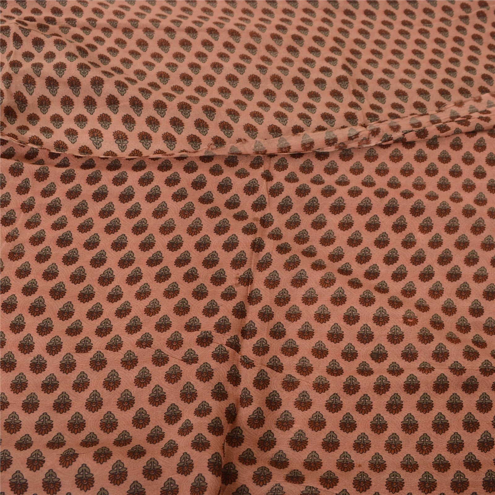 Sanskriti Vintage Sarees Pink Pure Georgette Paisley Print Sari 5yd Craft Fabric