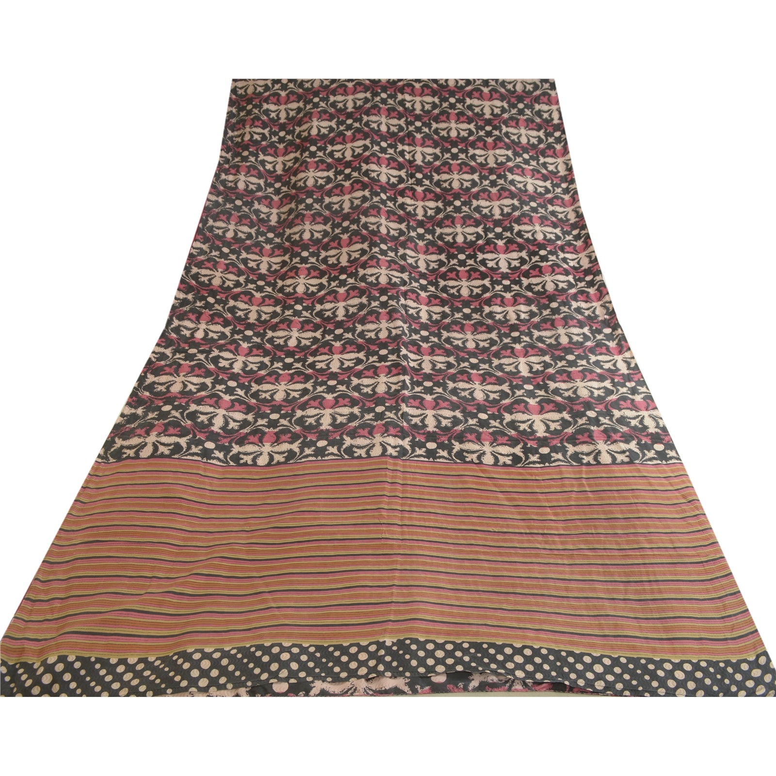 THE ITEM COLOR OR SHADE MAY BE DARKER OR LIGHTER THAN THE PICTURE.' Beautiful black colored pure silk printed saree. Pallu has printed lines design. Floral design in center part of saree. What is special about this saree? Fabulous design is really enhancing the beauty of the saree.This unique vintage saree can be used for various crafting ideas even if you don't want to use it as a sari. Design a dress, use it as window, dressing, upholstery, sarongs, throw, dress making and table linen much more. Let your creative juices flow and use this decorated Sustainable Fabric in multiple fashion. International buyers please note: Import duties, taxes, and charges are not included in the item price or postage cost. These charges are the buyer's responsibility. Please check with your country's customs office to determine what these additional costs will be prior to bidding or buying. Buyer will pay custom duty/tax. It is calculated and charged differently by every country. As a seller I do not have any control over it. VAT or sales tax is calculated by the platform at the time of checkout. Customs charge is payable at the time of delivery.'