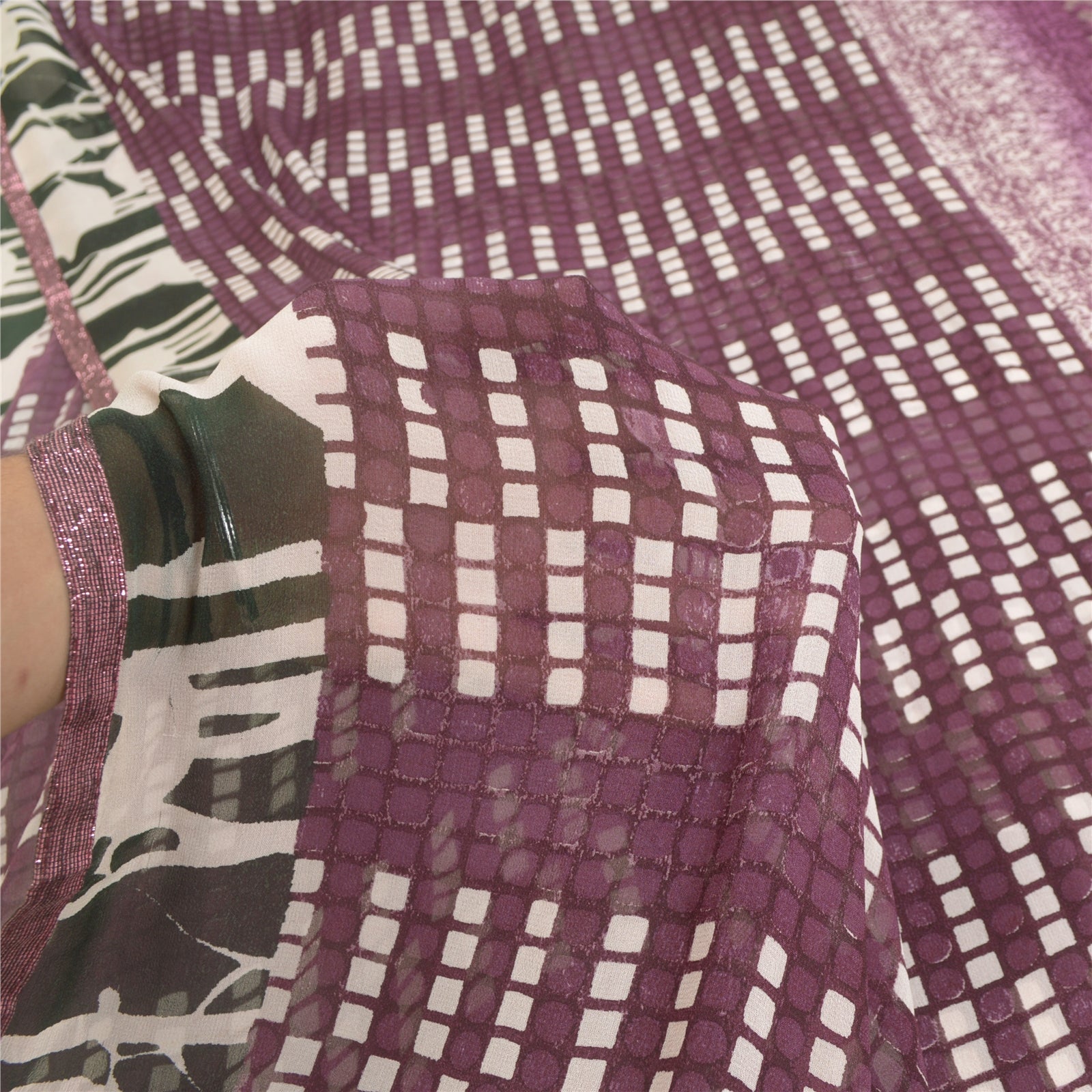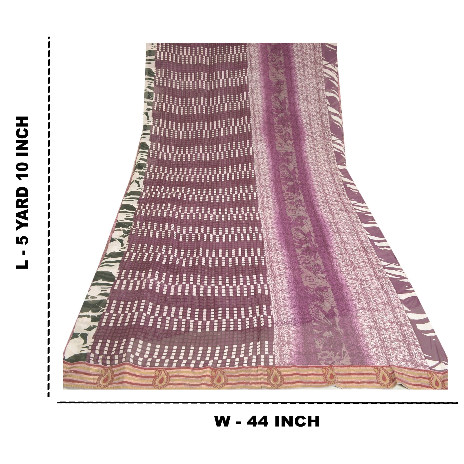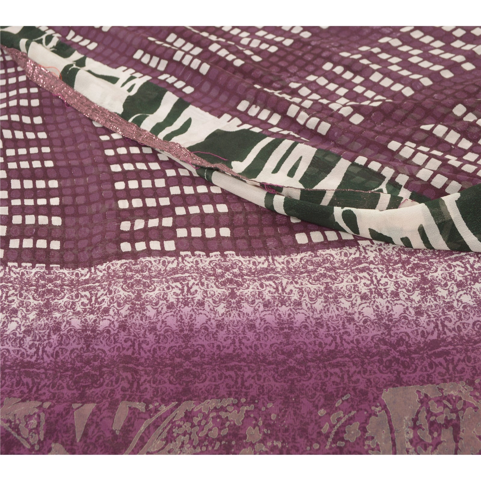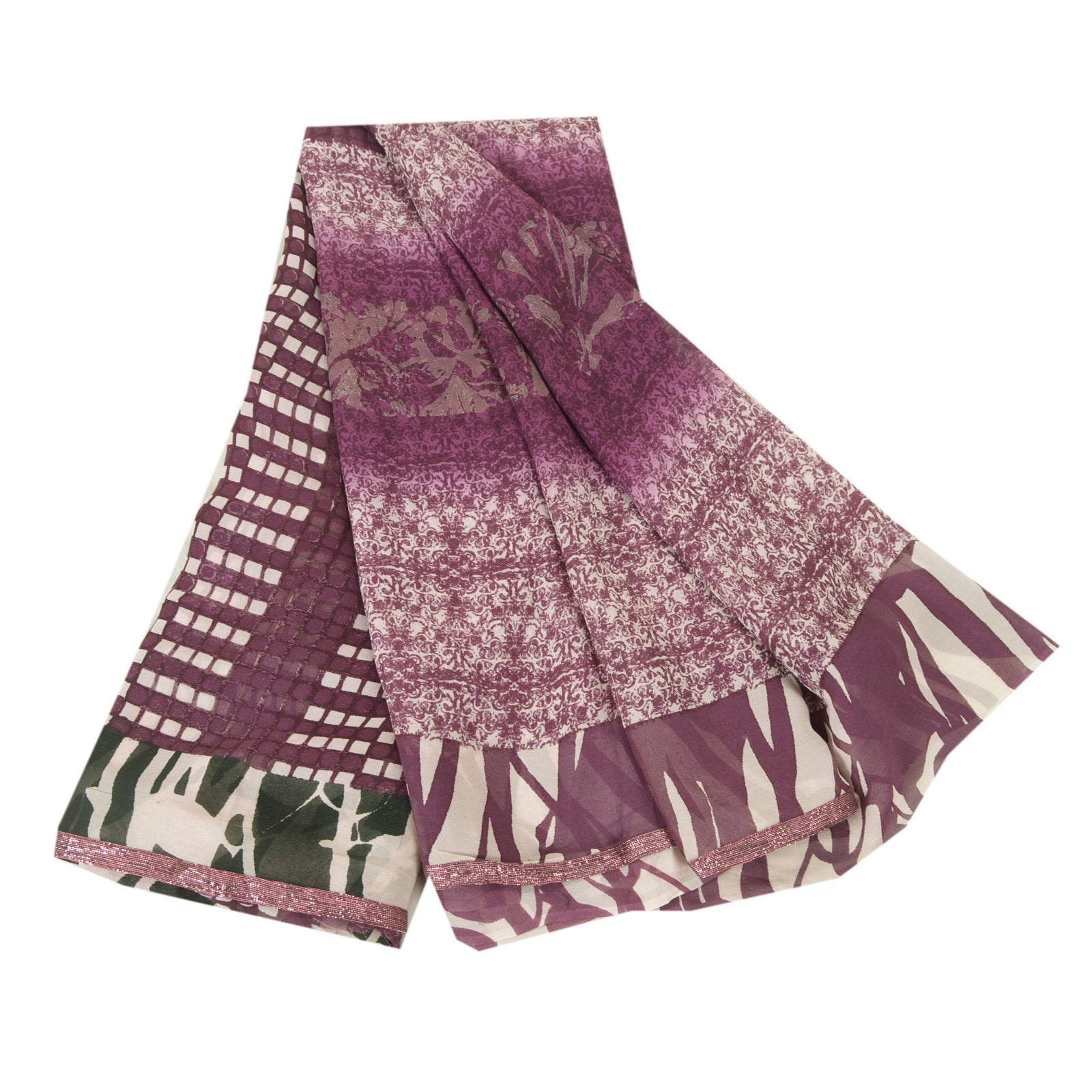 Sanskriti Vintage Sarees Purple Printed Pure Georgette Silk Sari Craft Sustainable Fabric