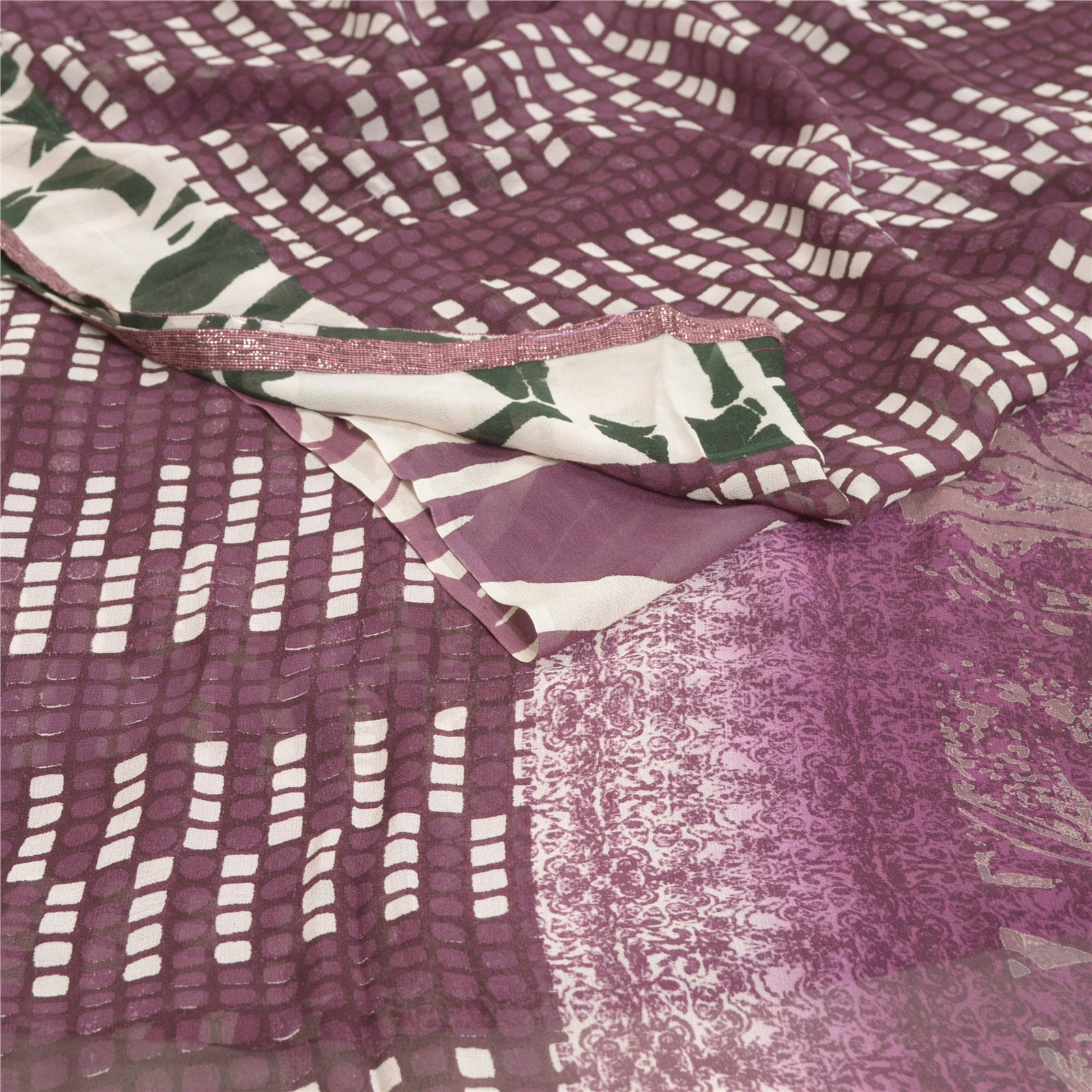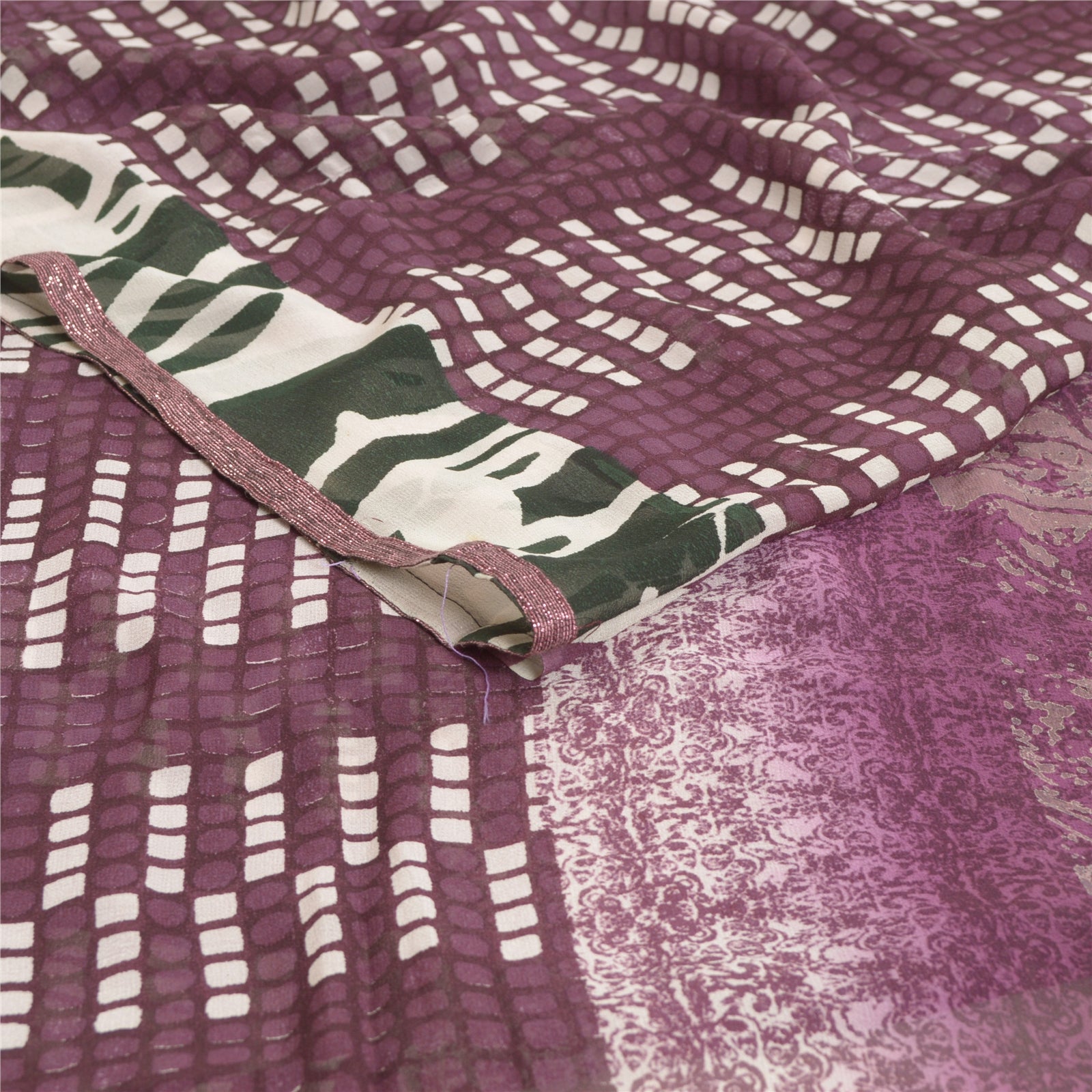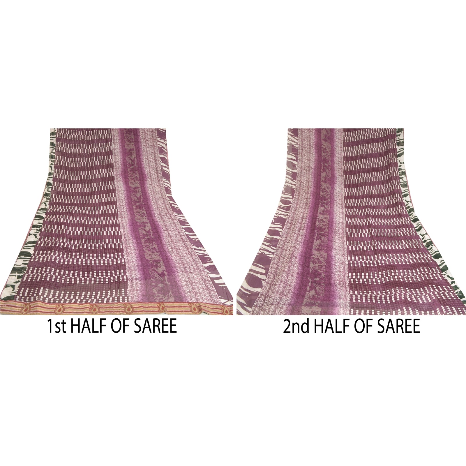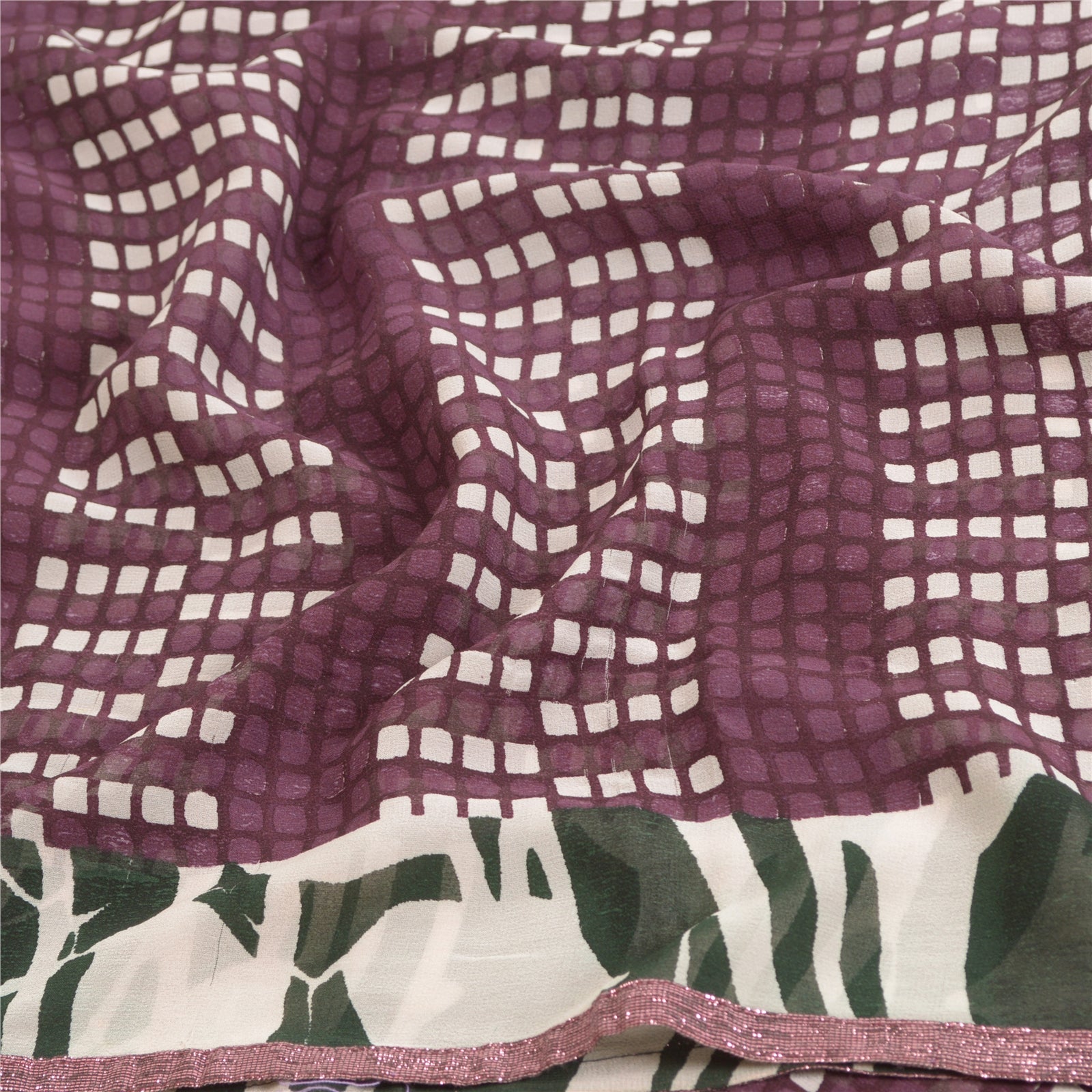 Sanskriti Vintage Sarees Purple Printed Pure Georgette Silk Sari Craft Sustainable Fabric