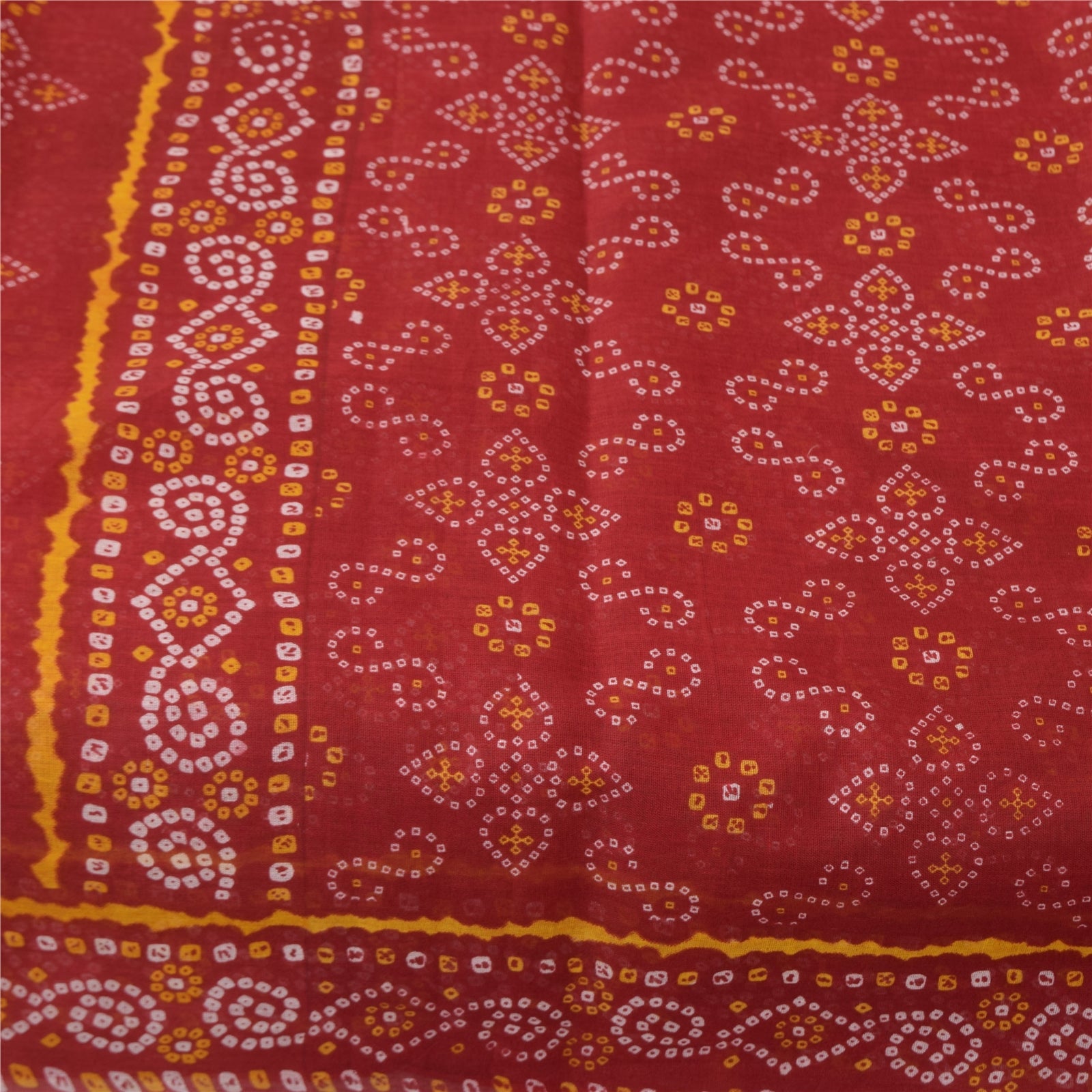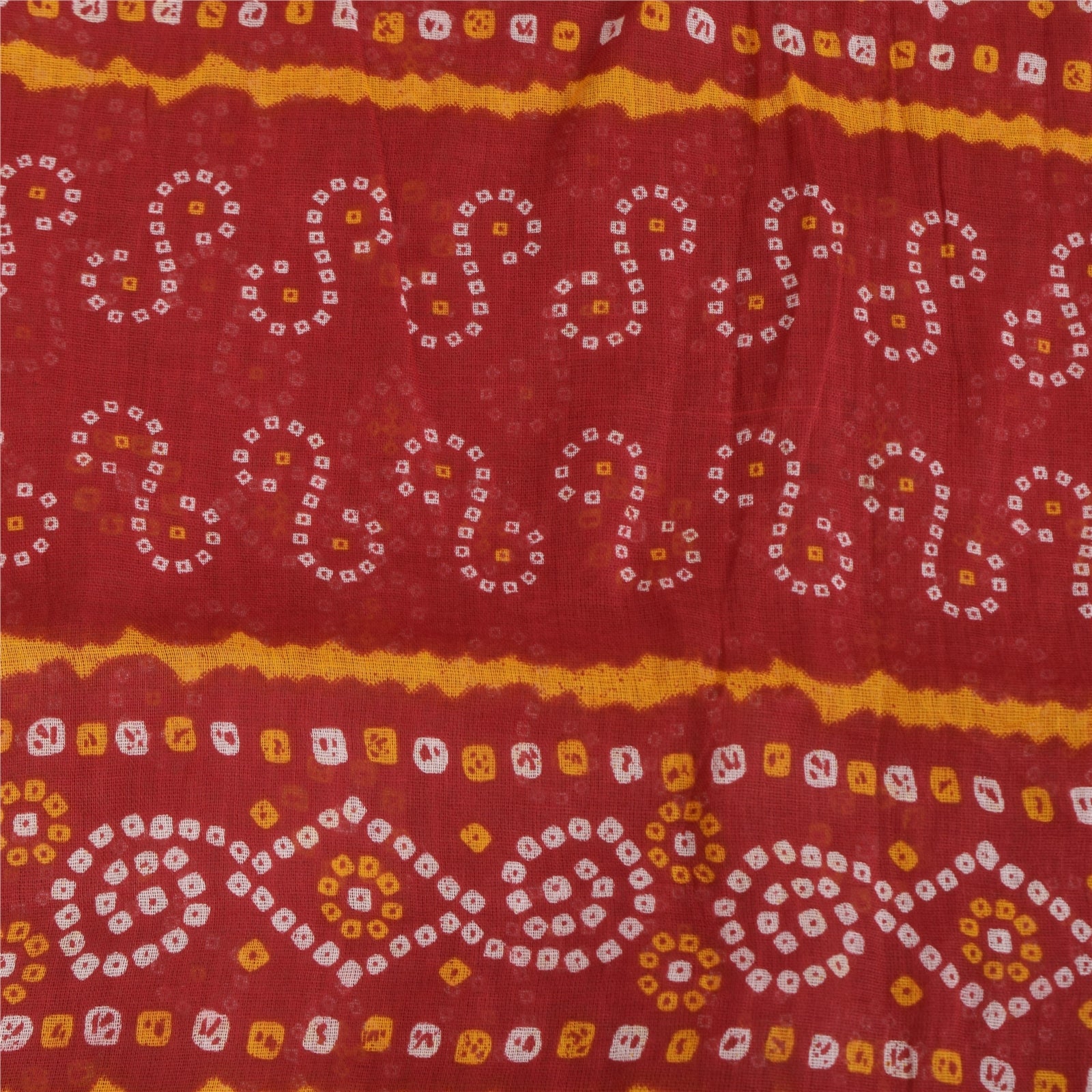 Sanskriti Vintage Sarees Red Bandhani Printed Pure Cotton Sari 5+yd Craft Sustainable Fabric