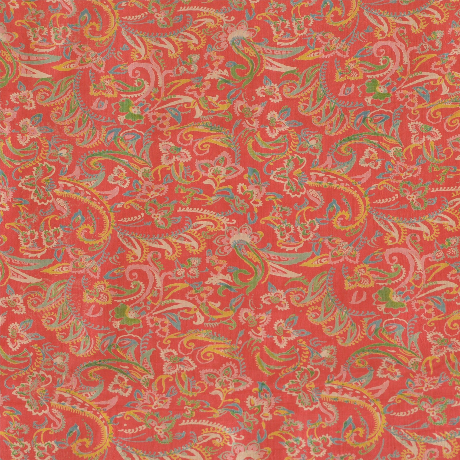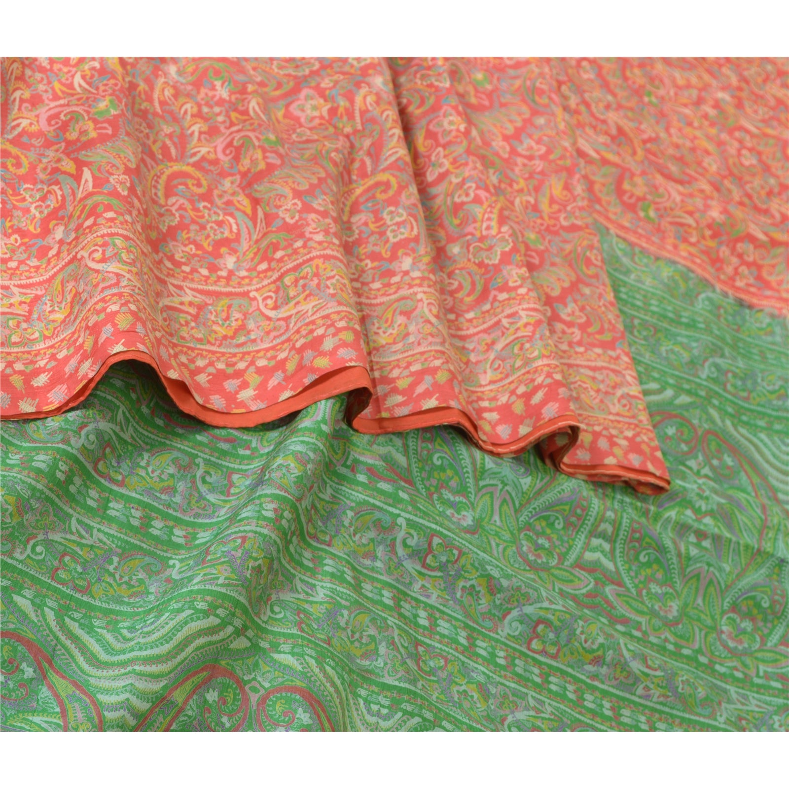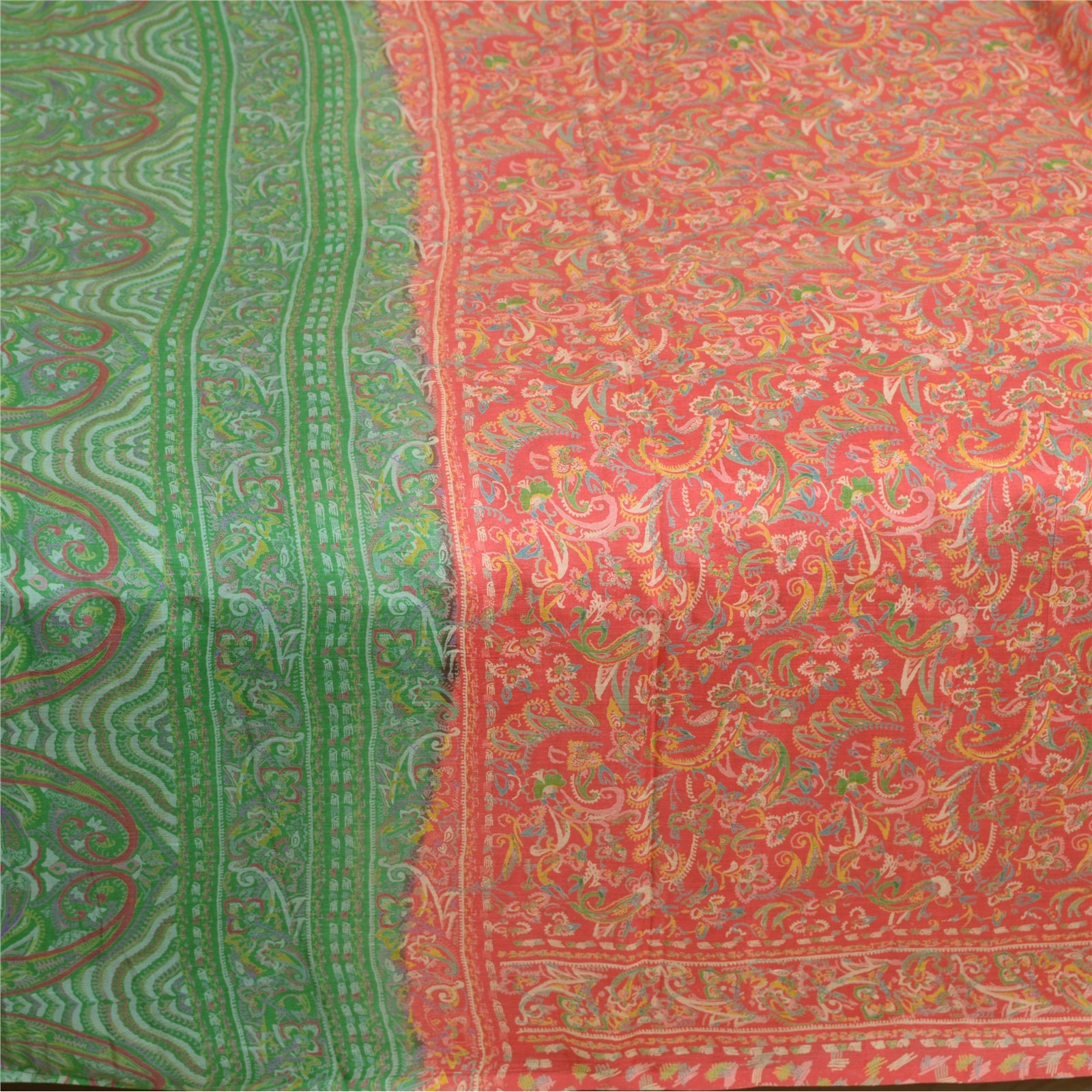 Sanskriti Vintage Sarees Red/Green Pure Silk Printed Sari Floral Craft Sustainable Fabric