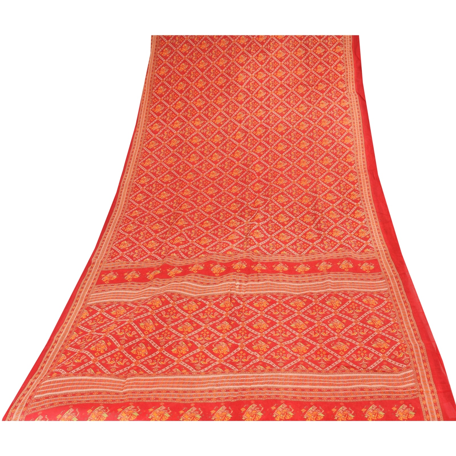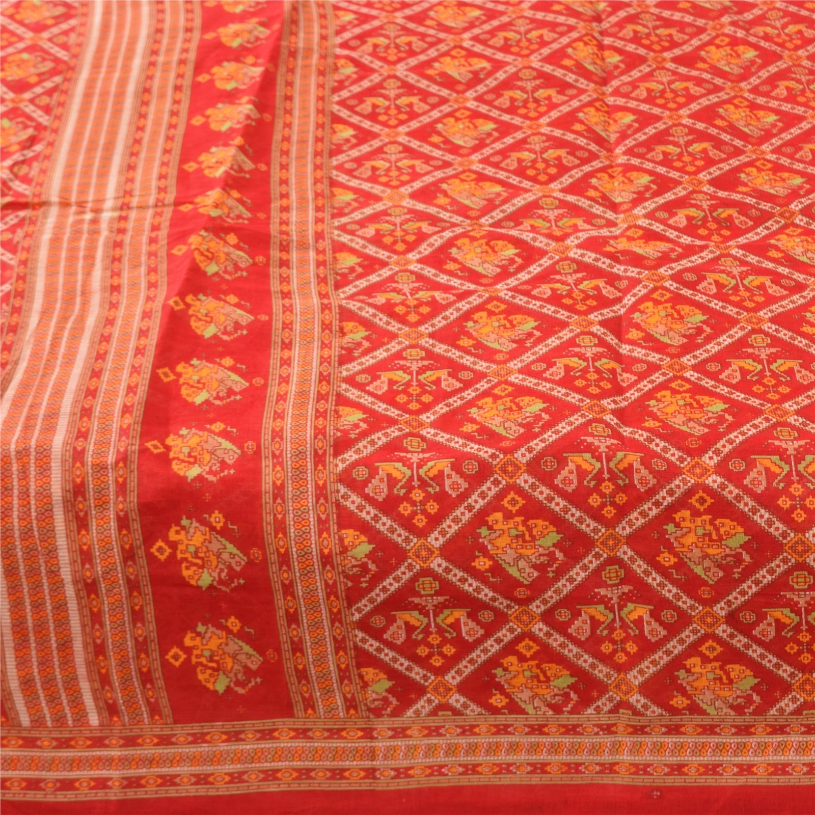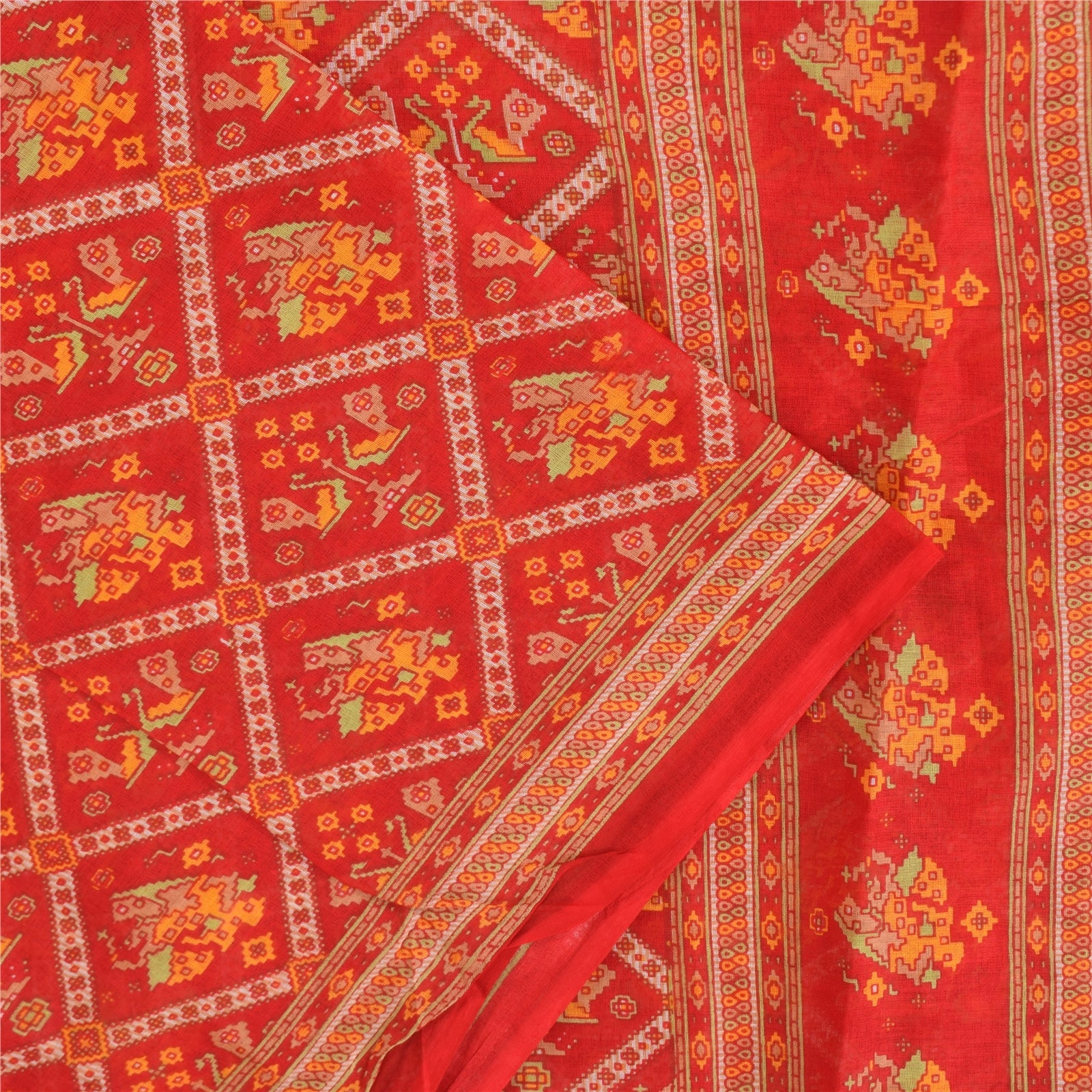 Sanskriti Vintage Sarees Red Patan Patola Pure Cotton Printed Sari 5+yd Sustainable Fabric