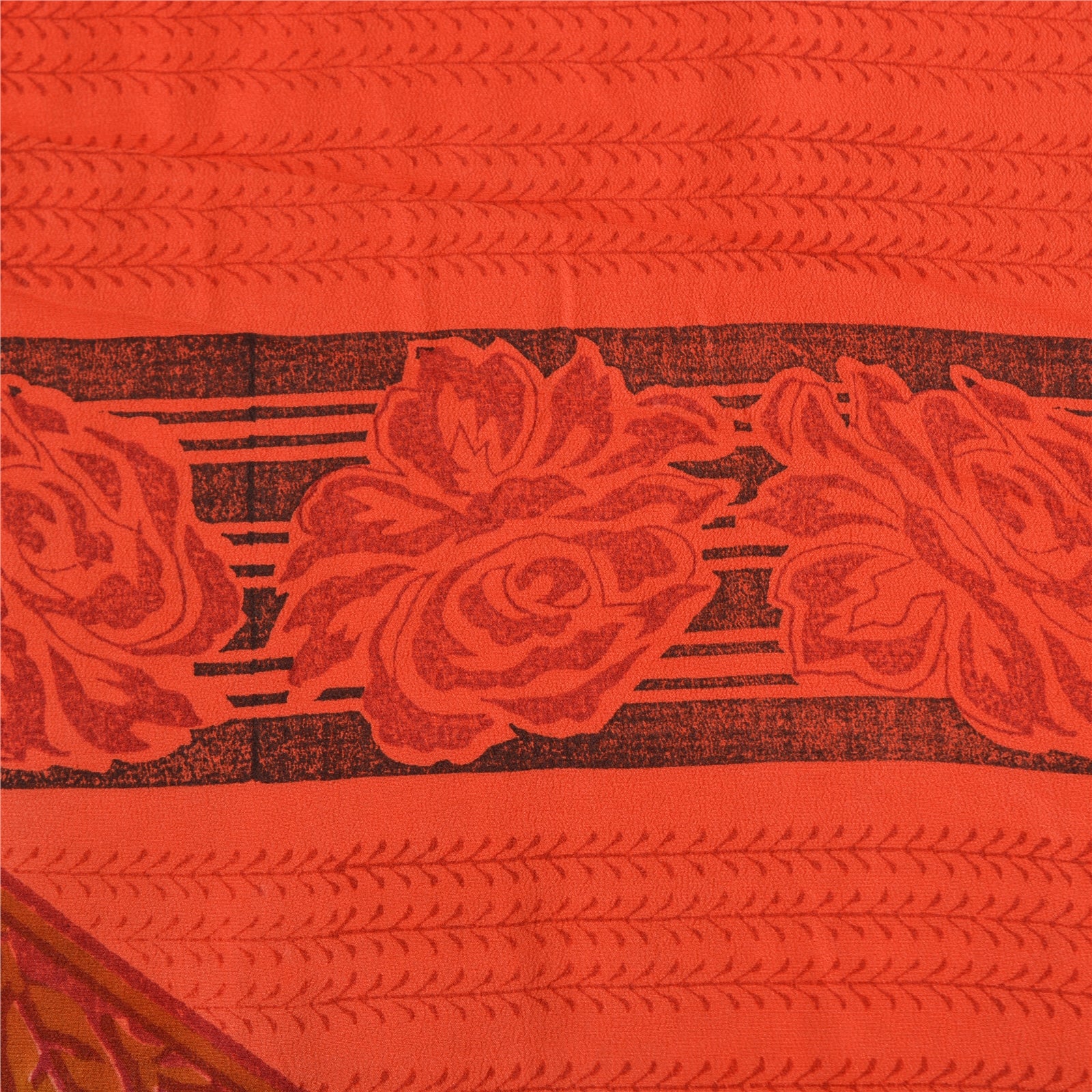 Sanskriti Vintage Sarees Red/Peach Pure Crepe Silk Printed Sari 5yd Craft Sustainable Fabric