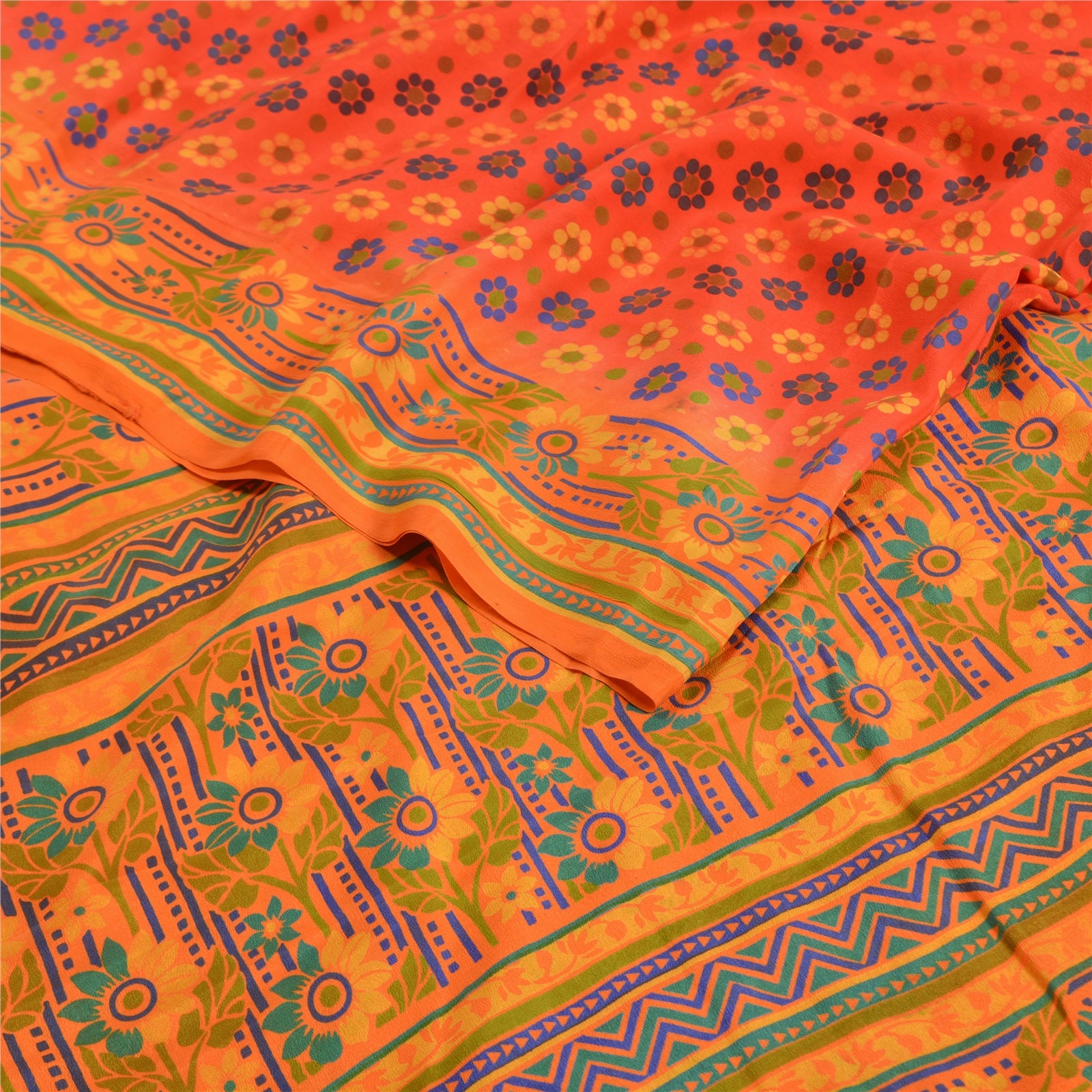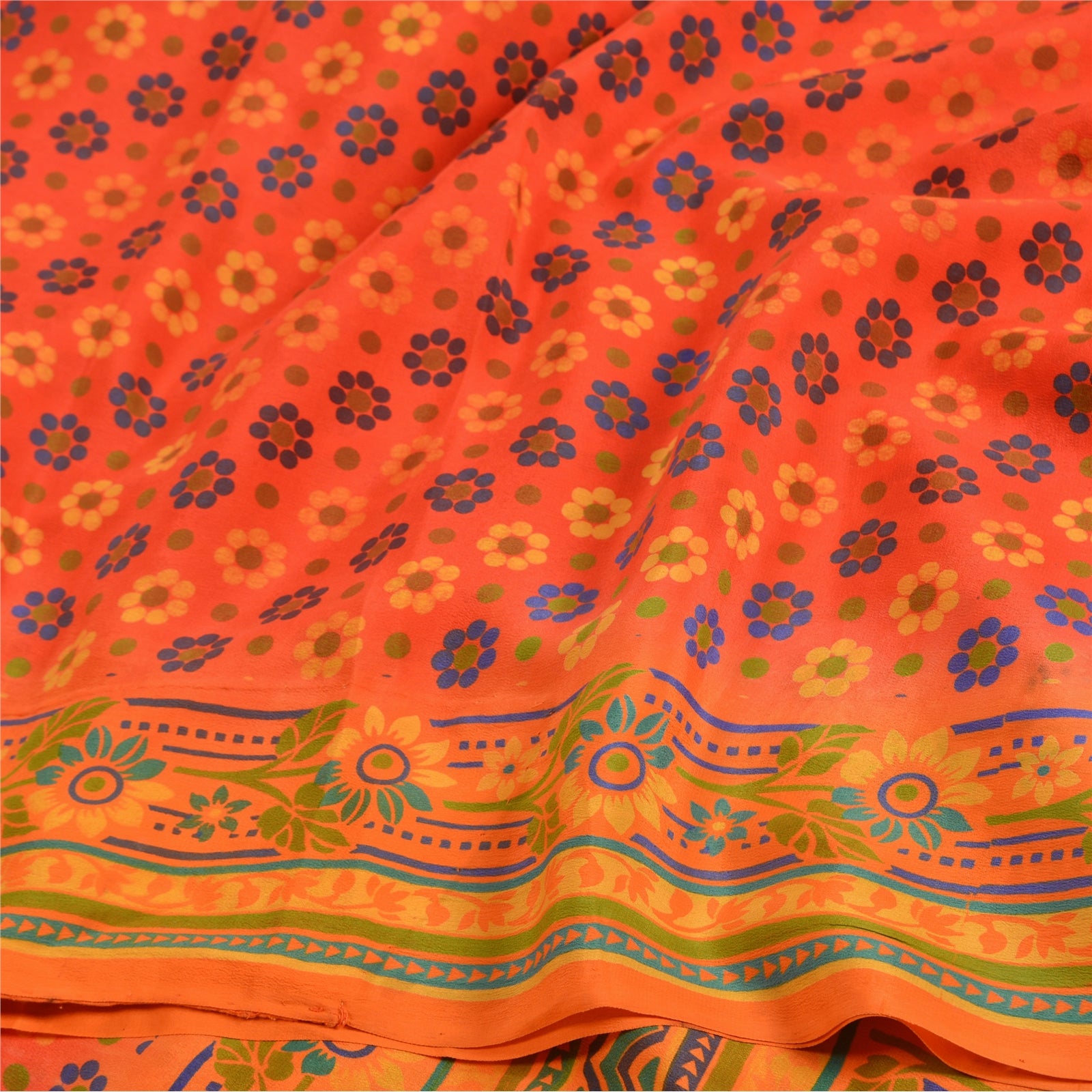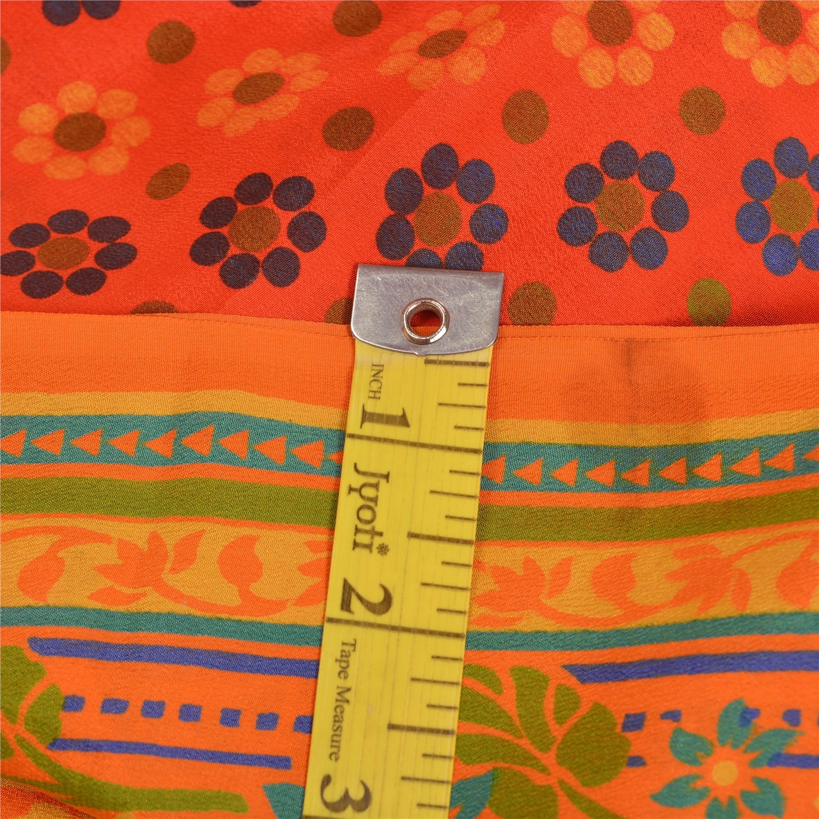 Sanskriti Vintage Sarees Red Printed Indian Pure Crepe Silk Sari Craft Sustainable Fabric