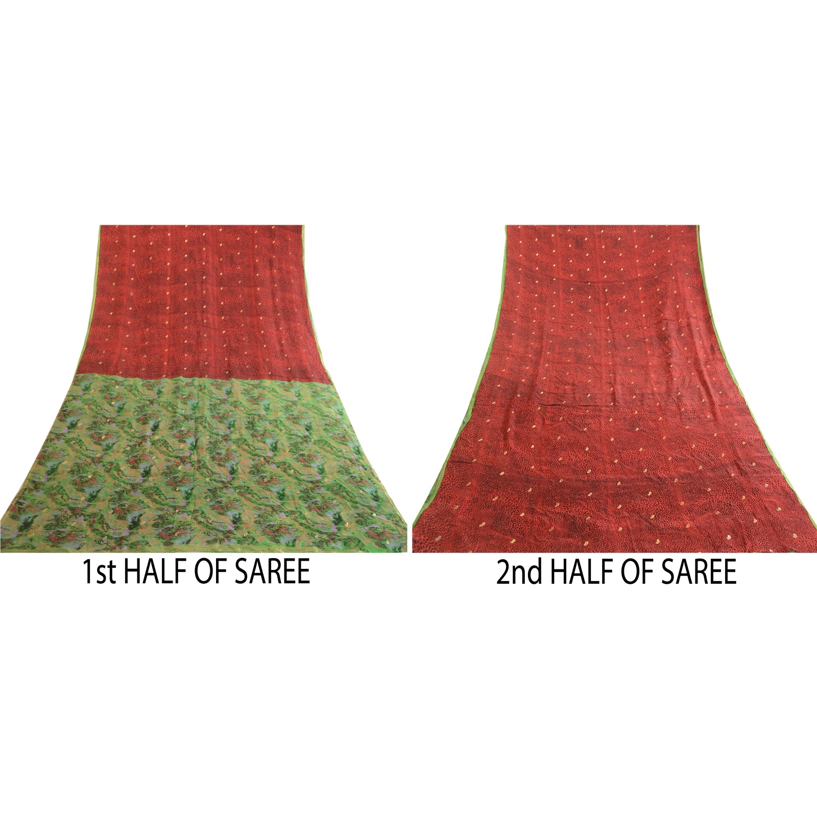 THE ITEM COLOR OR SHADE MAY BE DARKER OR LIGHTER THAN THE PICTURE.' Beautiful red & green colored pure chinon silk printed & woven saree. Pallu & Border has printed floral design. Abstract design in cente part of saree. Also you can see golden woven work allover the saree. What is special about this saree? Fabulous design is really enhancing the beauty of the saree.This unique vintage saree can be used for various crafting ideas even if you don't want to use it as a sari. Design a dress, use it as window,dressing, upholstery, sarongs, throw, dress making and table linen much more. Let your creative juices flow and use this decorated Sustainable Fabric in multiple fashion.. International buyers please note: Import duties, taxes, and charges are not included in the item price or postage cost. These charges are the buyer's responsibility. Please check with your country's customs office to determine what these additional costs will be prior to bidding or buying. Buyer will pay custom duty/tax. It is calculated and charged differently by every country. As a seller I do not have any control over it. VAT or sales tax is calculated by the platform at the time of checkout. Customs charge is payable at the time of delivery.'