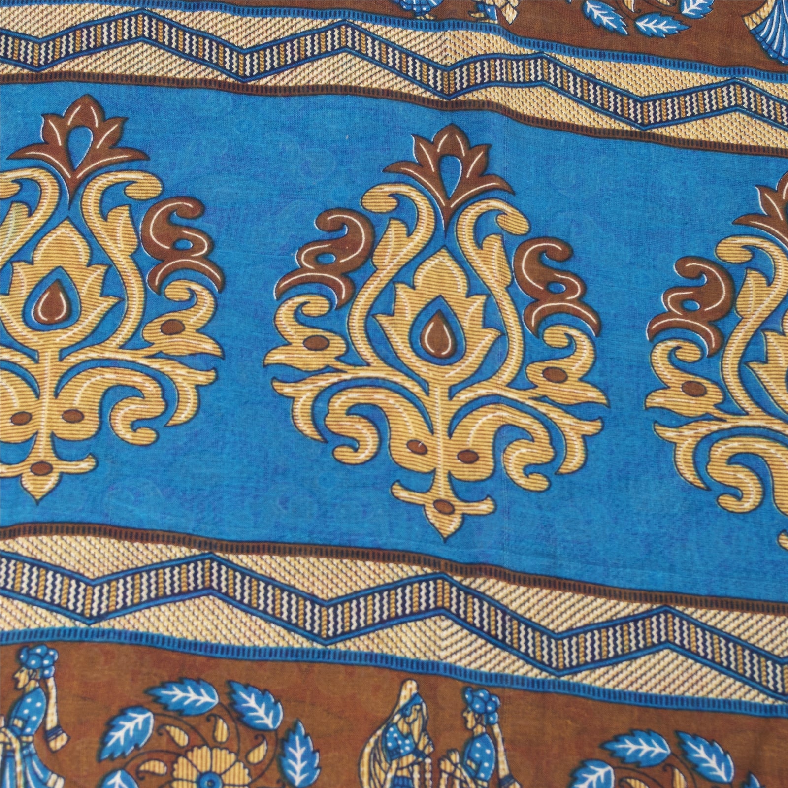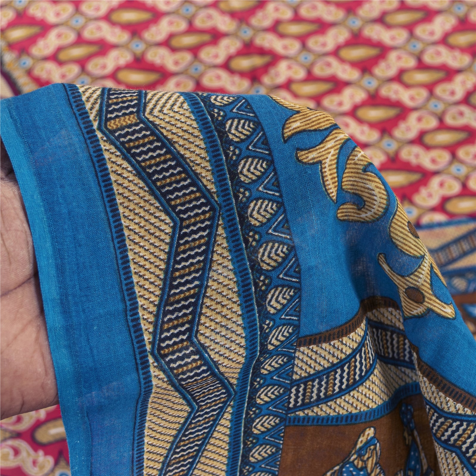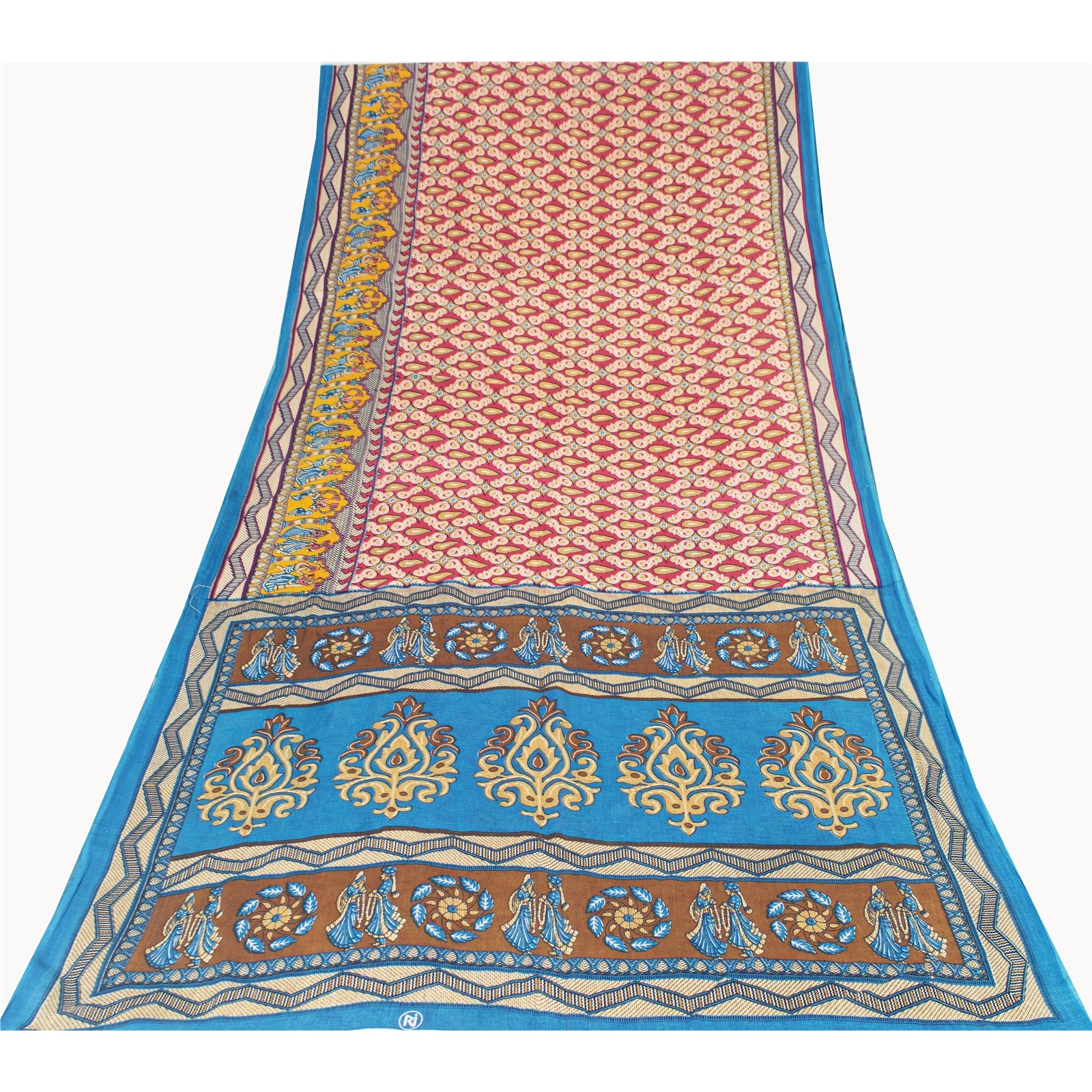 Sanskriti Vintage Sarees Red Pure Cotton Human Printed Sari 5+yd Craft Fabric