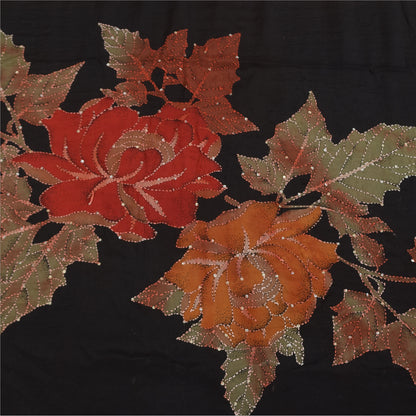Sanskriti Vintage Sarees Tie-Dye Hand Beaded Kantha Pure Crepe Print Sari Sustainable Fabric