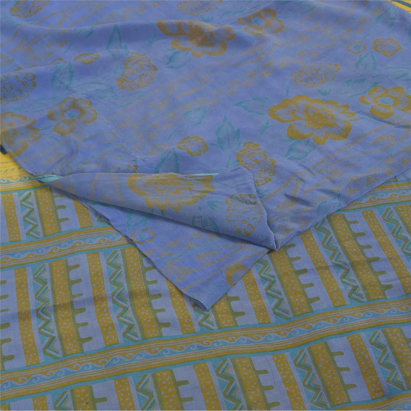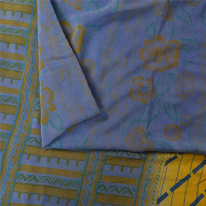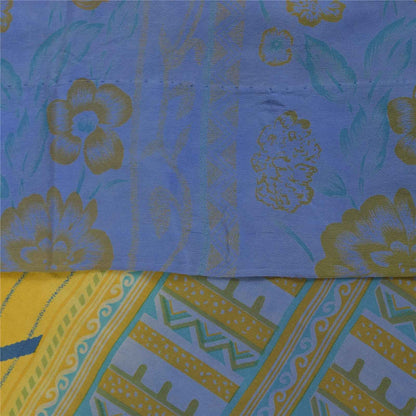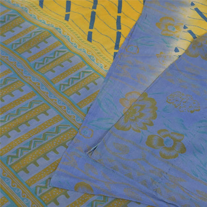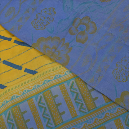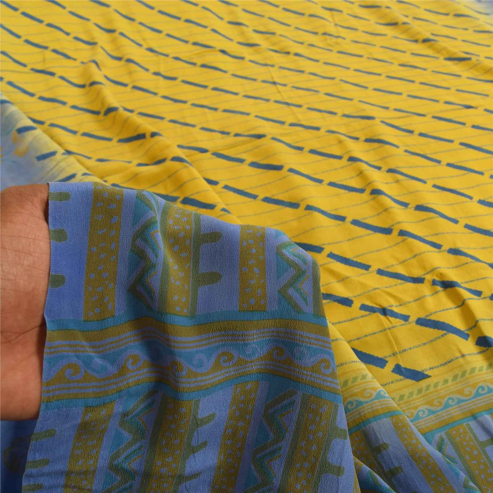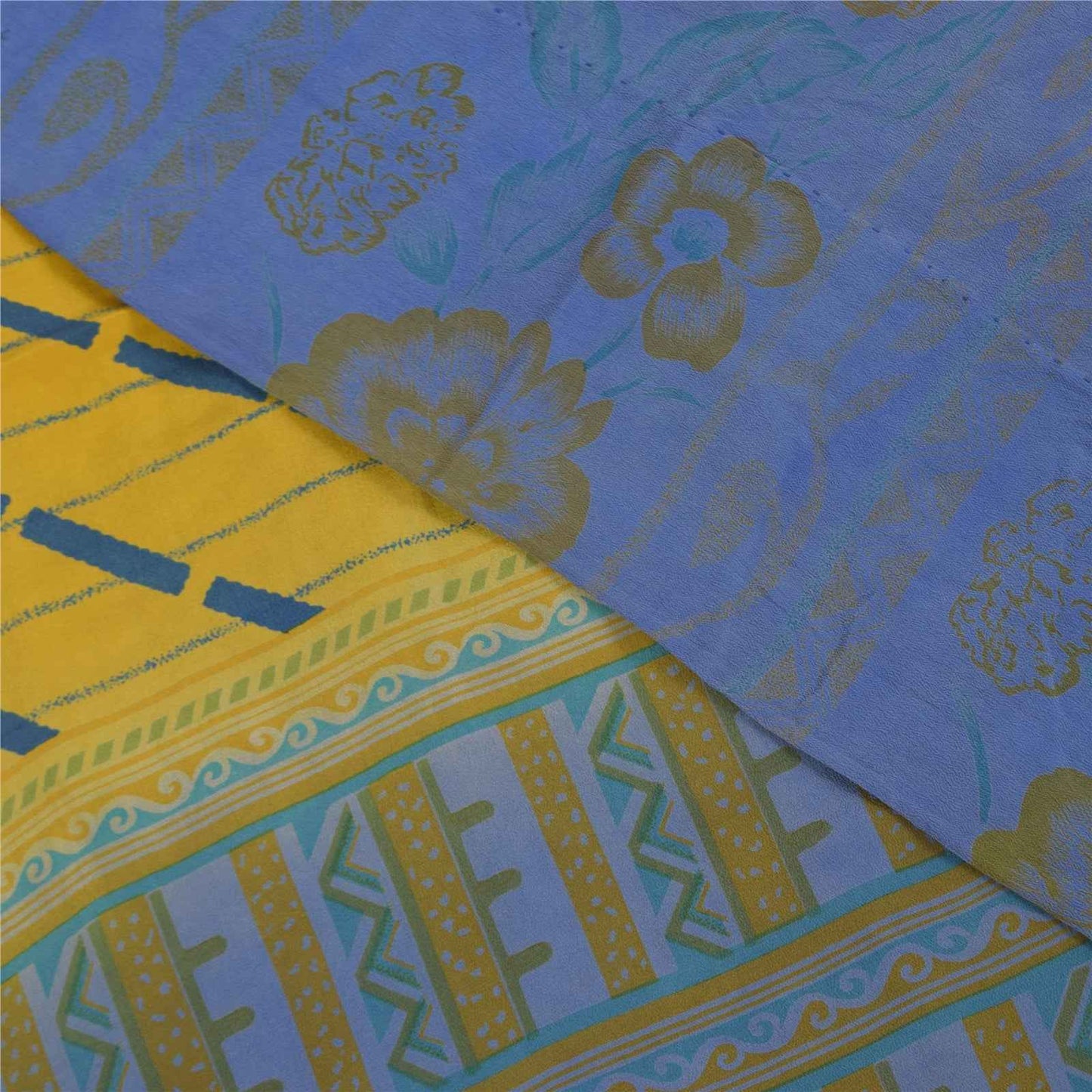 Sanskriti Vintage Sarees Yellow & Pink Pure Crepe Printed Sari 5+yd Craft Sustainable Fabric
