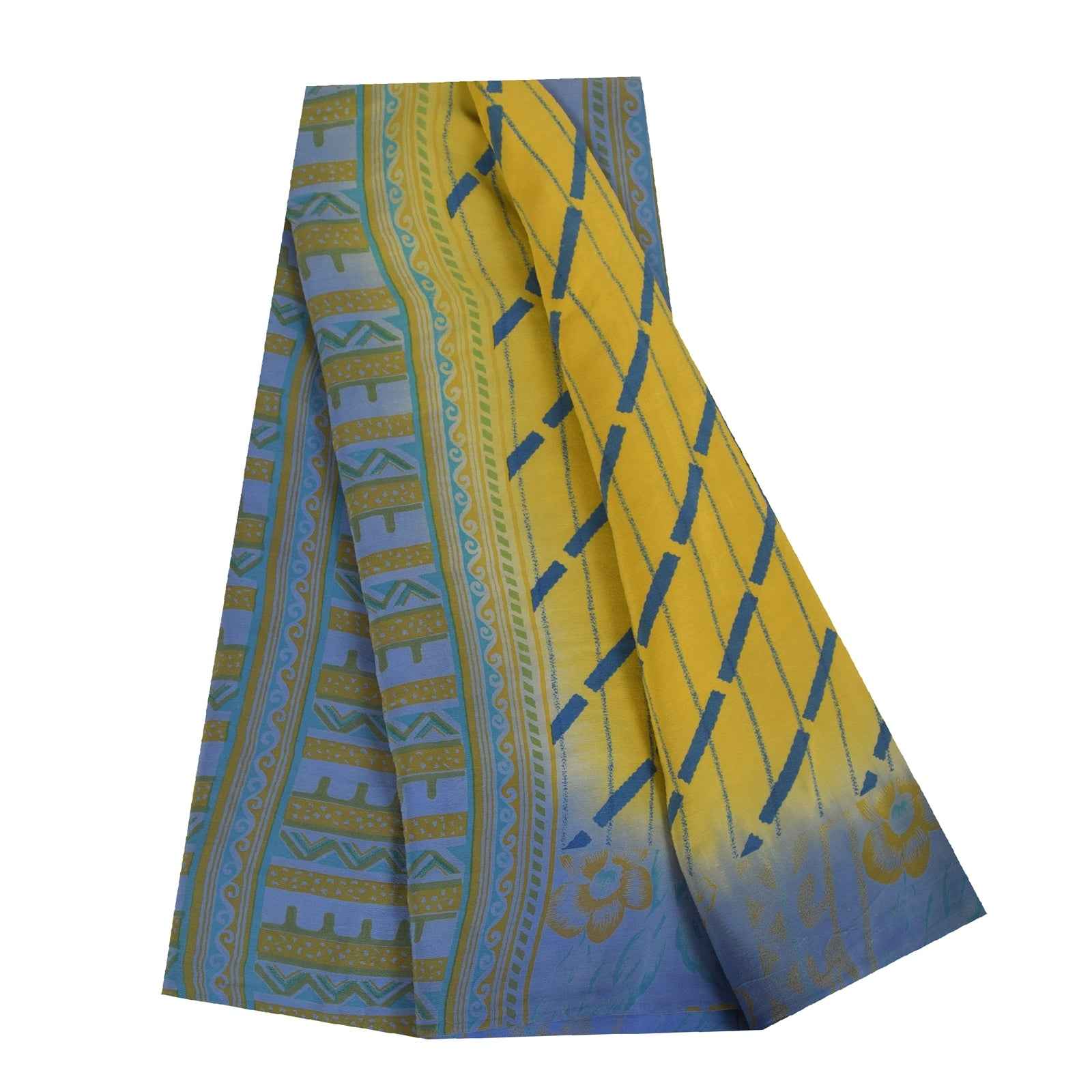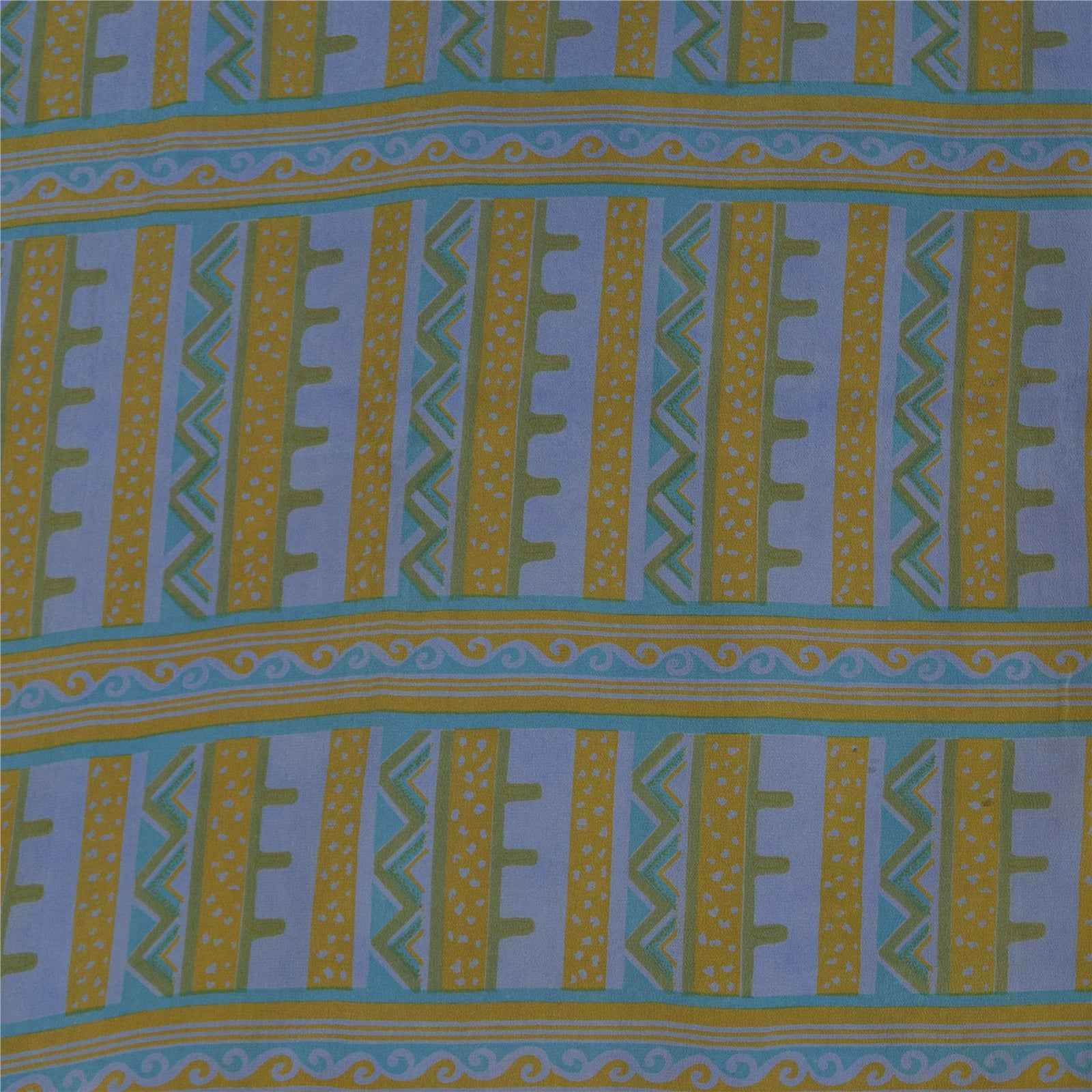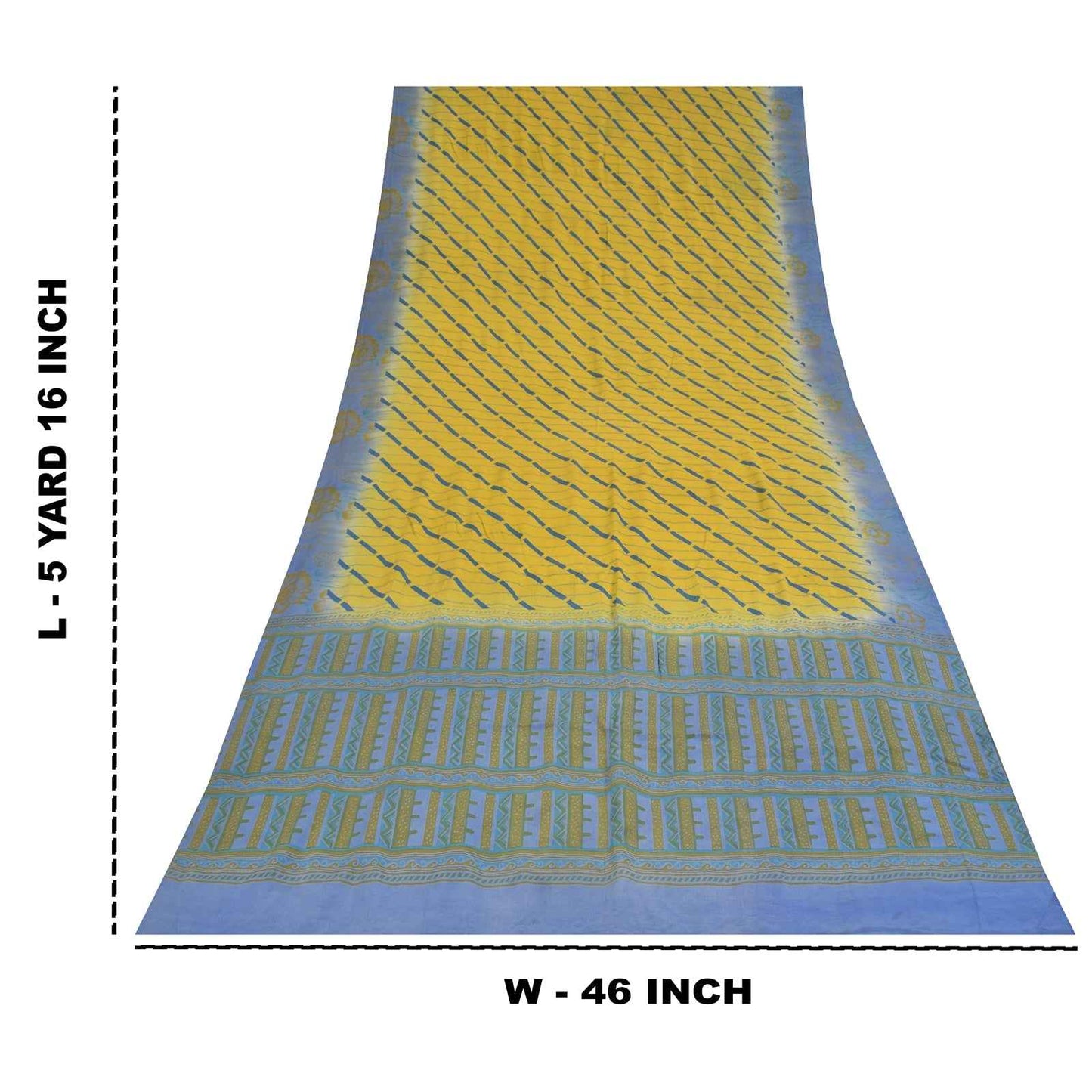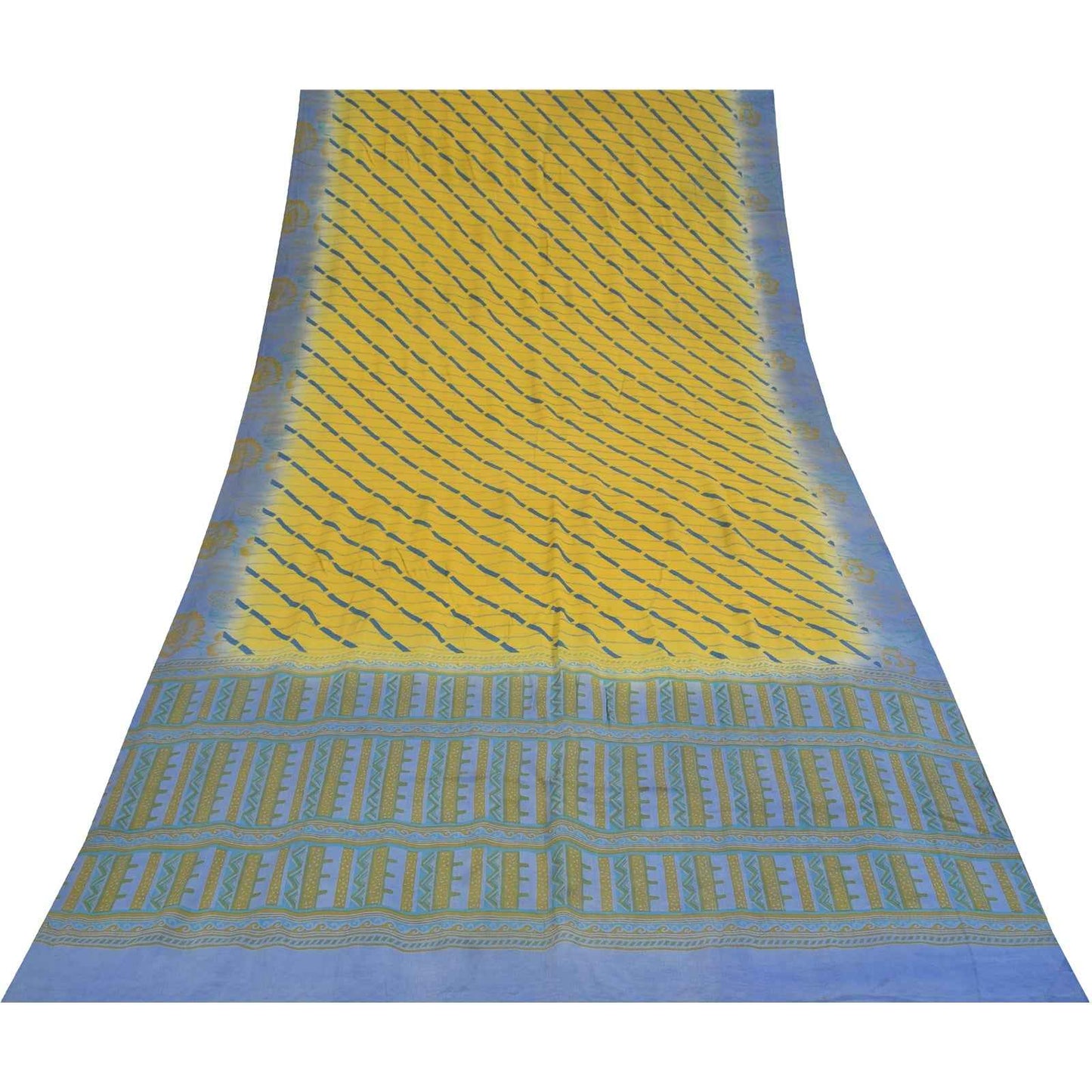 Sanskriti Vintage Sarees Yellow & Pink Pure Crepe Printed Sari 5+yd Craft Sustainable Fabric