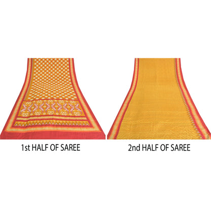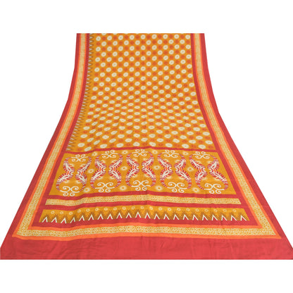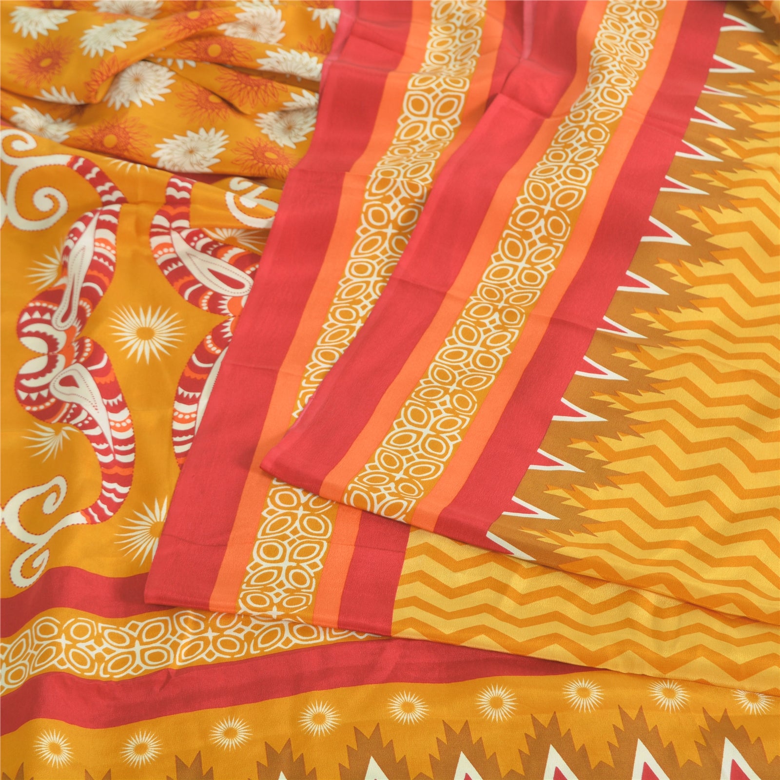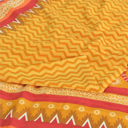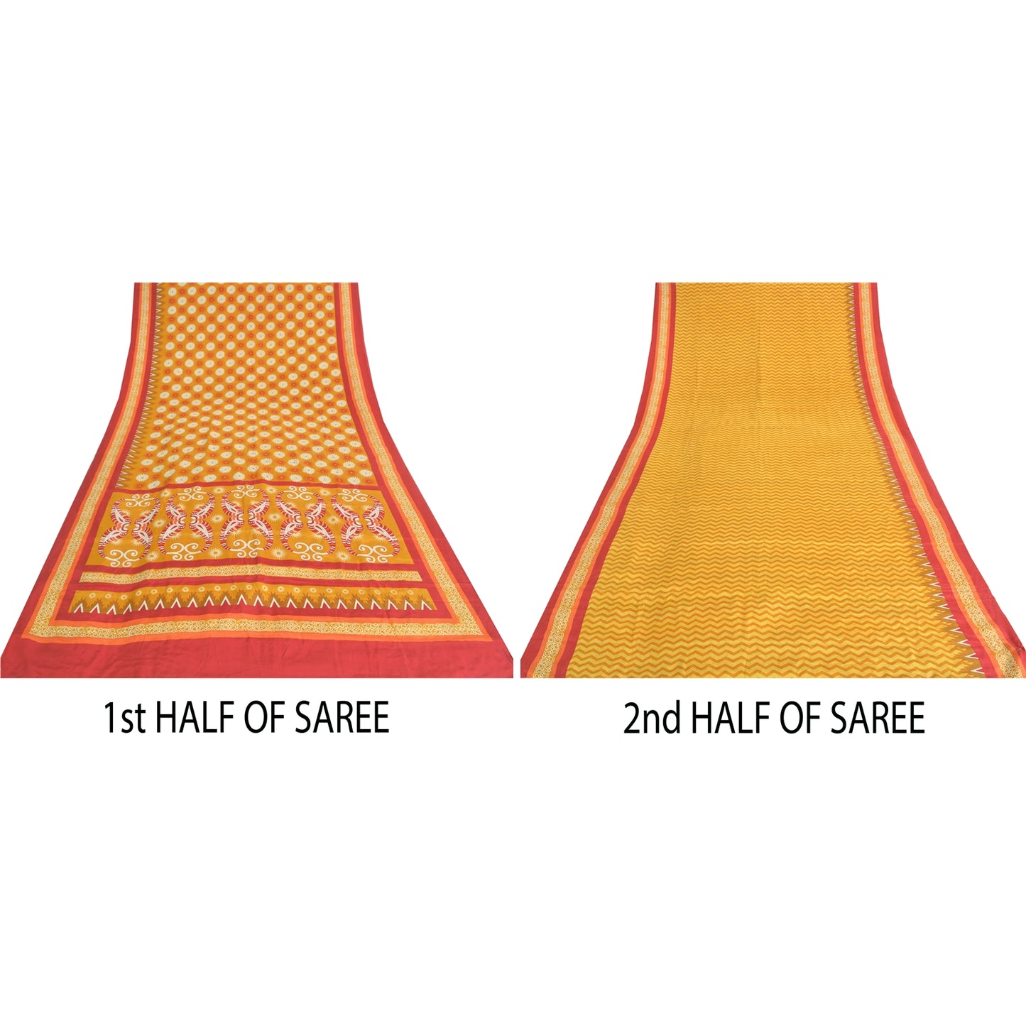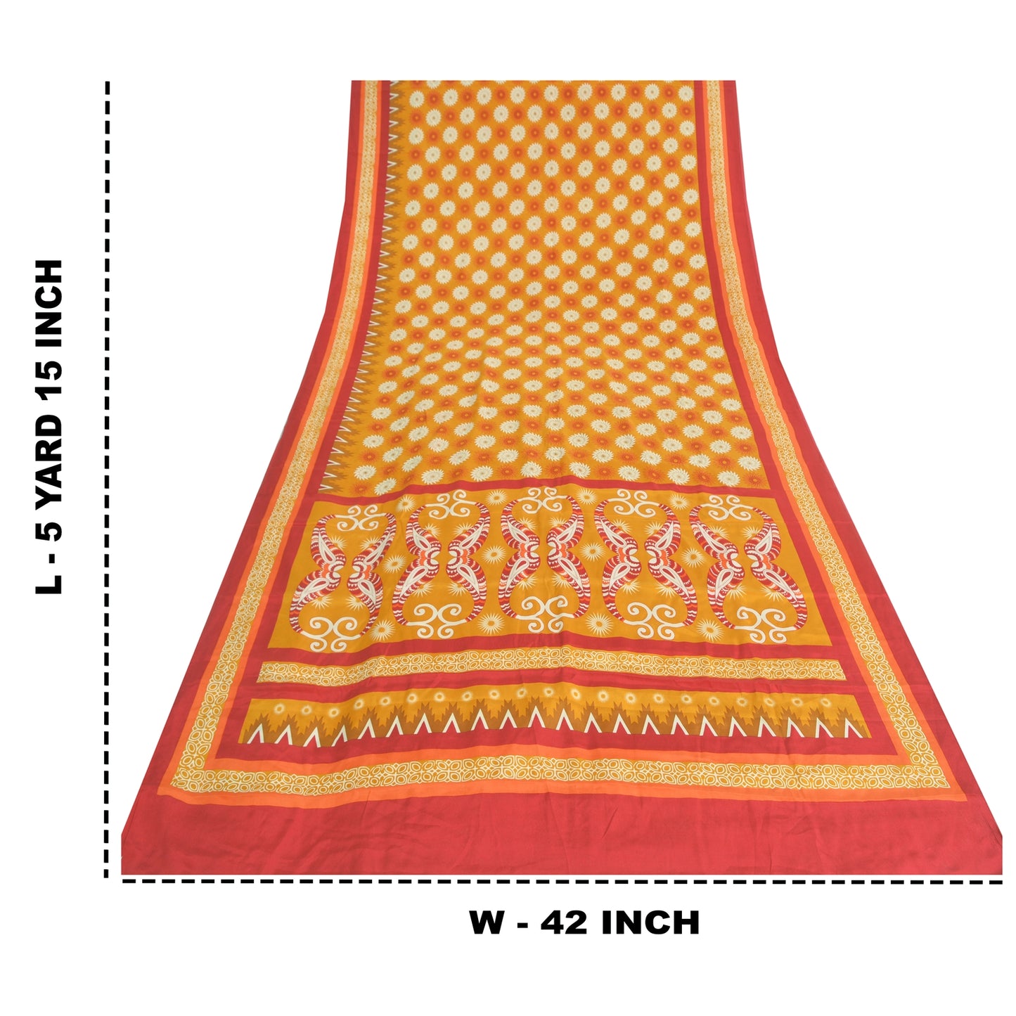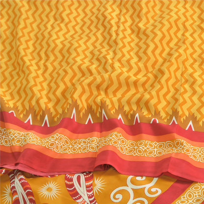 Sanskriti Vintage Sarees Yellow Pure Crepe Silk Printed Sari 5yd Craft Sustainable Fabric