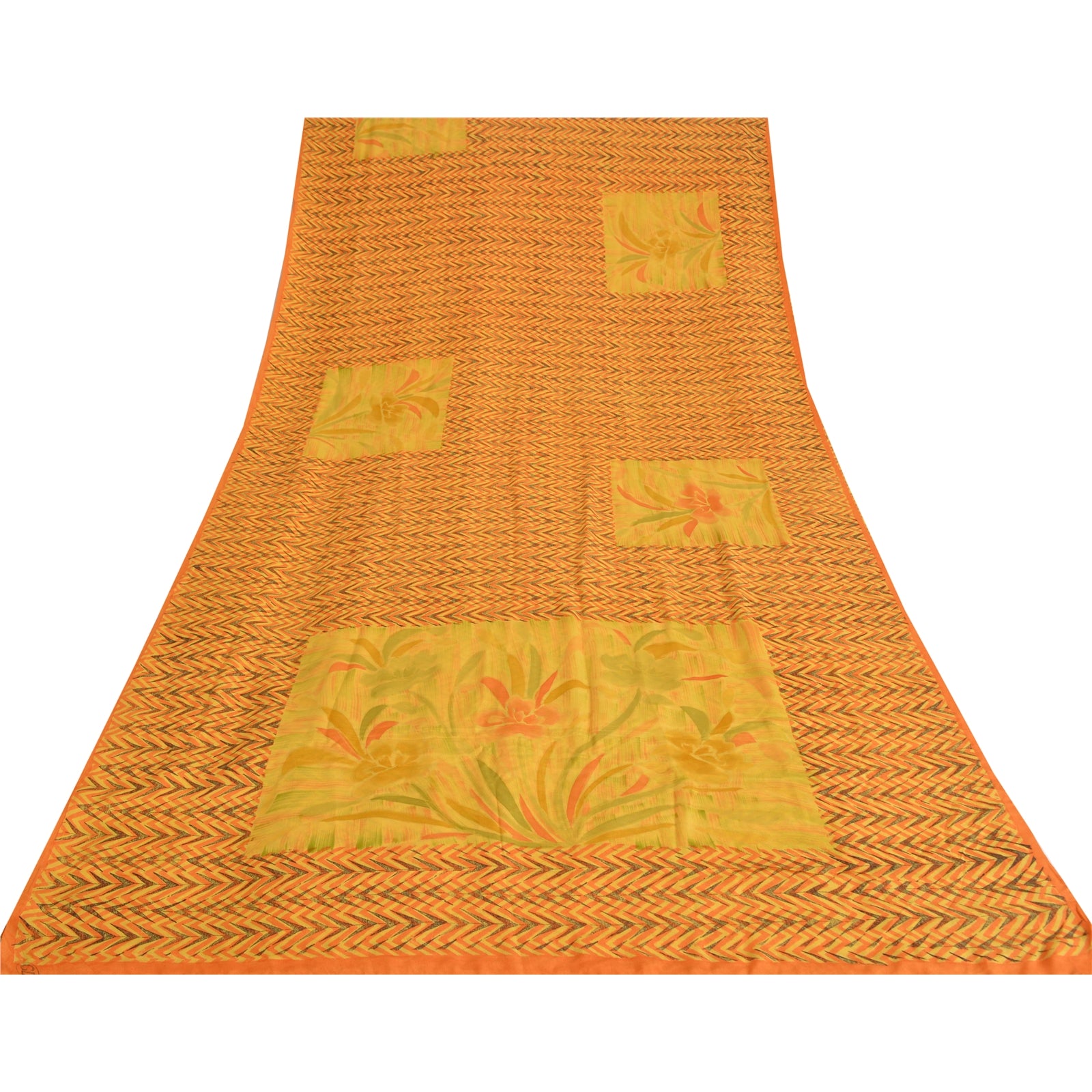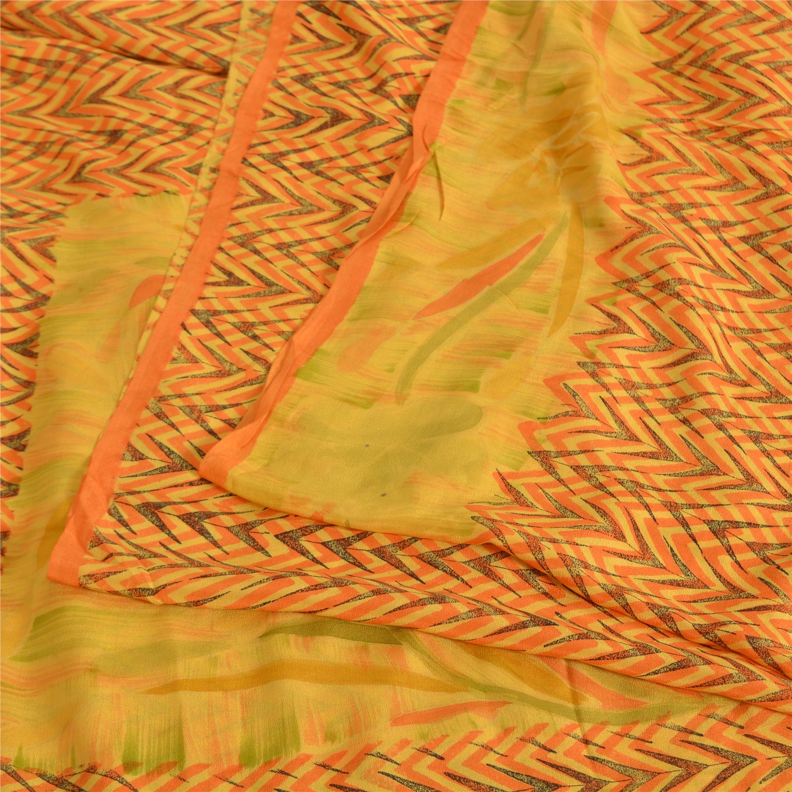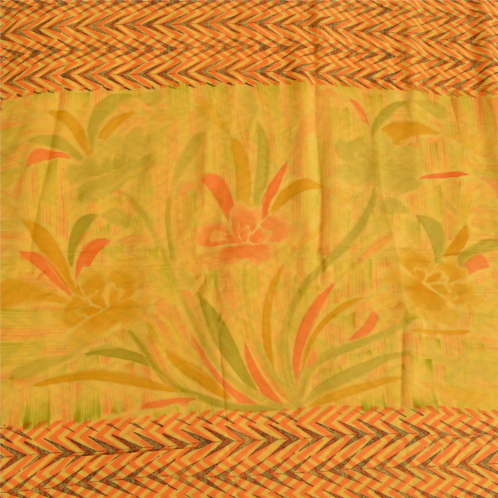 Sanskriti Vintage Sarees Yellow Pure Crepe Silk Printed Sari 5yd Craft Sustainable Fabric