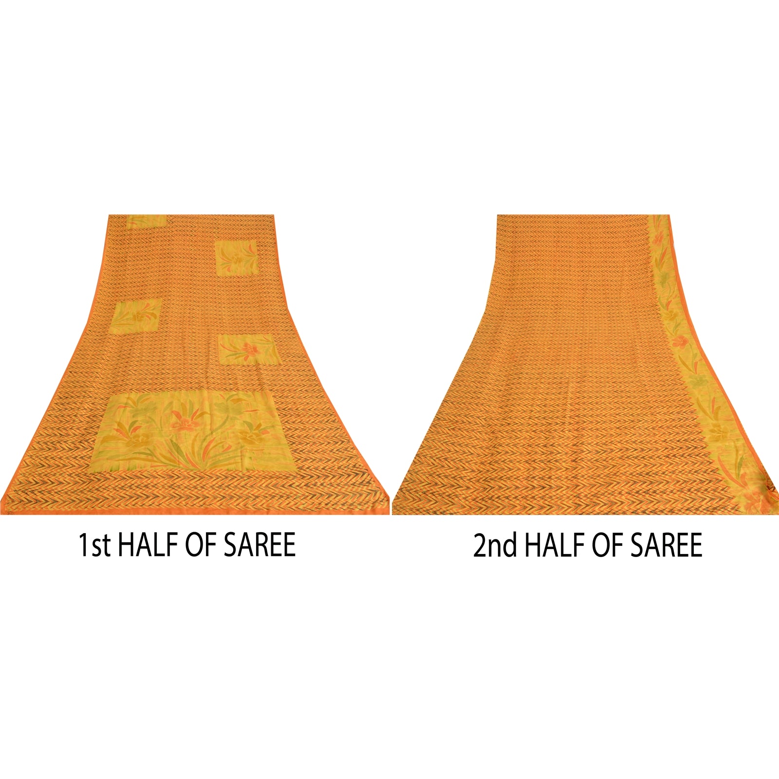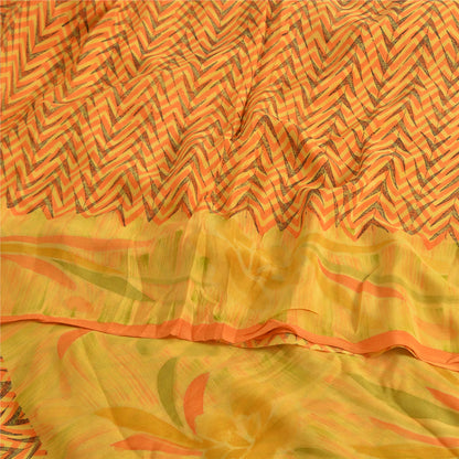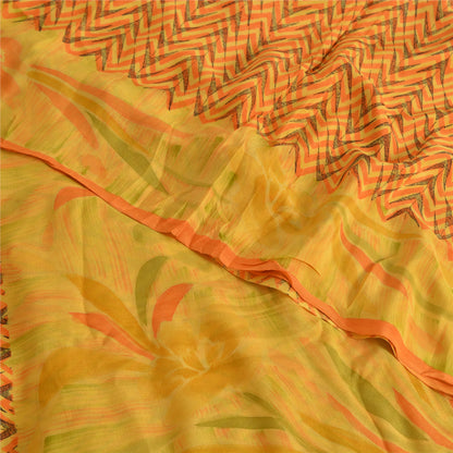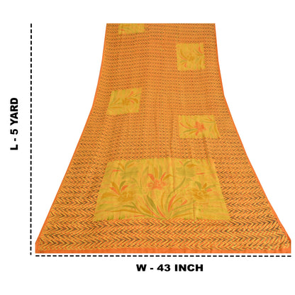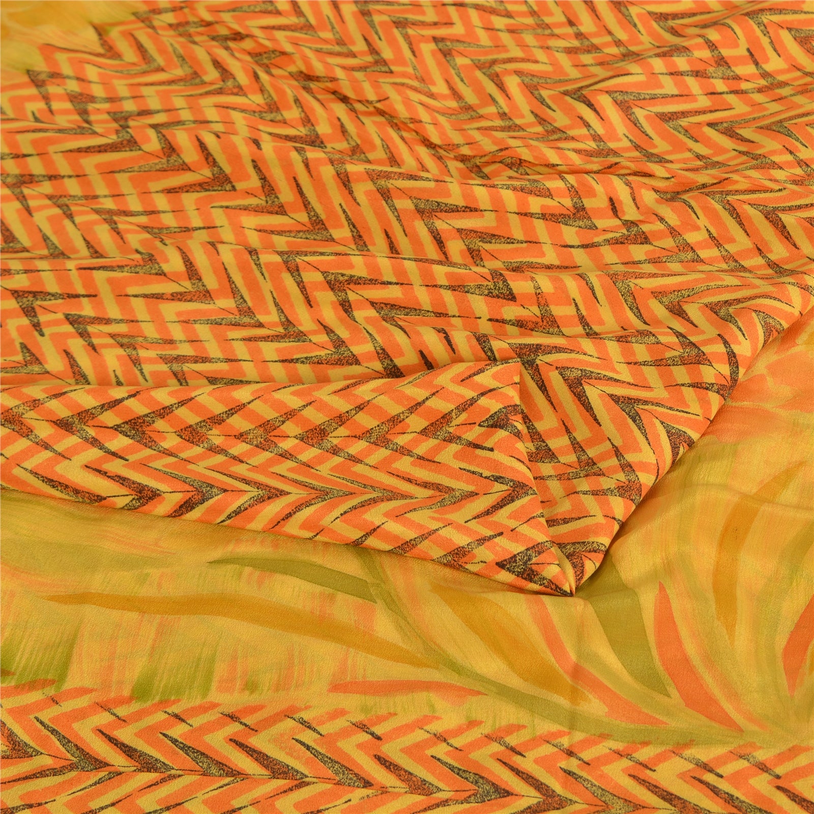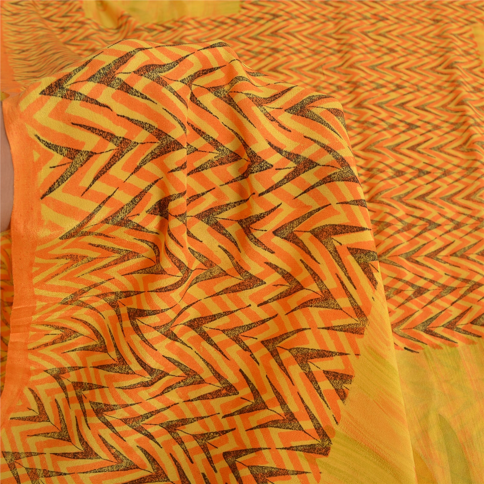 Sanskriti Vintage Sarees Yellow Pure Crepe Silk Printed Sari 5yd Craft Sustainable Fabric