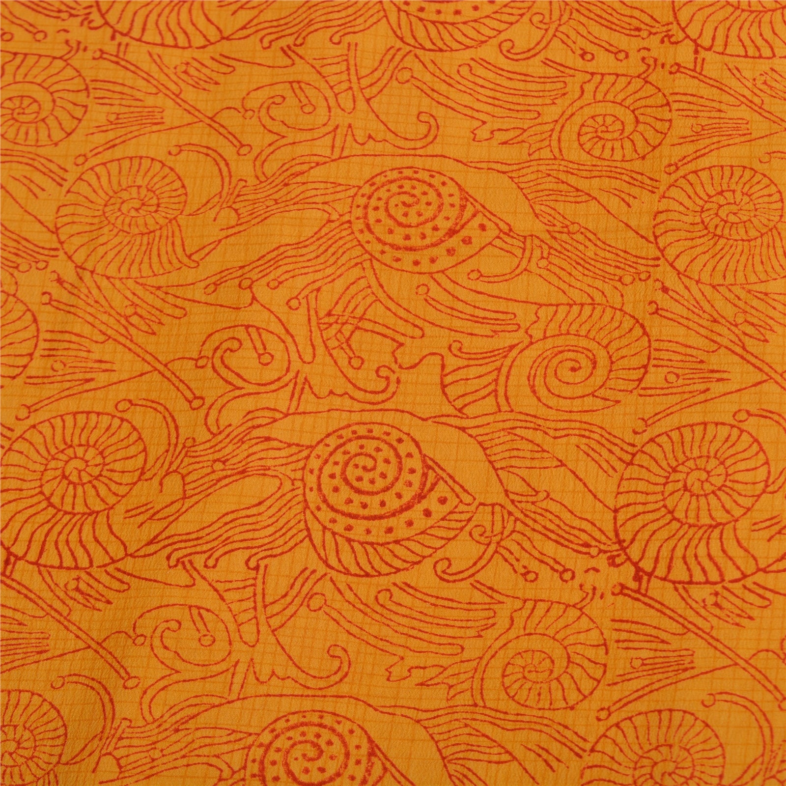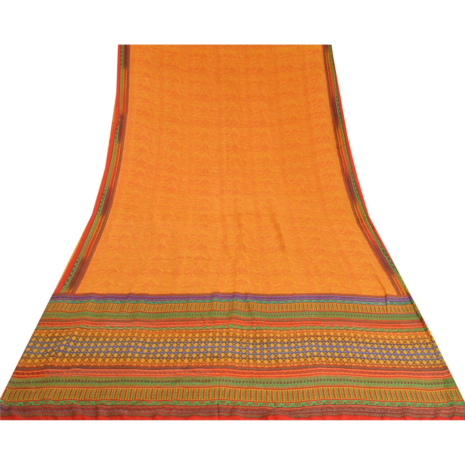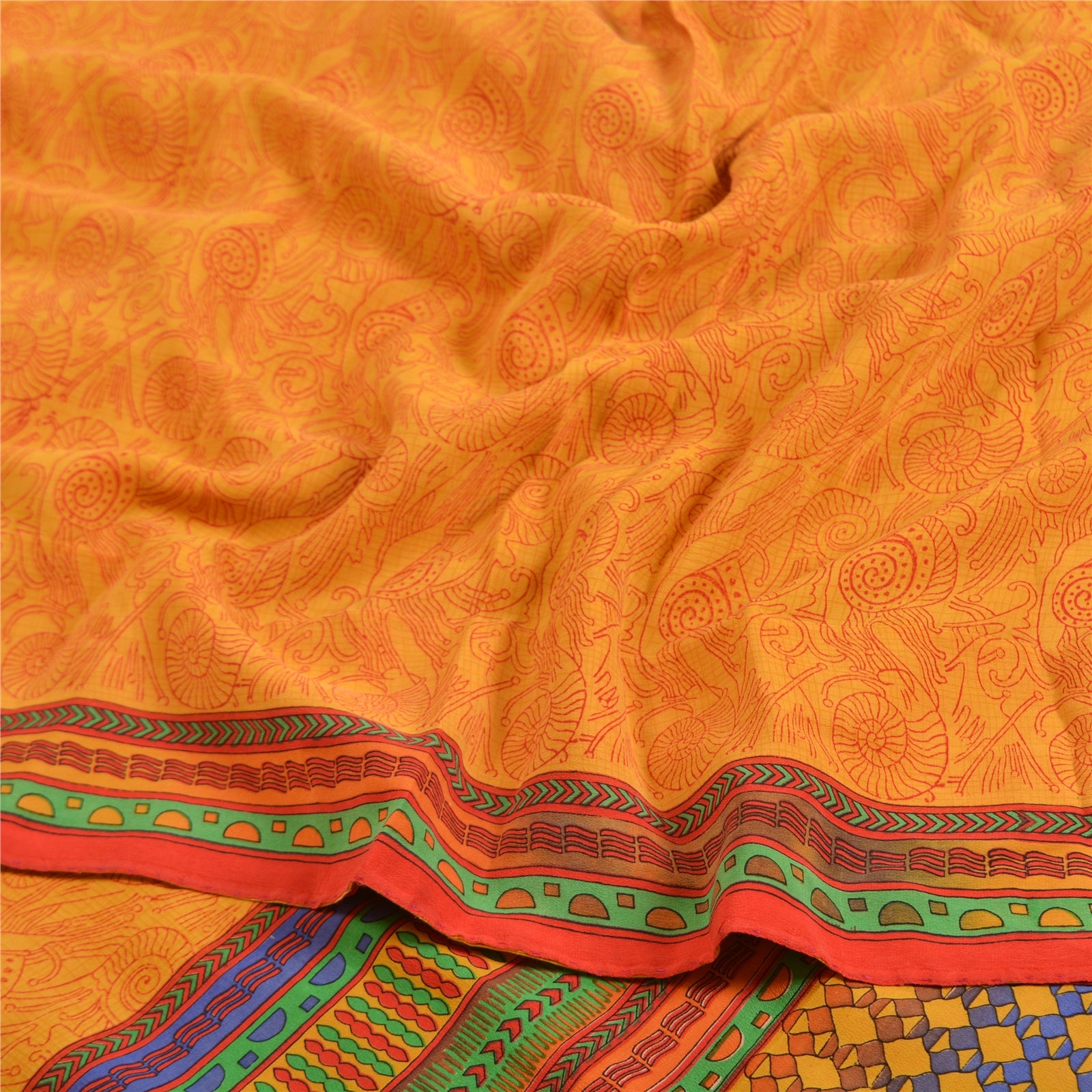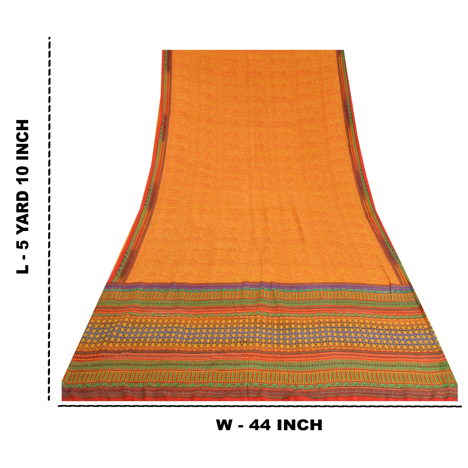 Sanskriti Vintage Sarees Yellow Pure Crepe Silk Printed Sari Floral Craft Sustainable Fabric
